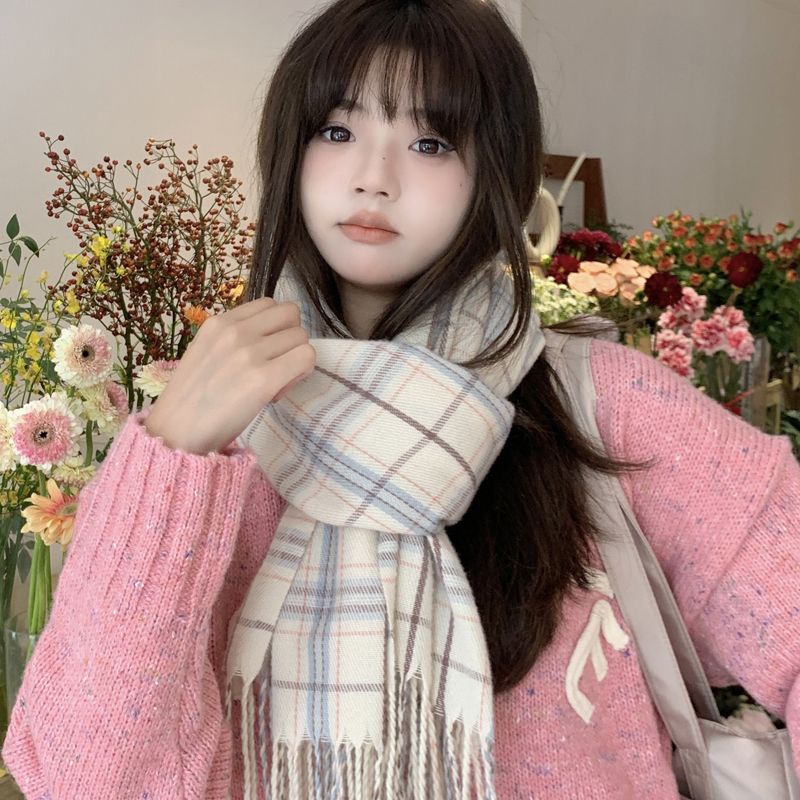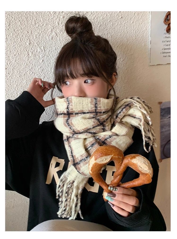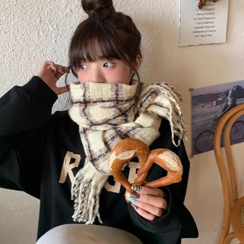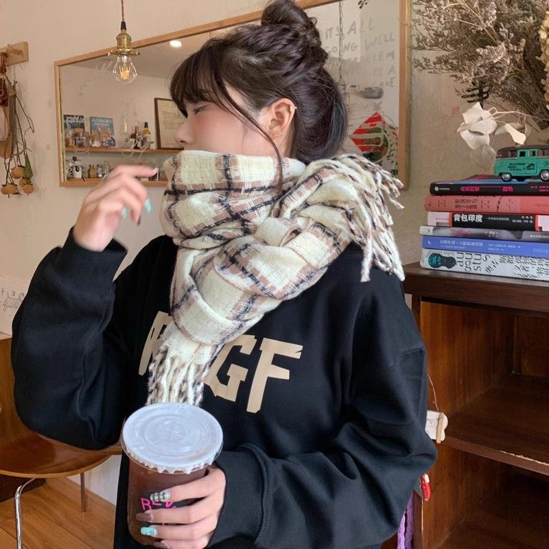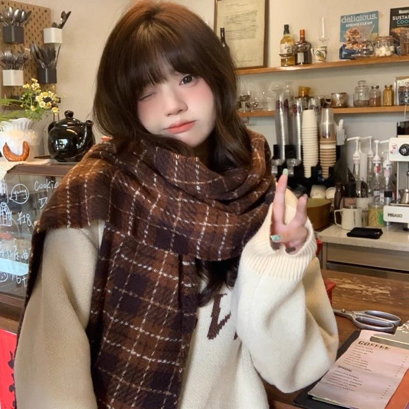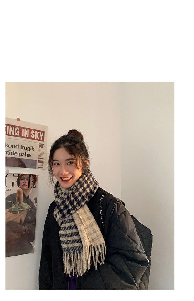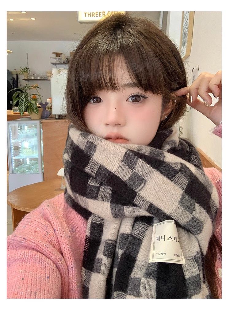 千鸟格子ins围巾女秋冬季2024新款高级感厚实百搭韩系保暖围脖男