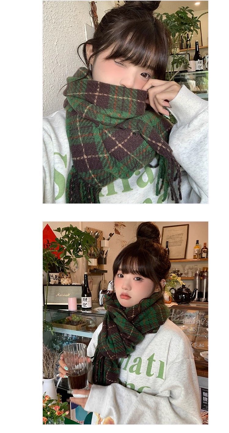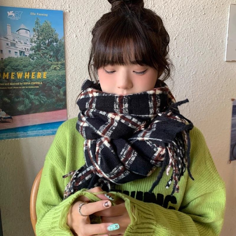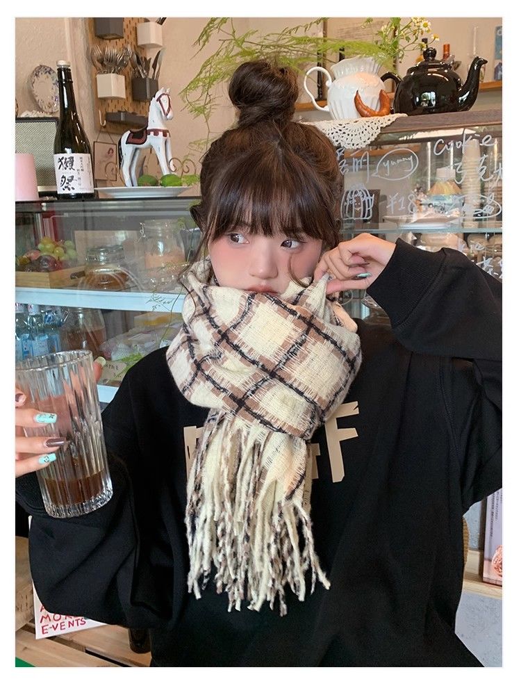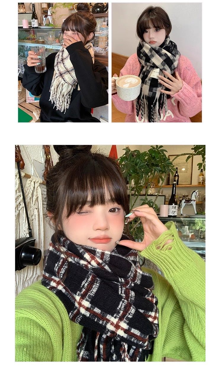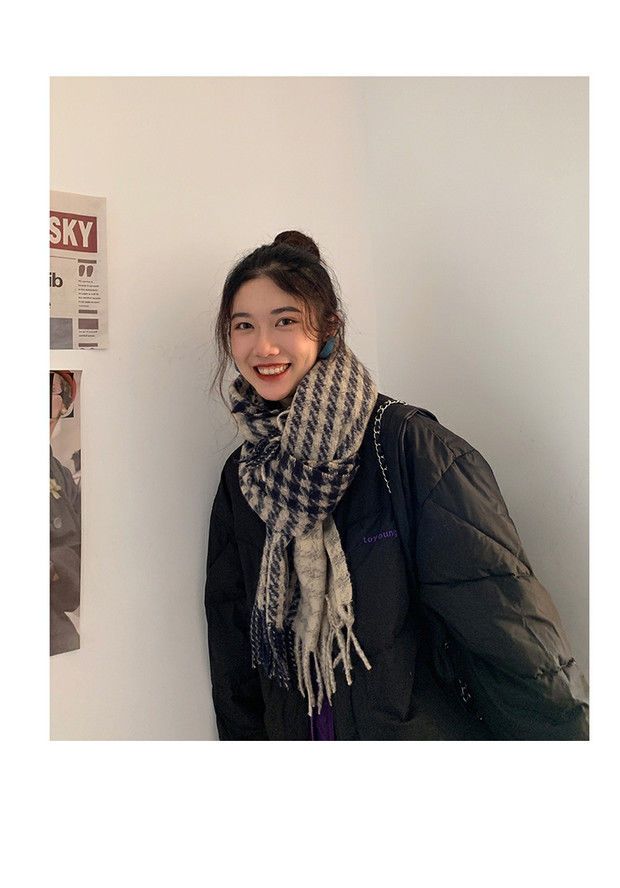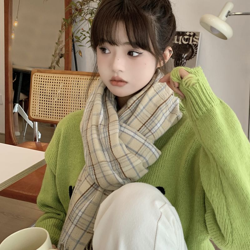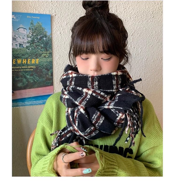 千鸟格子ins围巾女秋冬季2024新款高级感厚实百搭韩系保暖围脖男