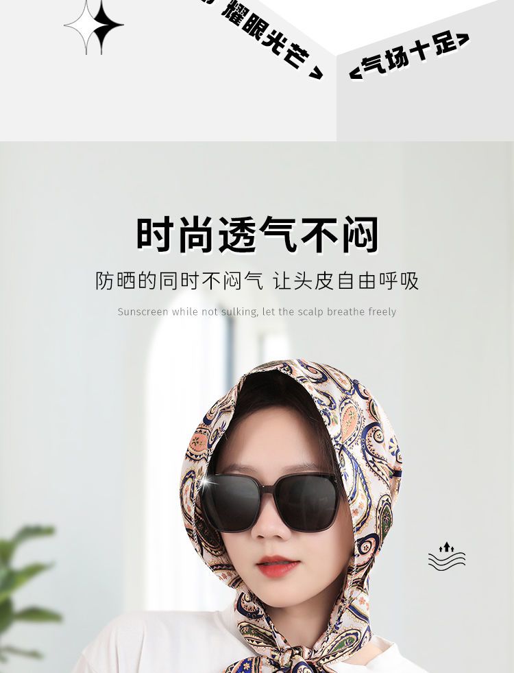 | artificial silk closed-toe scarf no. 1 color + sunglasses(仿真丝包头丝巾号1色+墨镜) | USD $1.35 | 999999 piece available |