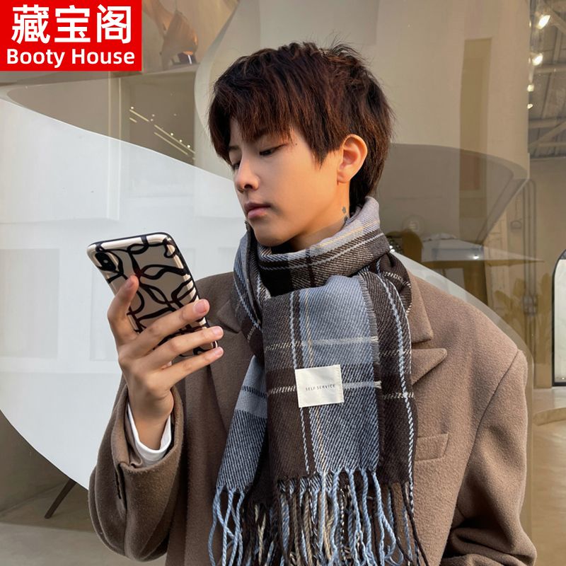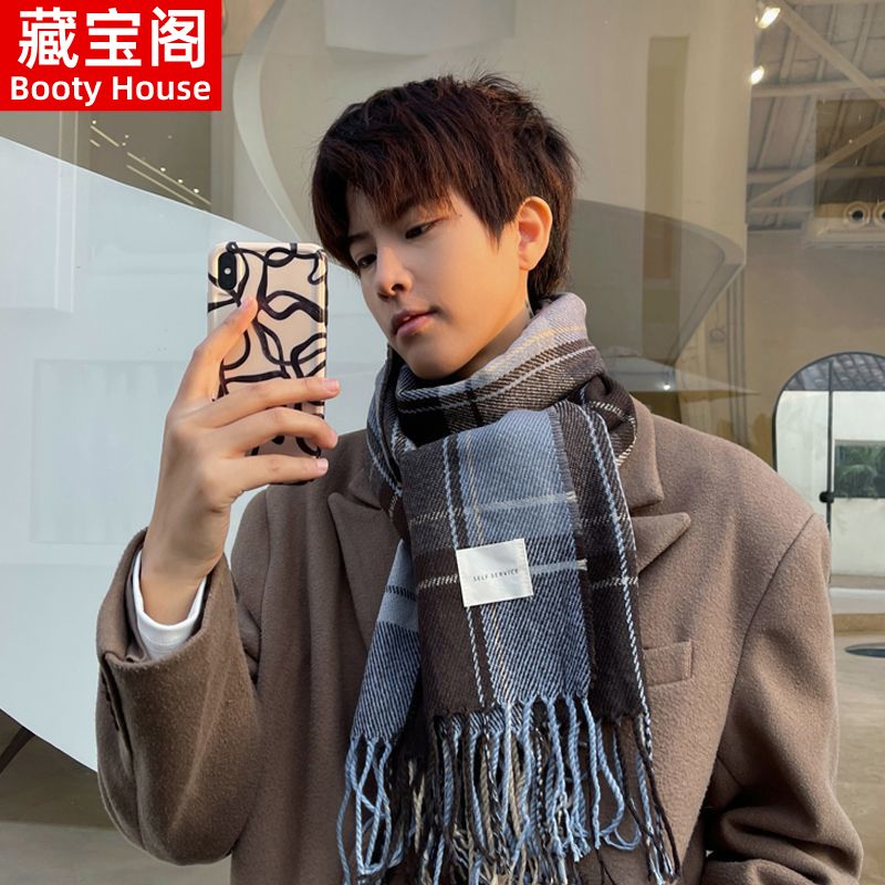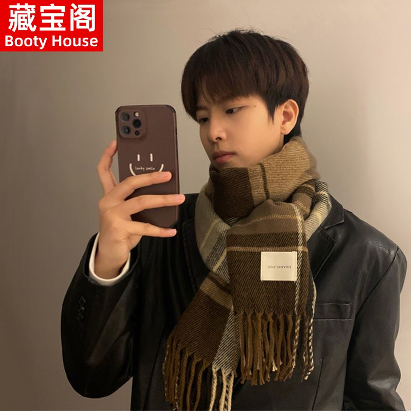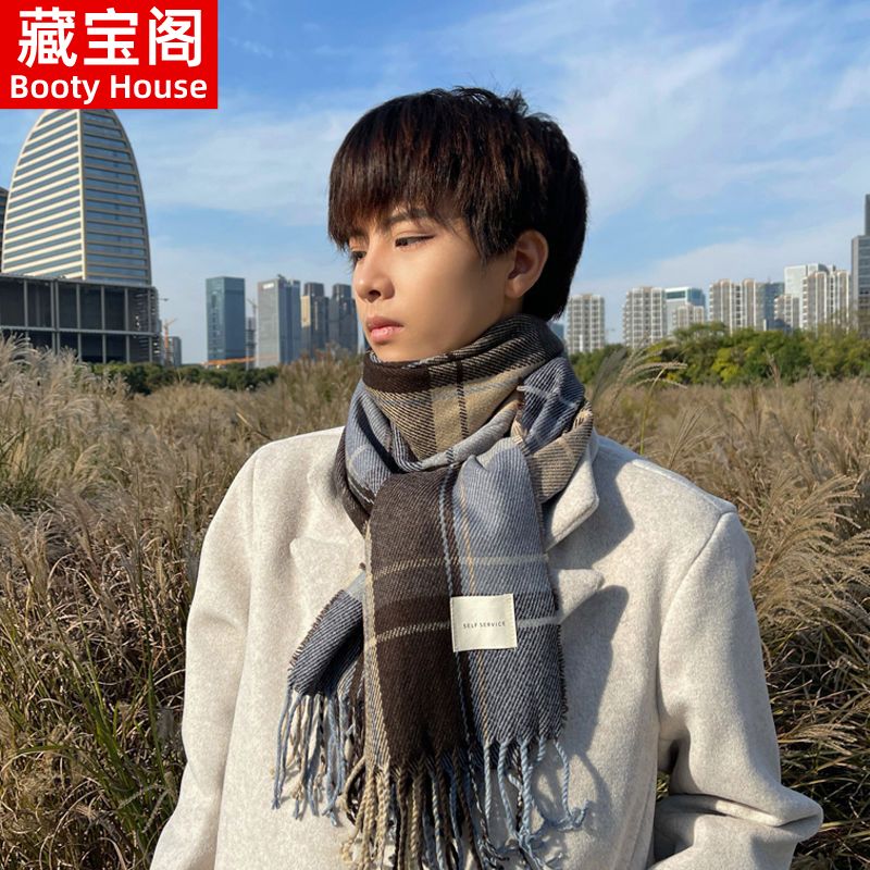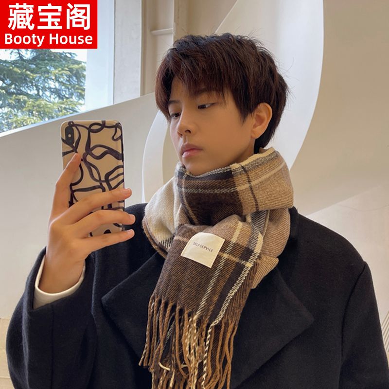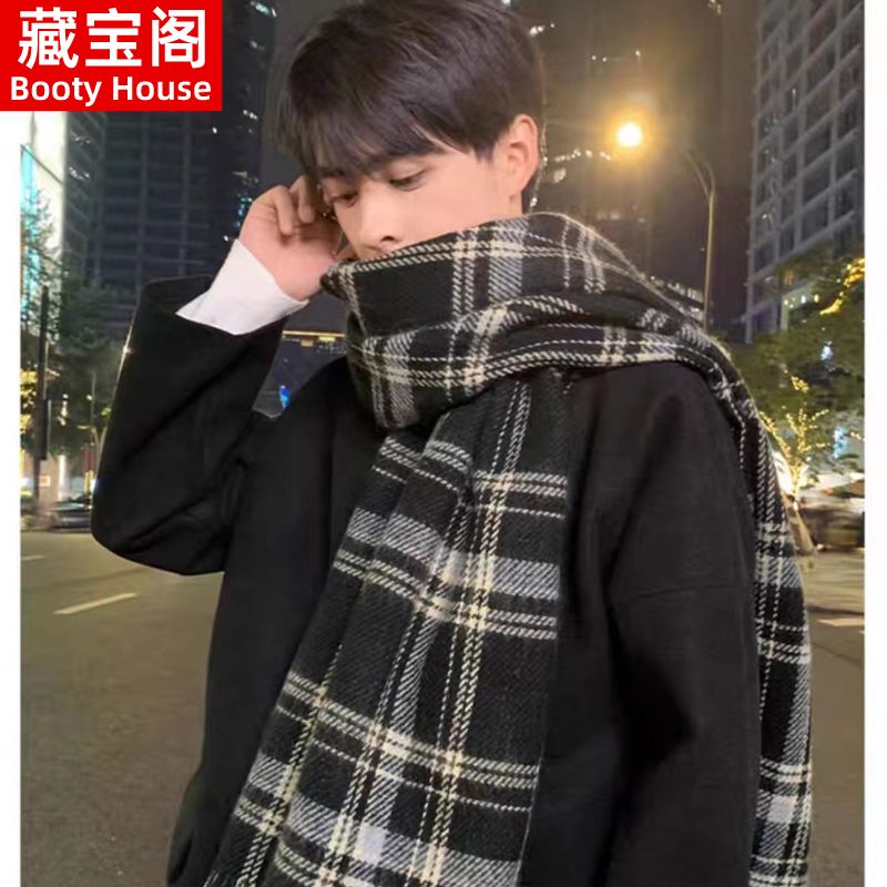 【藏宝阁】围巾男士冬季男女韩系ins披肩学生保暖格子加厚围脖男