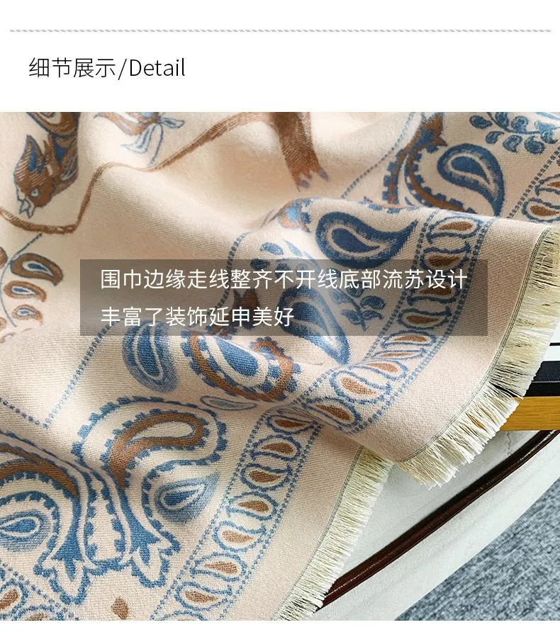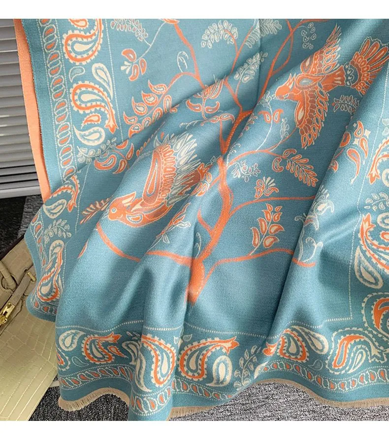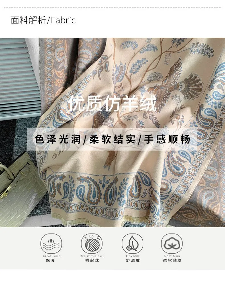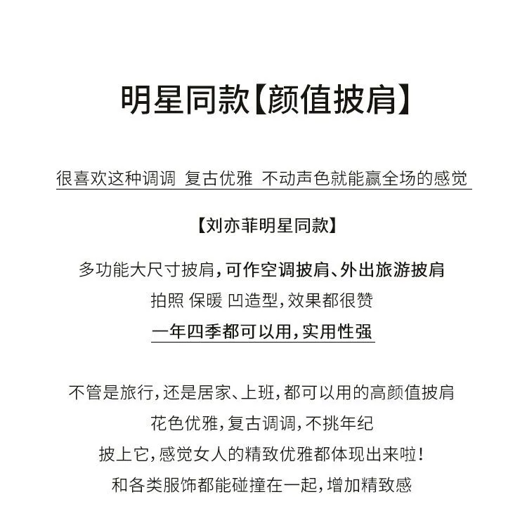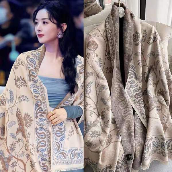 刘亦菲同款百搭披肩名媛青鸟图案围巾办公室多巴胺仿羊绒披肩外搭