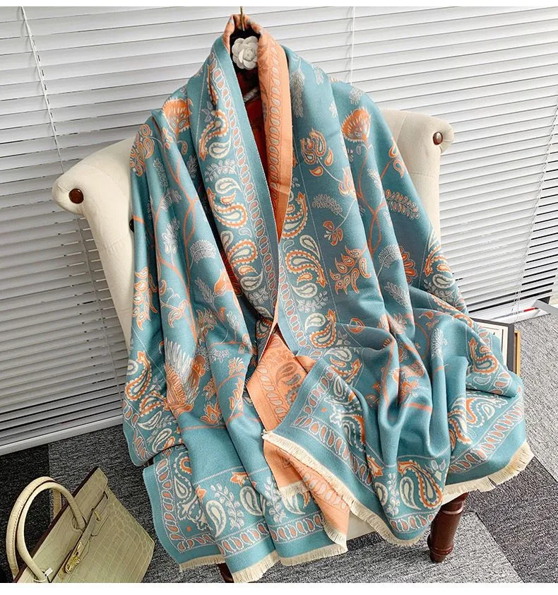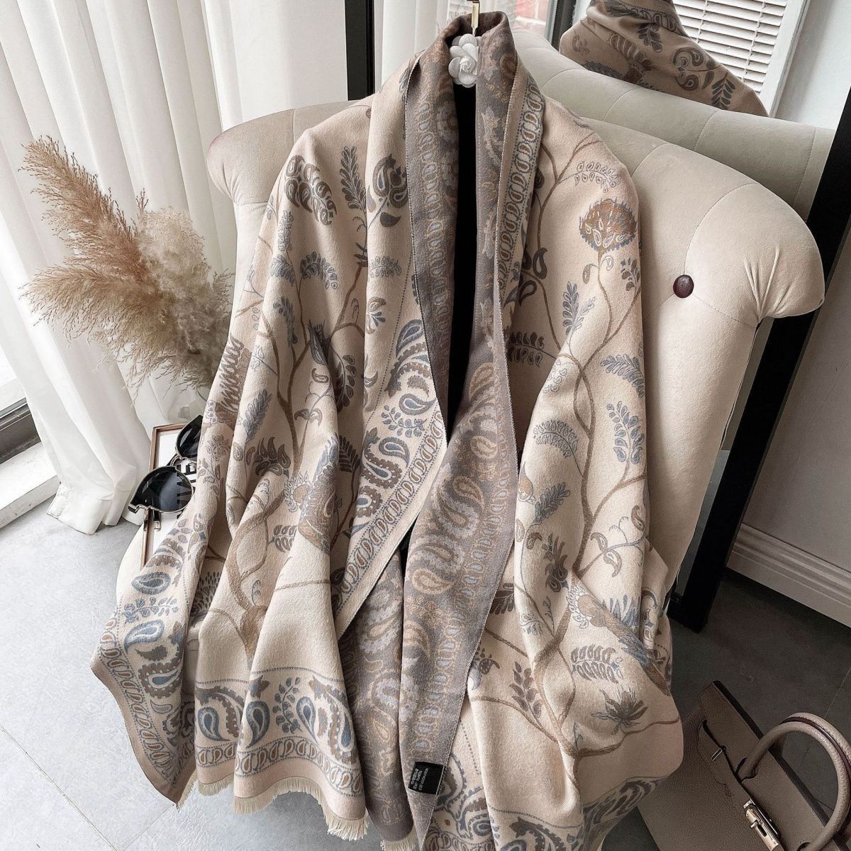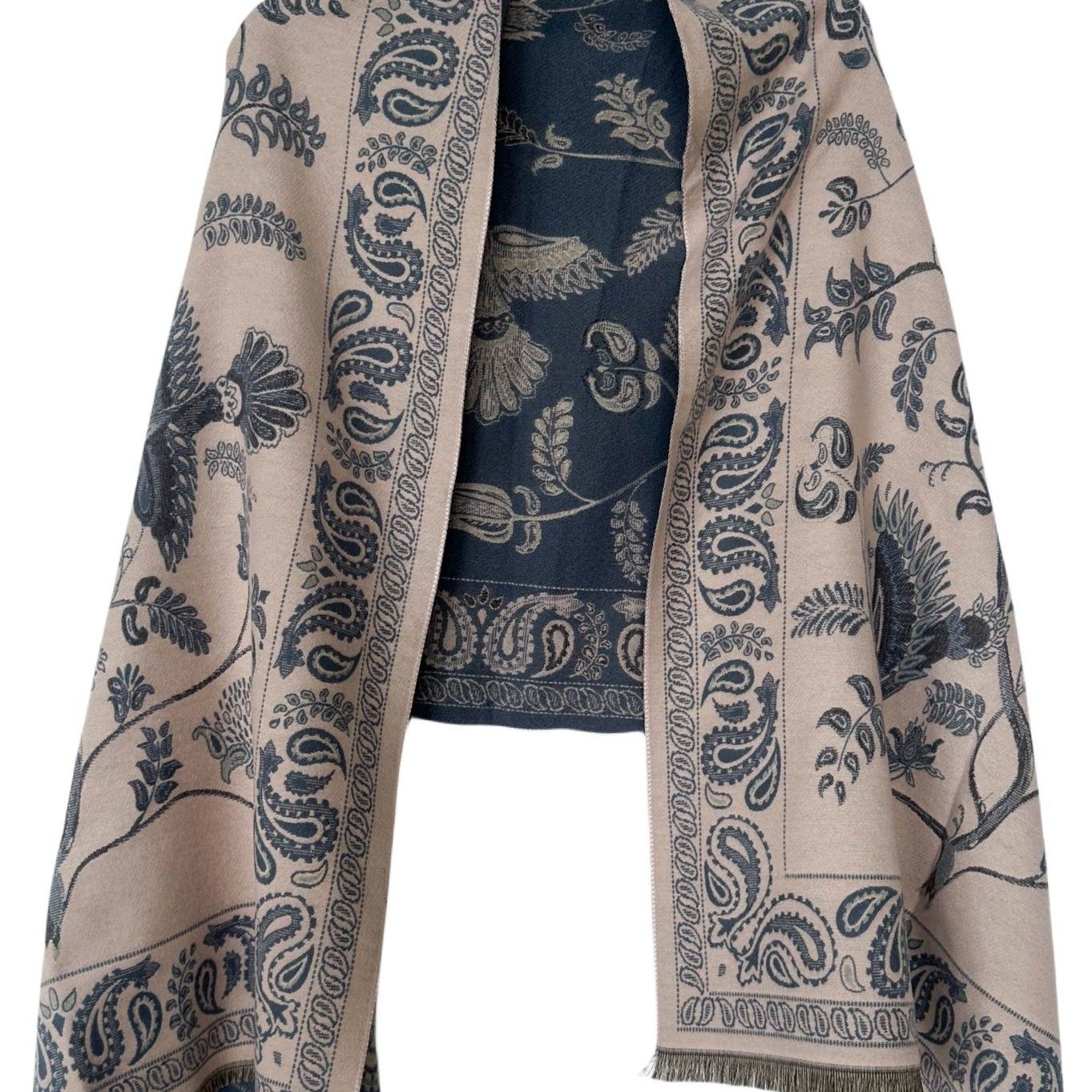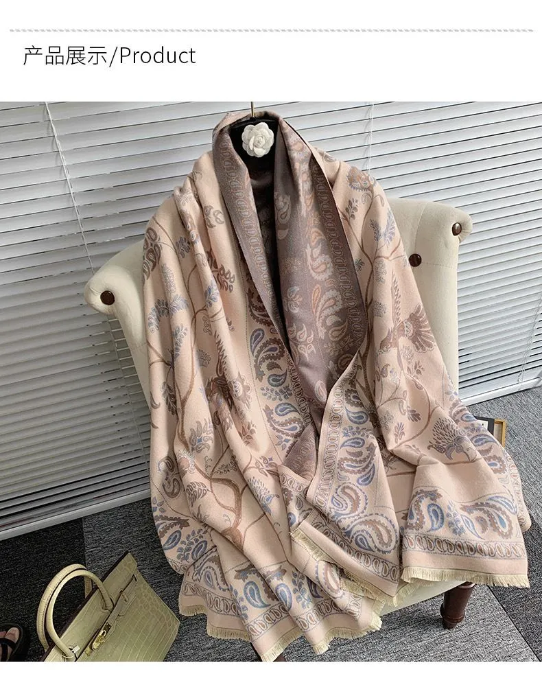 刘亦菲同款百搭披肩名媛青鸟图案围巾办公室多巴胺仿羊绒披肩外搭