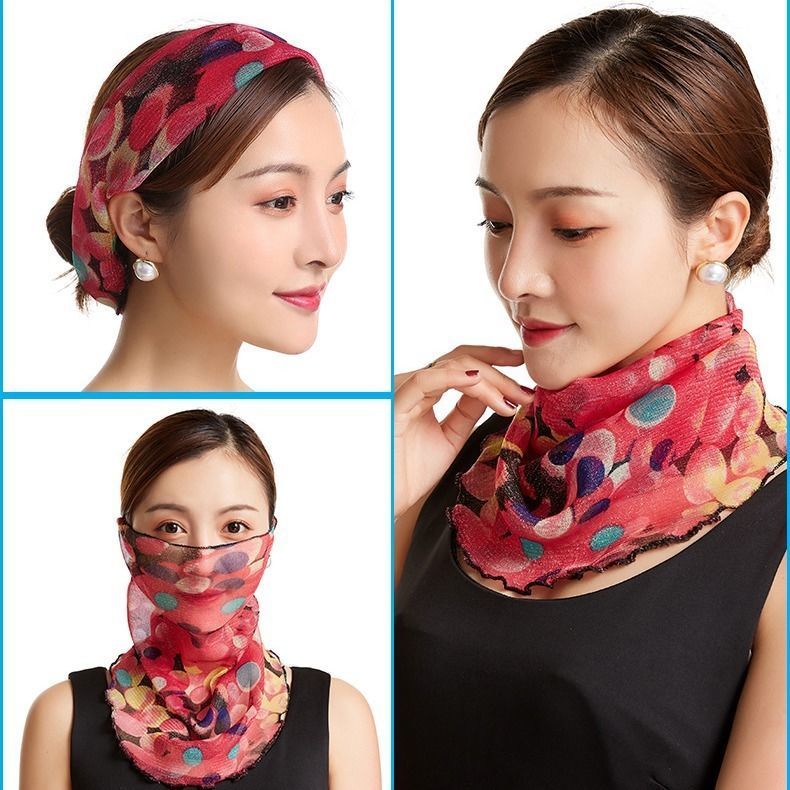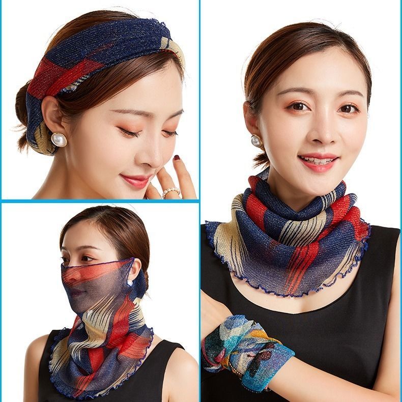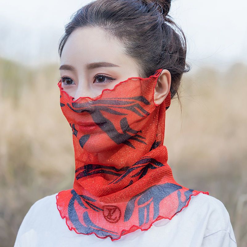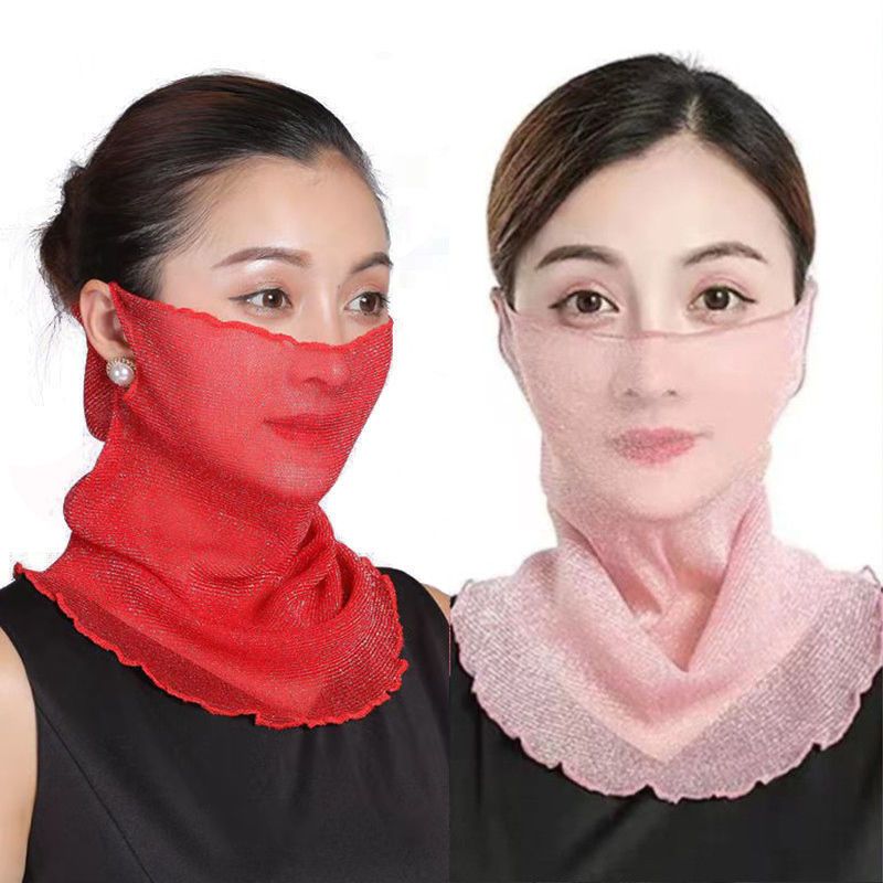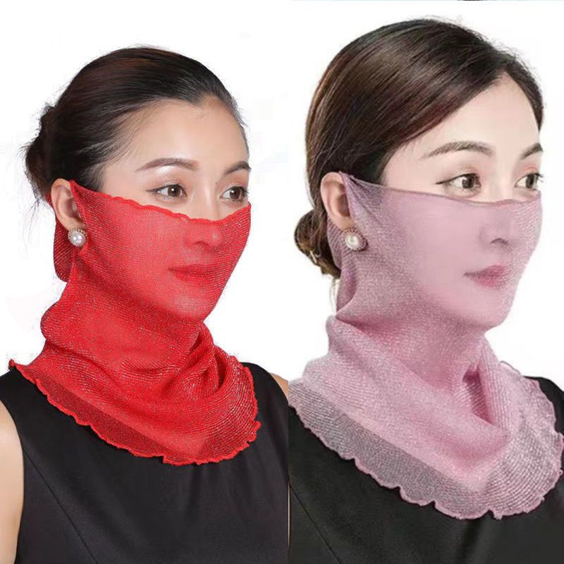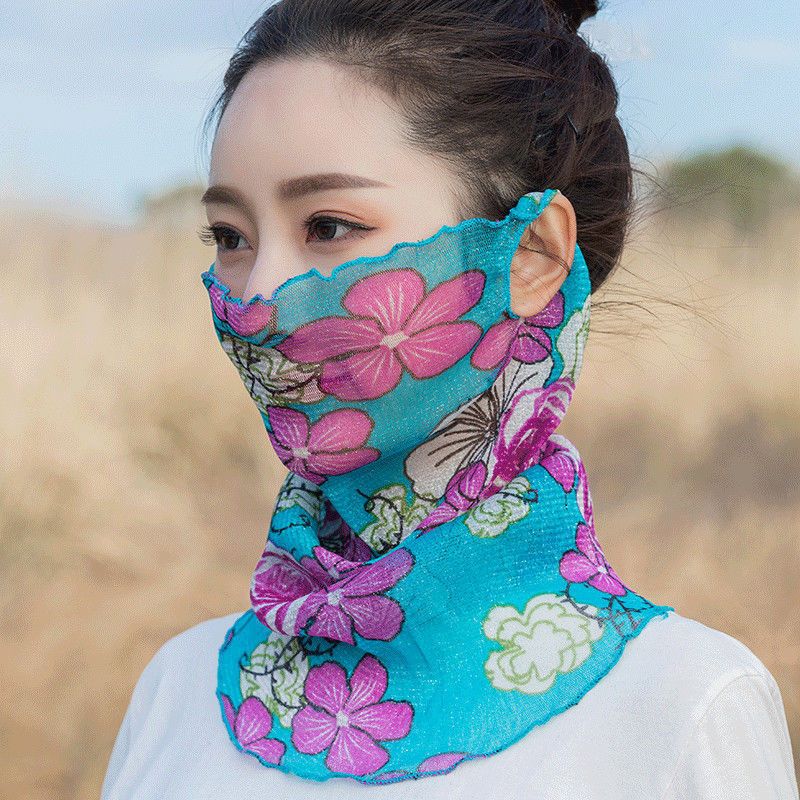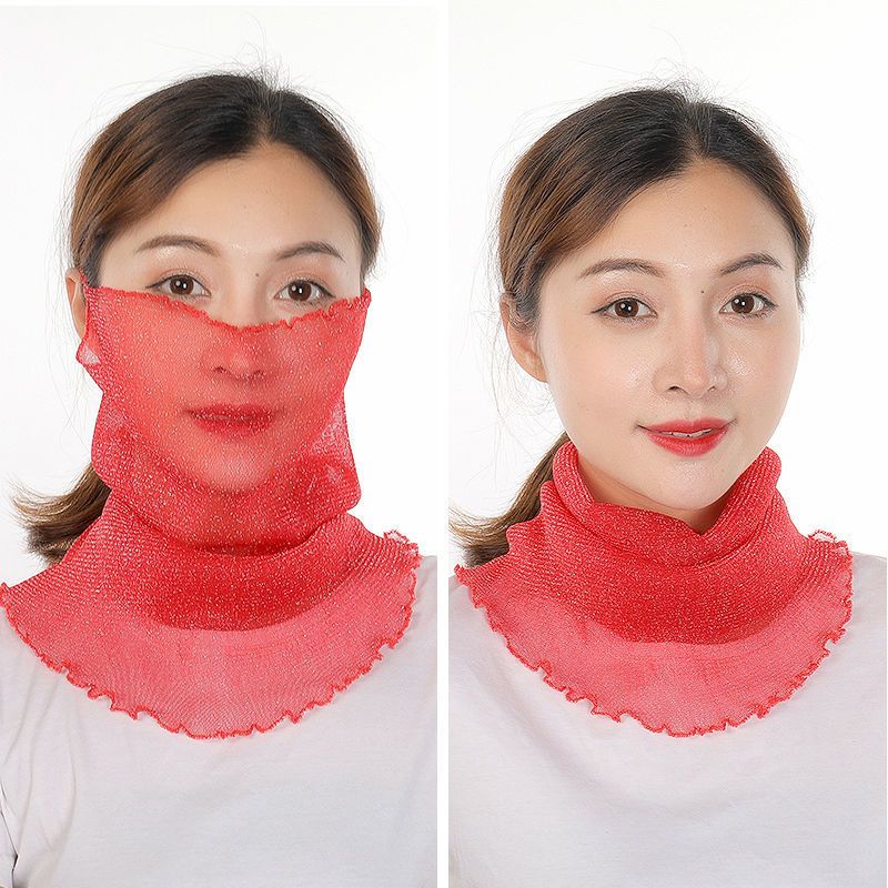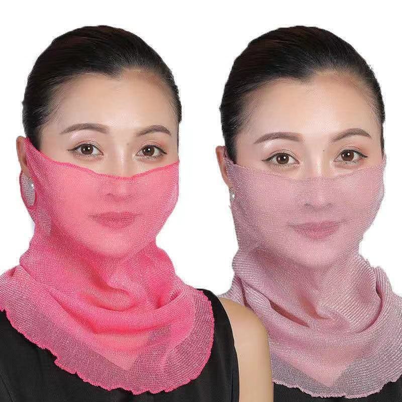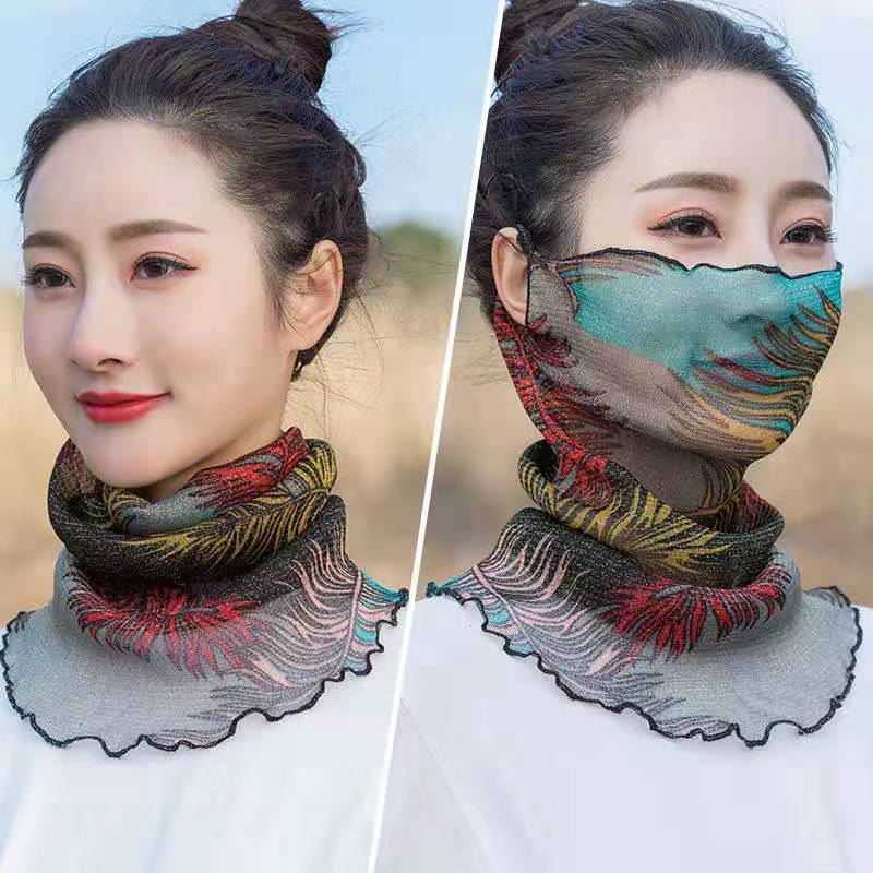 挂耳面纱防晒护颈围巾夏季小围脖套头女时尚假领子丝巾透气薄款