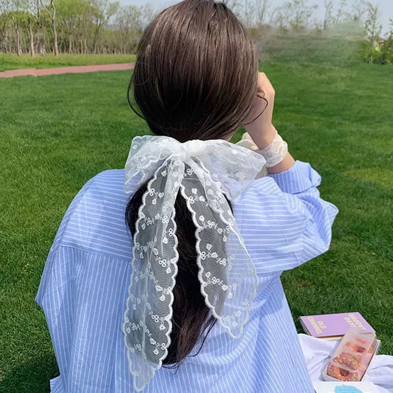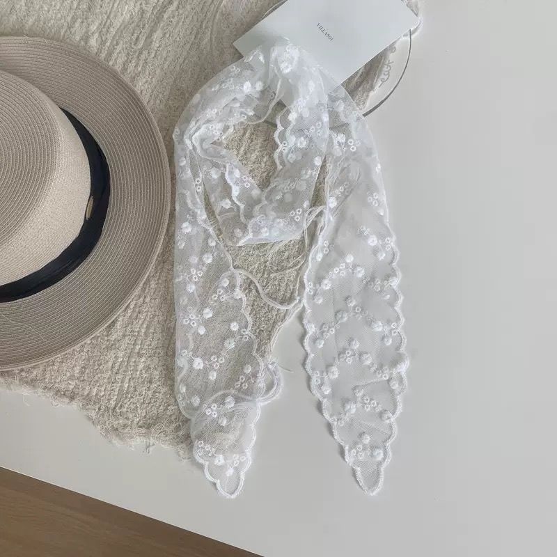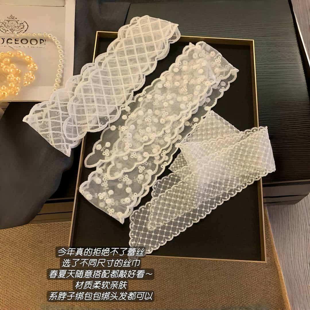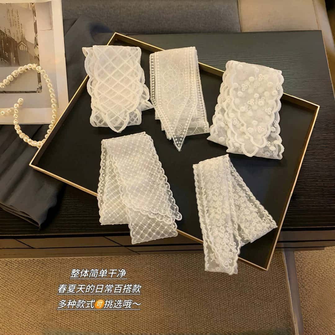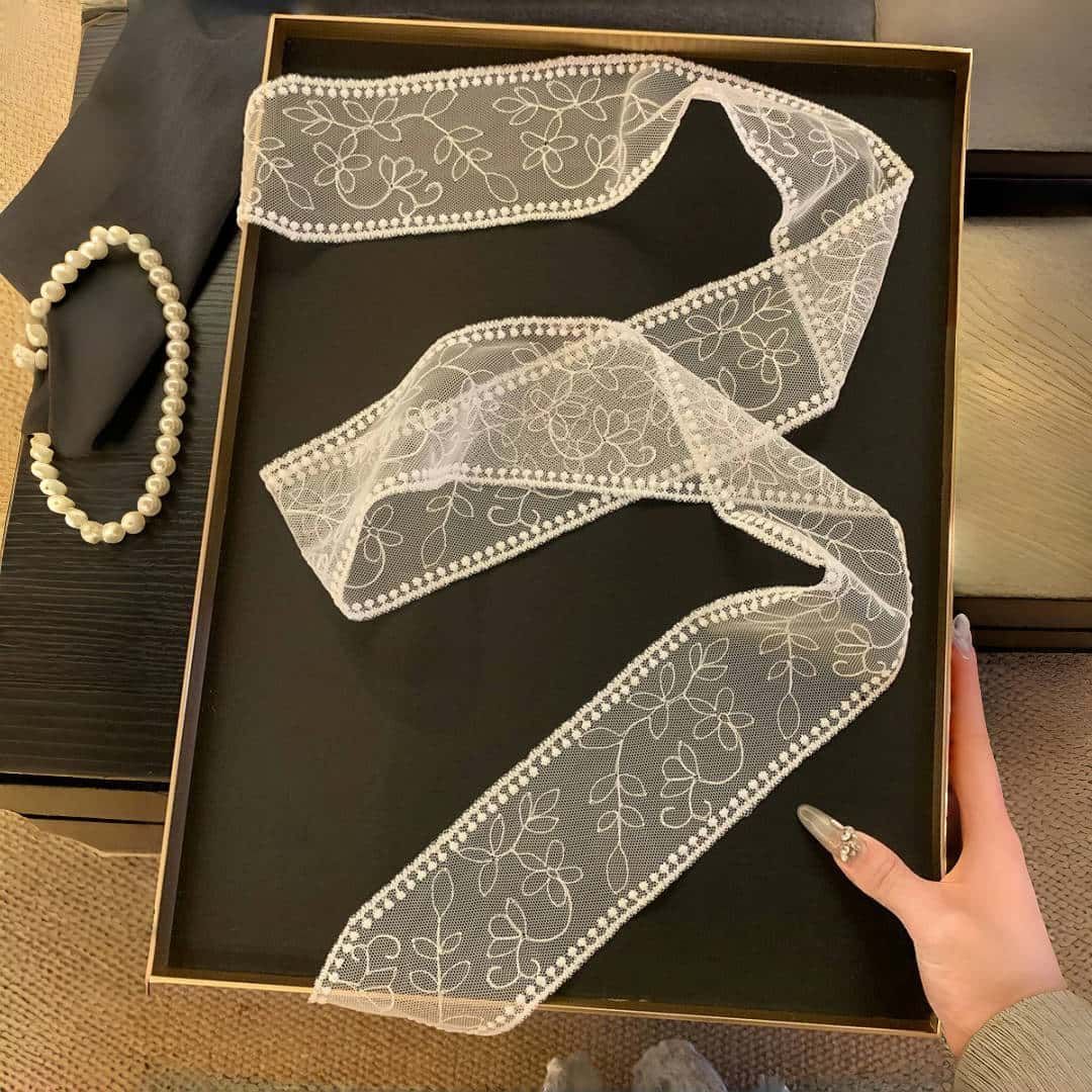 韩国ins白色蕾丝飘带女春季高级感气质长条丝巾百搭围巾颈带装饰