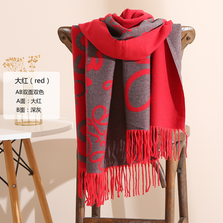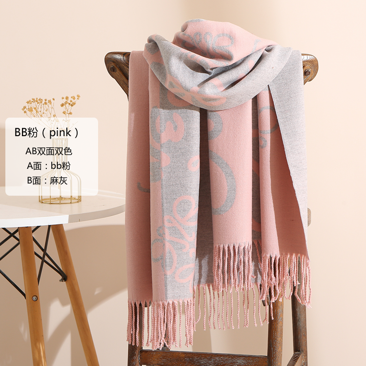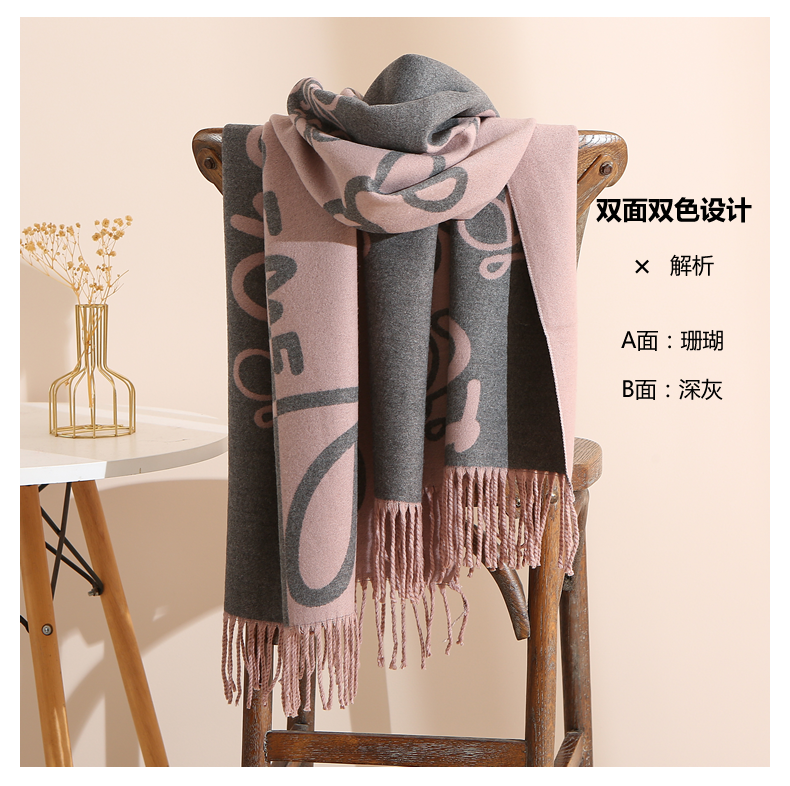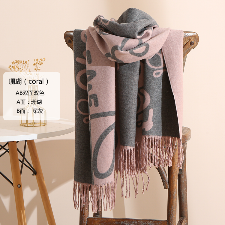 围巾女新款韩版冬季保暖护颈围脖加厚长款流苏柔软双面羊绒披肩