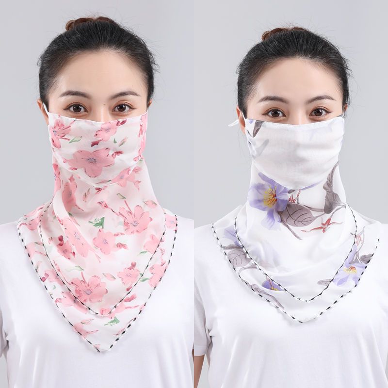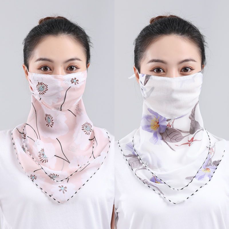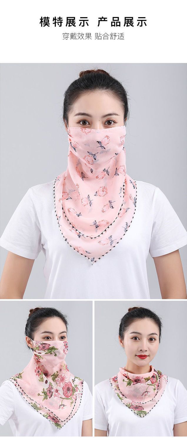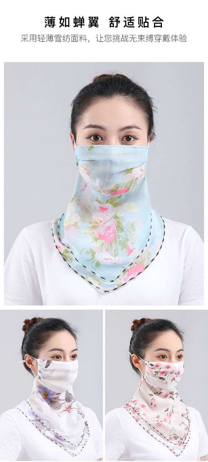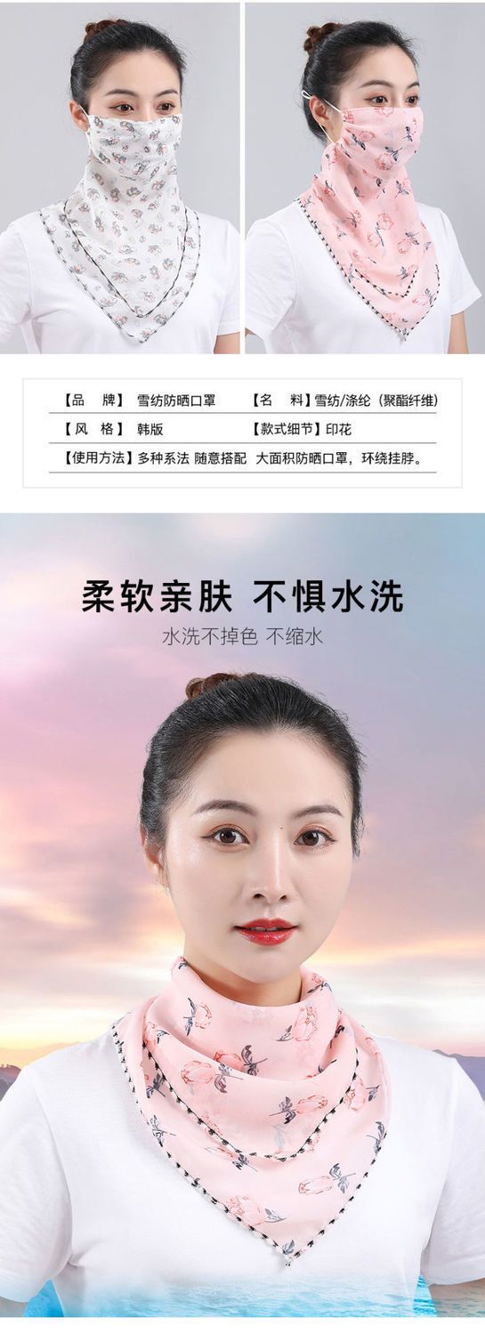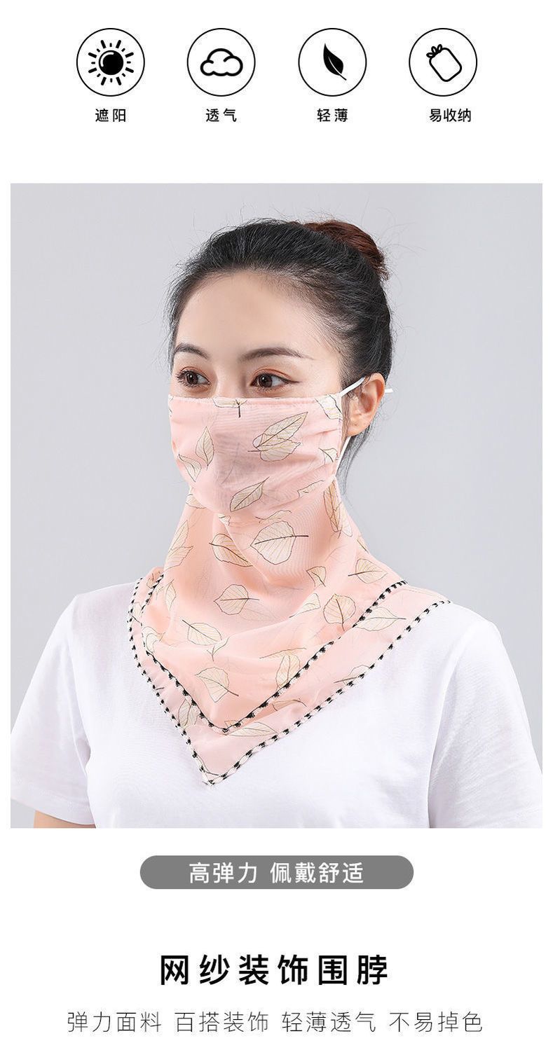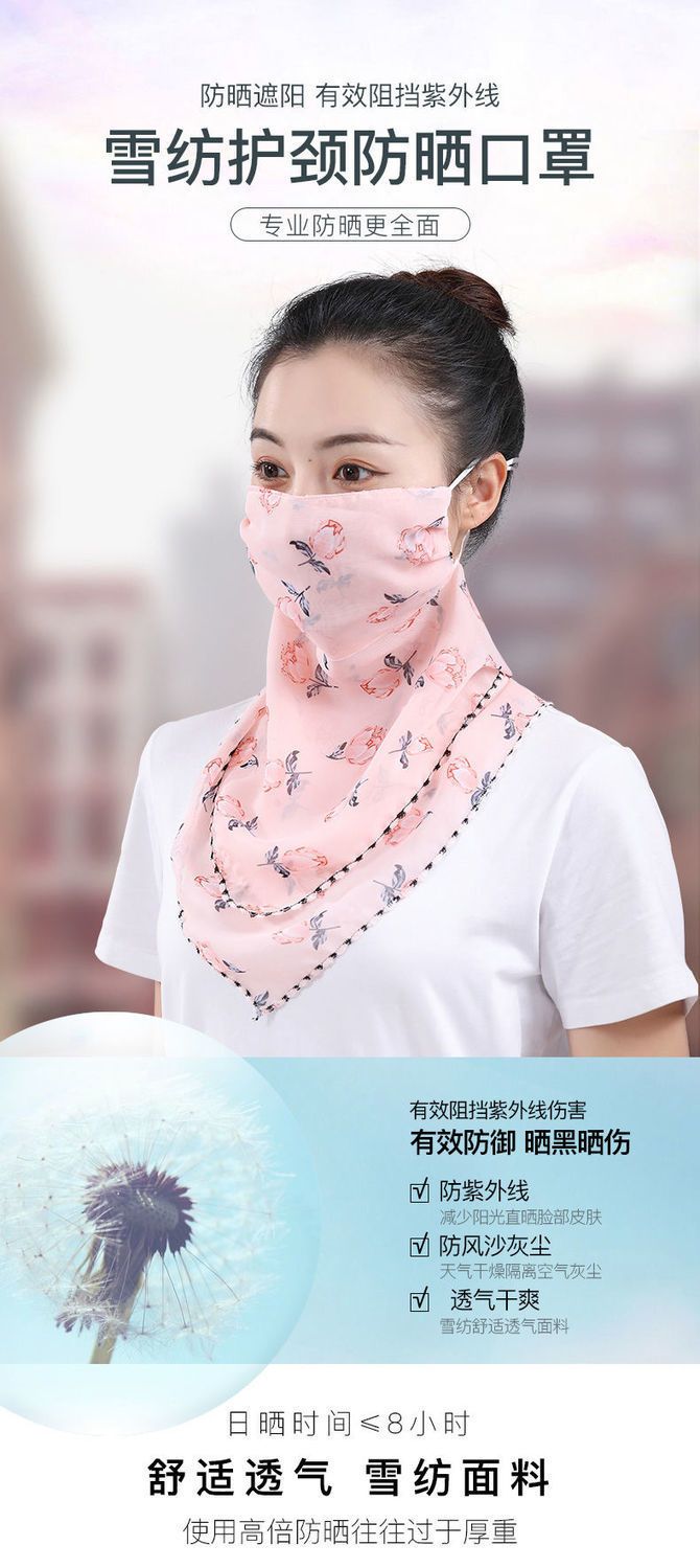 夏季防晒口罩女护颈面纱防紫外线围脖薄款雪纺透气挂耳丝巾秋冬季