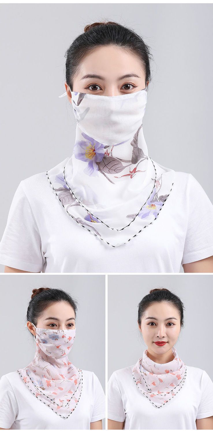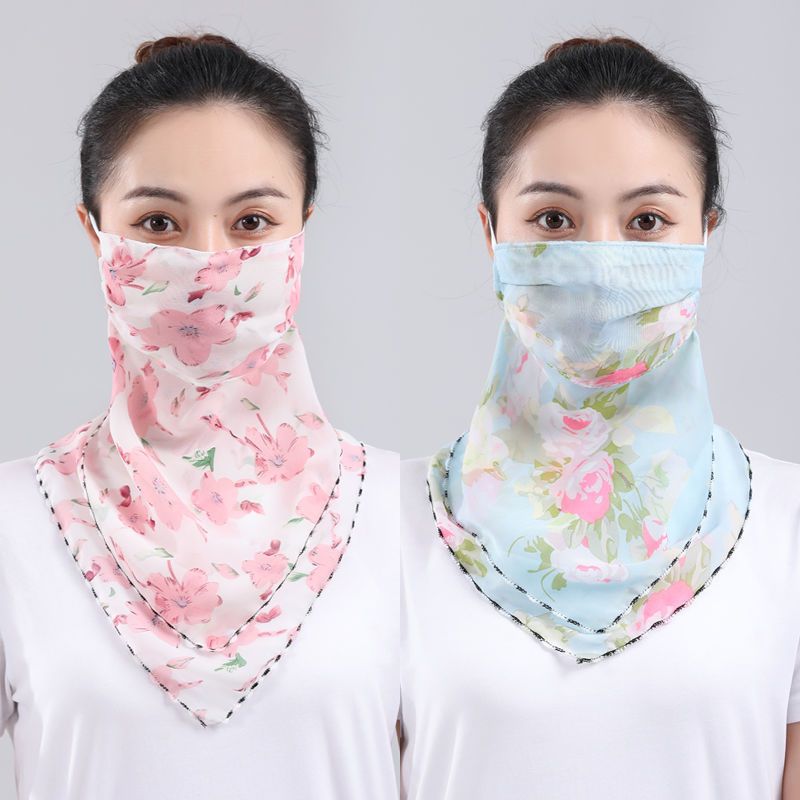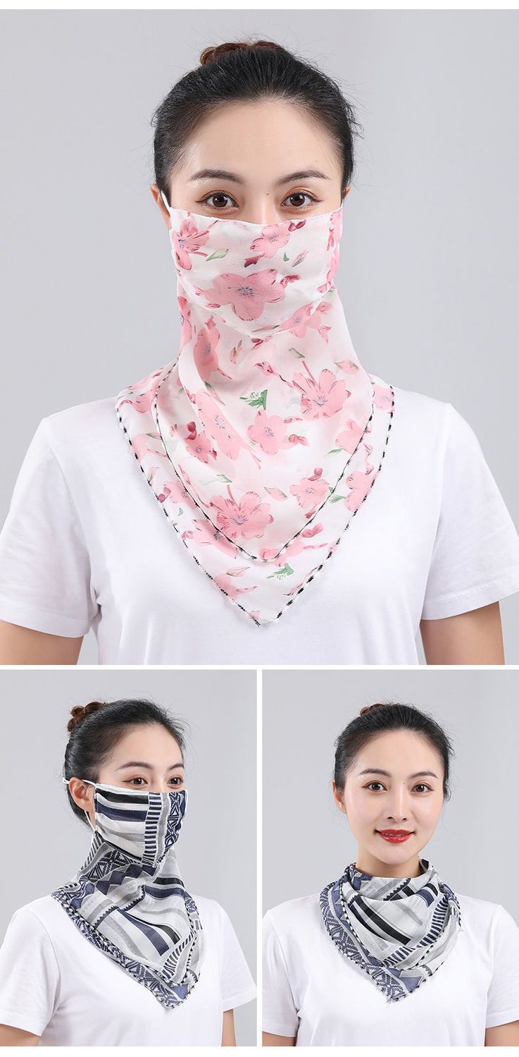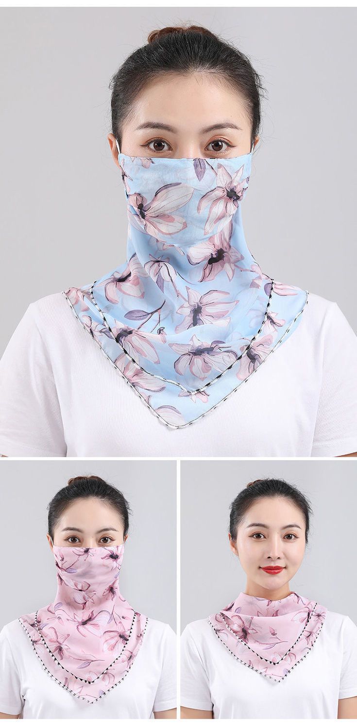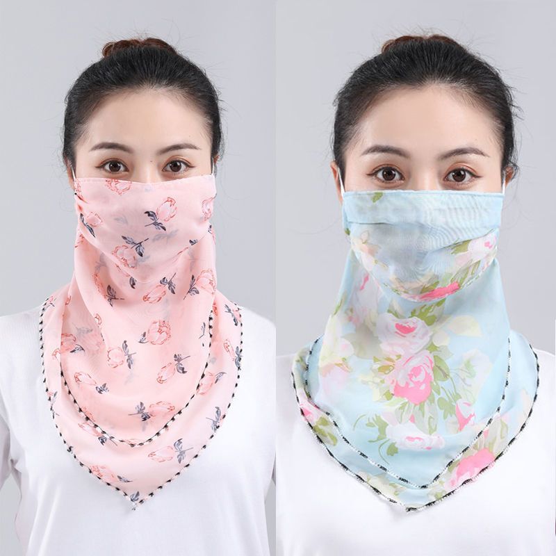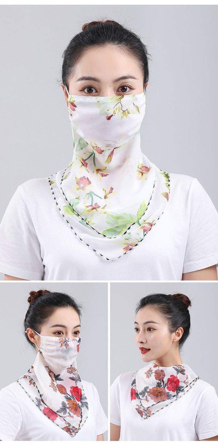 夏季防晒口罩女护颈面纱防紫外线围脖薄款雪纺透气挂耳丝巾秋冬季
