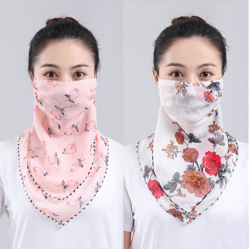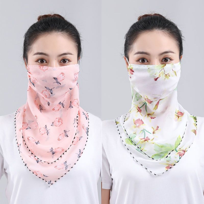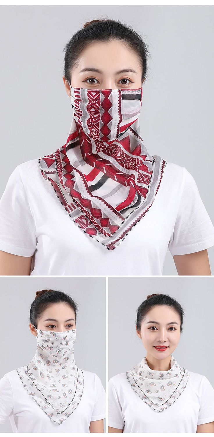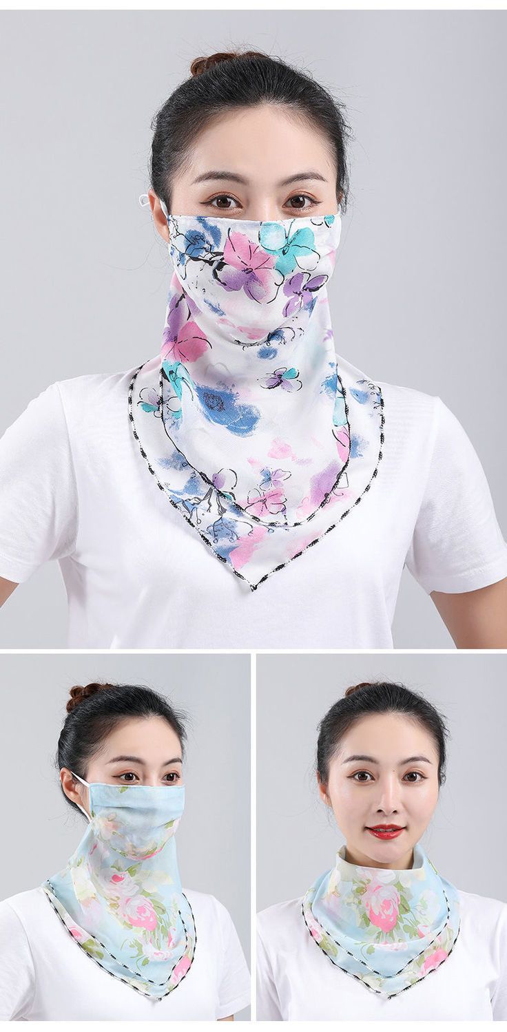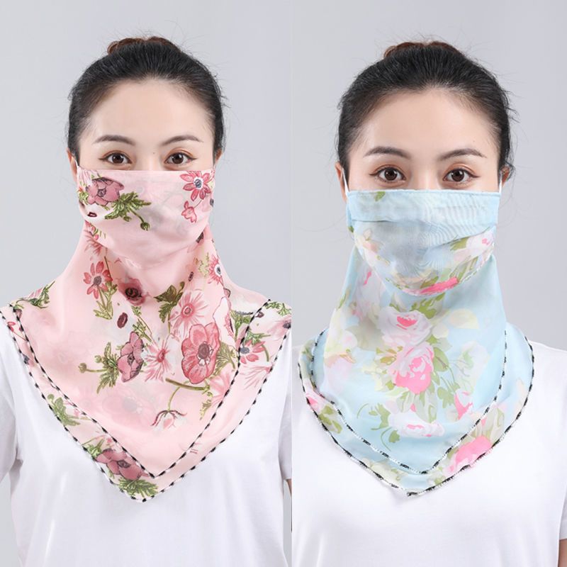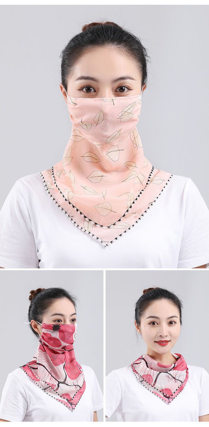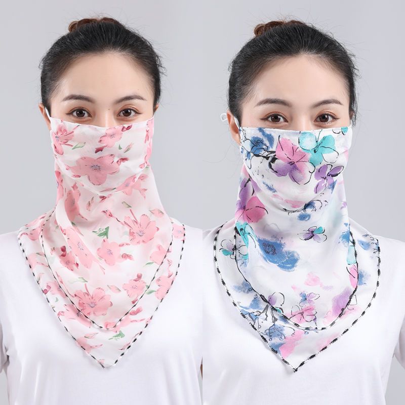 夏季防晒口罩女护颈面纱防紫外线围脖薄款雪纺透气挂耳丝巾秋冬季