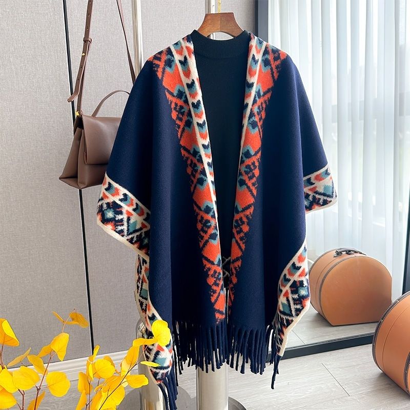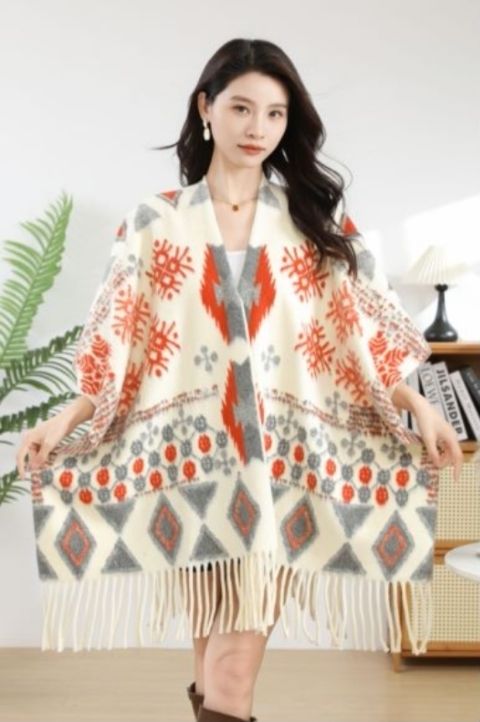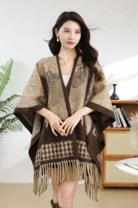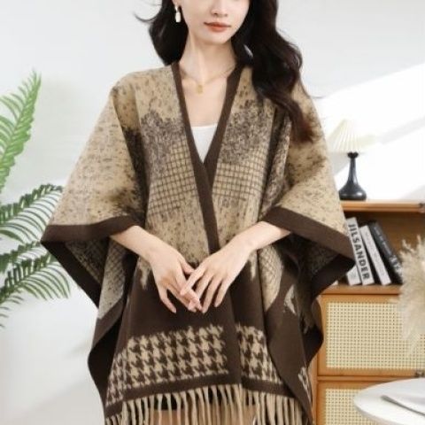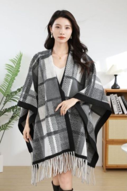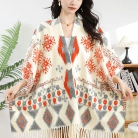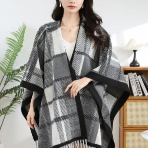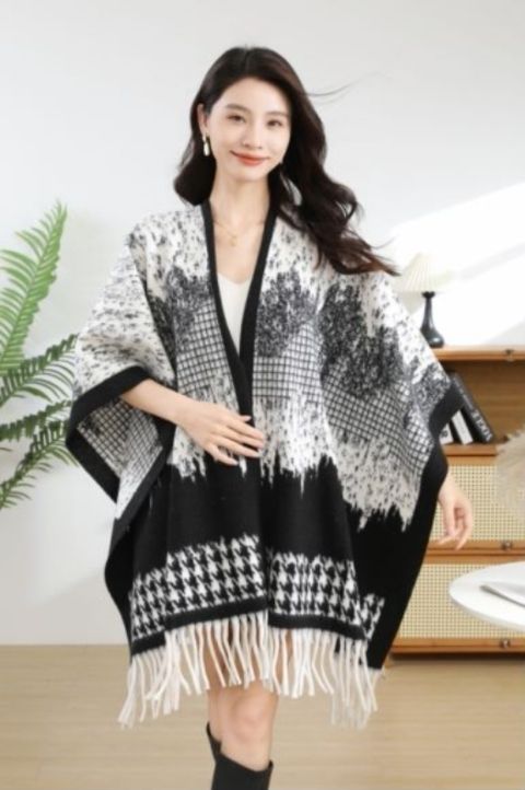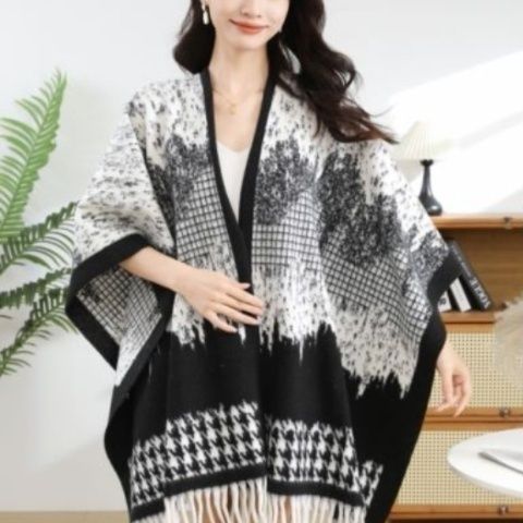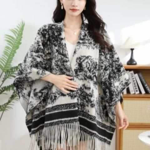 水墨东方美学披肩围巾女高级感休闲时尚双面可佩戴办公室空调毛毯