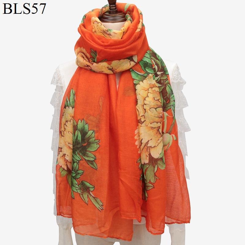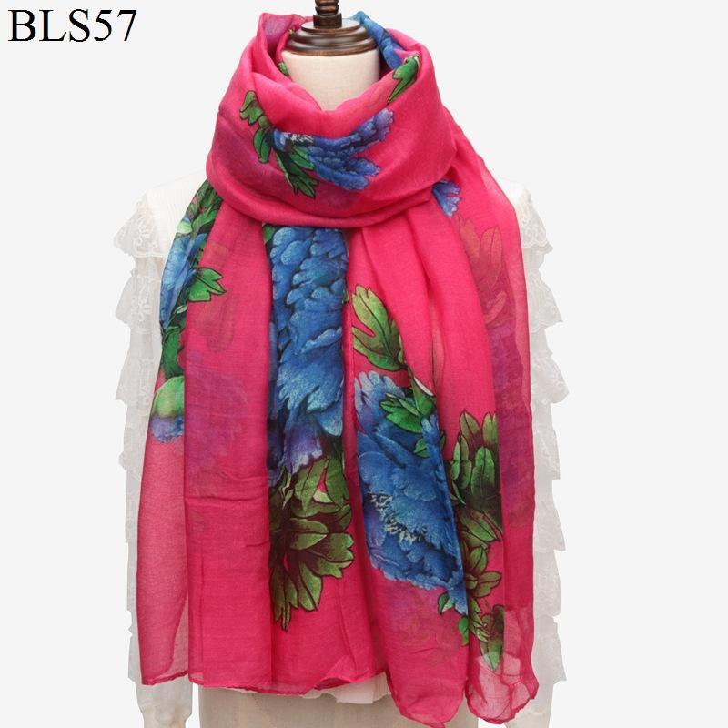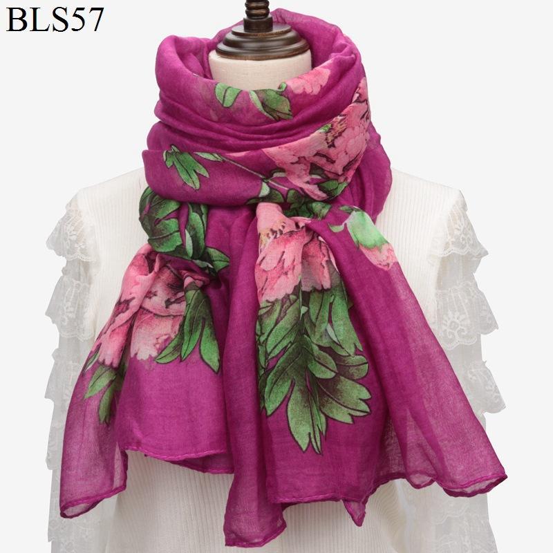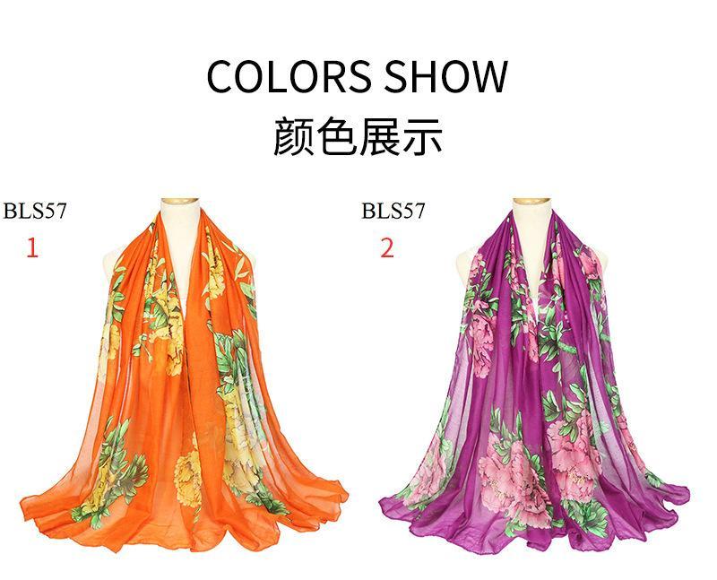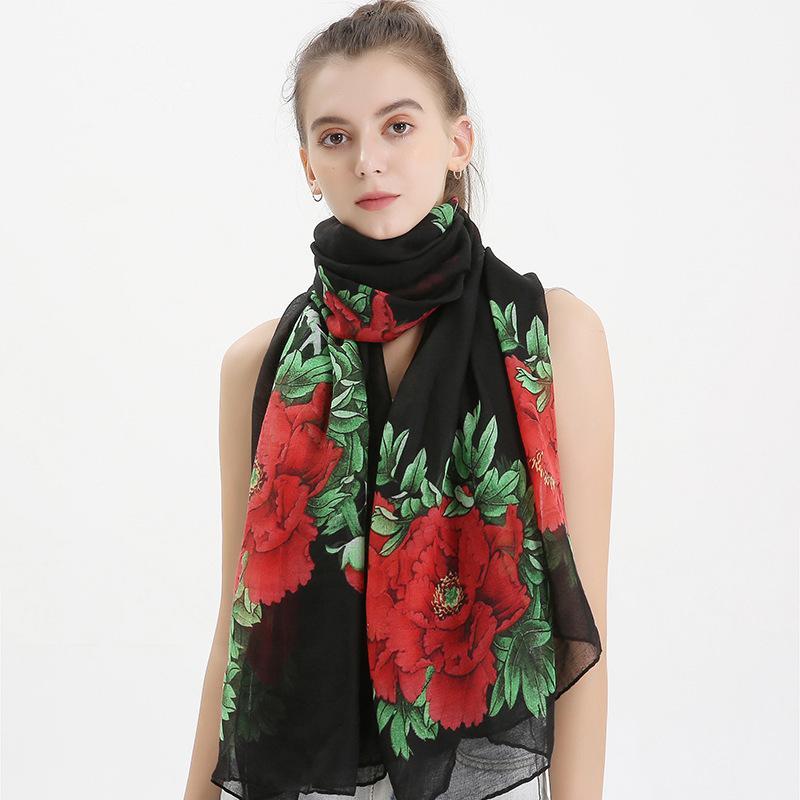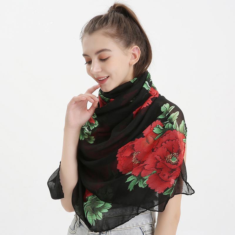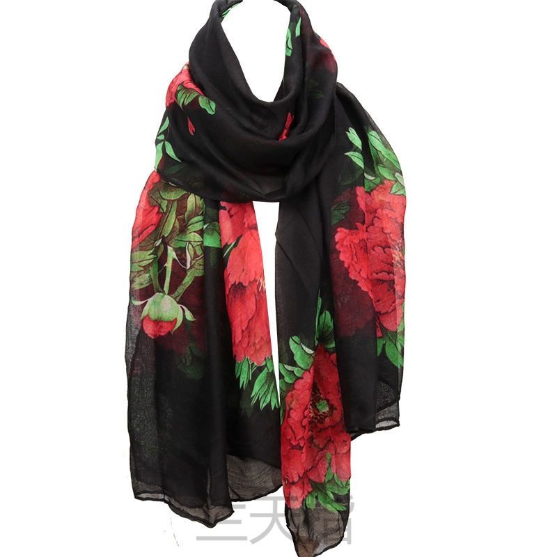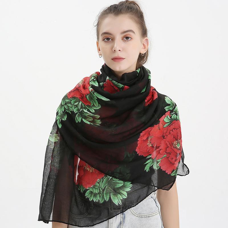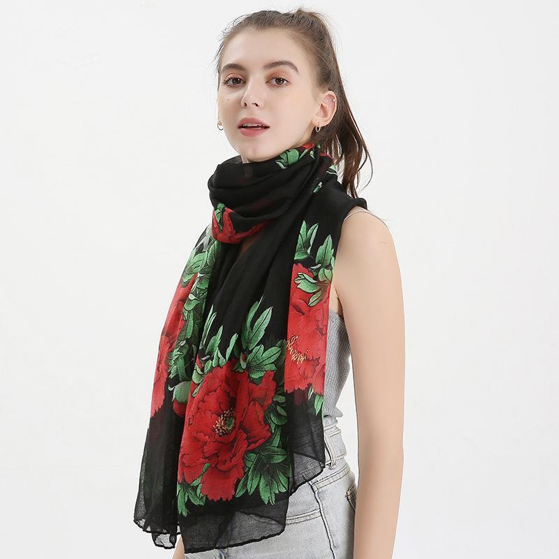 180cm新款秋冬棉麻围巾女 牡丹花印花丝巾妈妈护颈薄披肩两用围巾