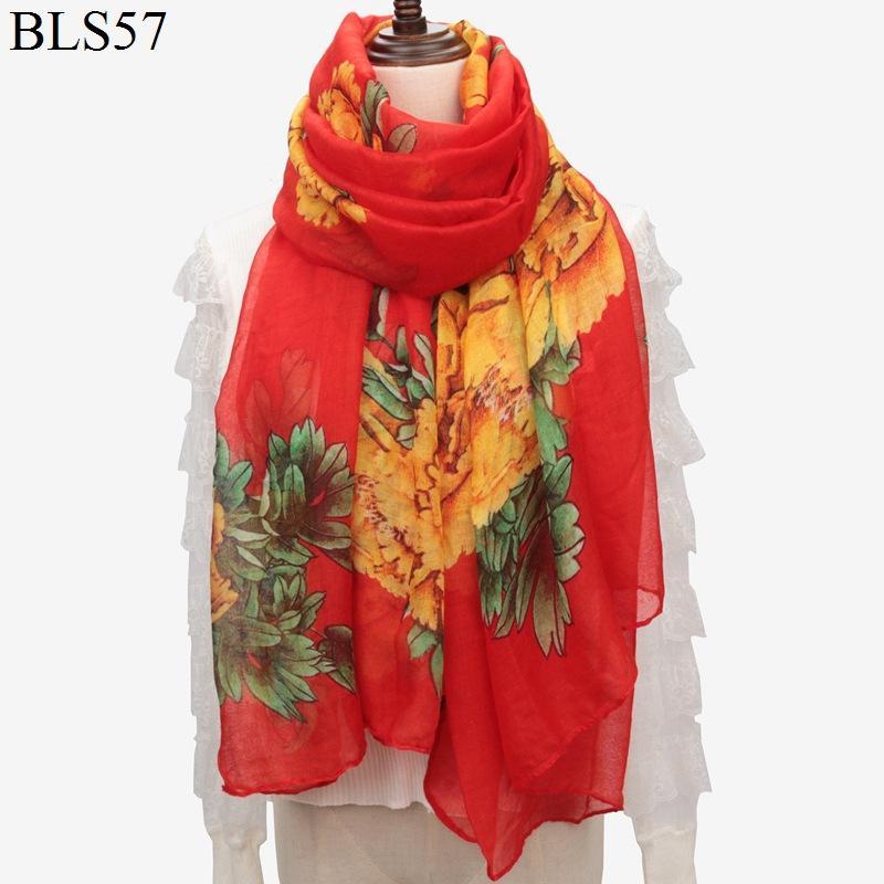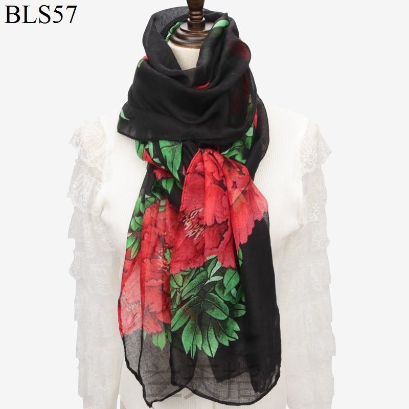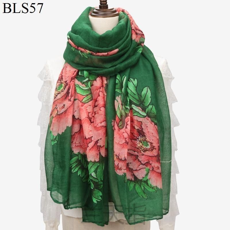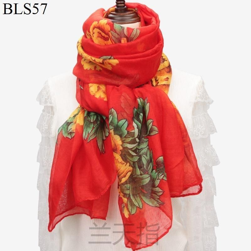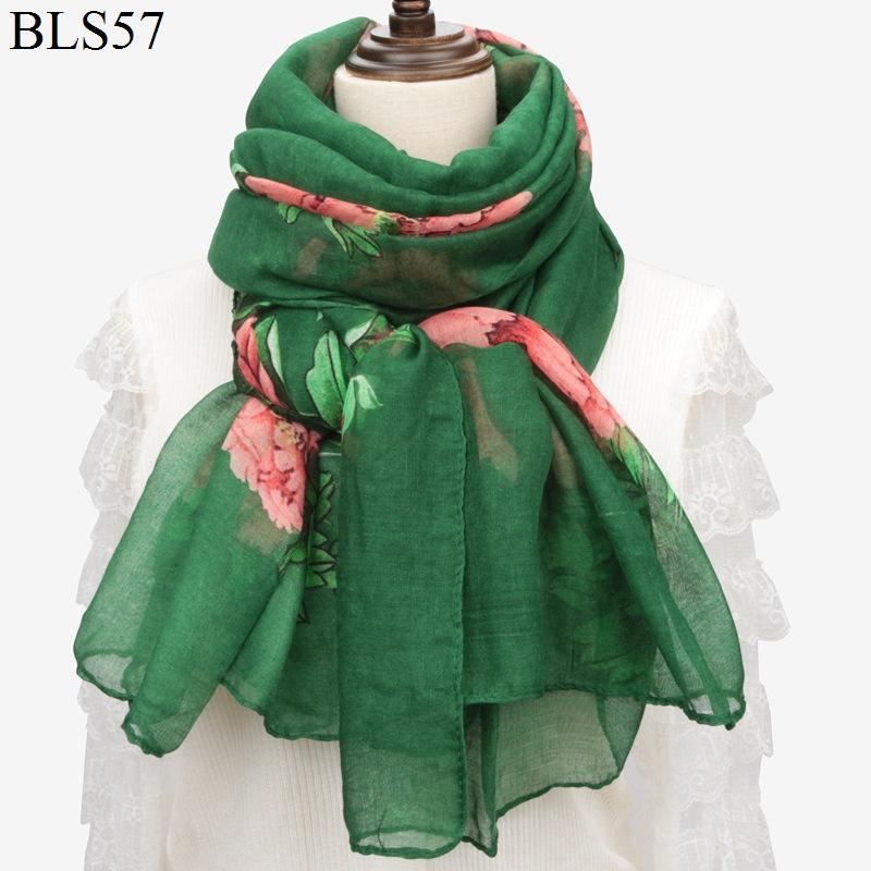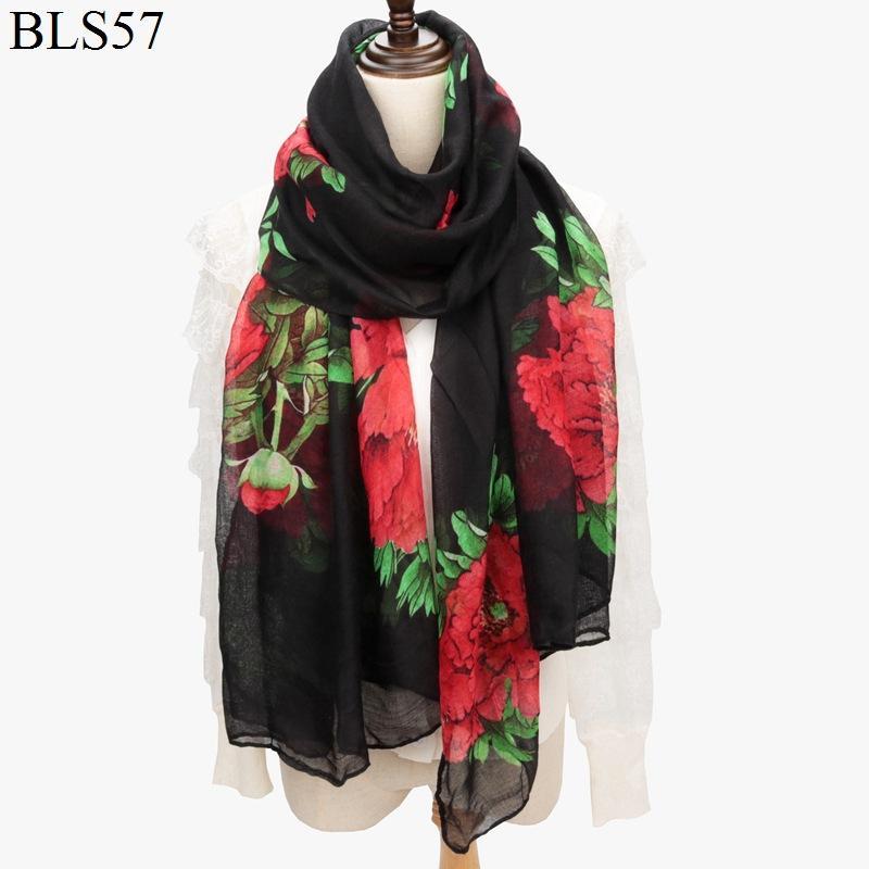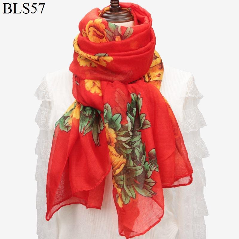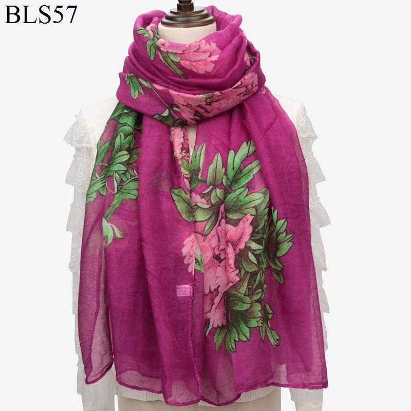 180cm新款秋冬棉麻围巾女 牡丹花印花丝巾妈妈护颈薄披肩两用围巾