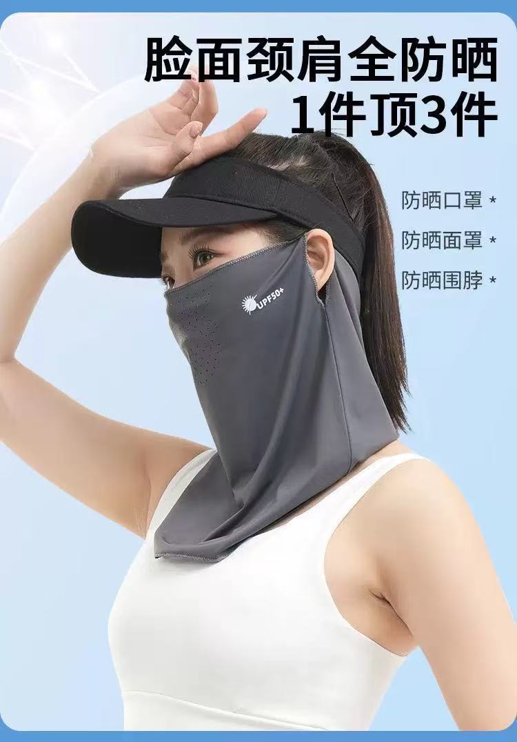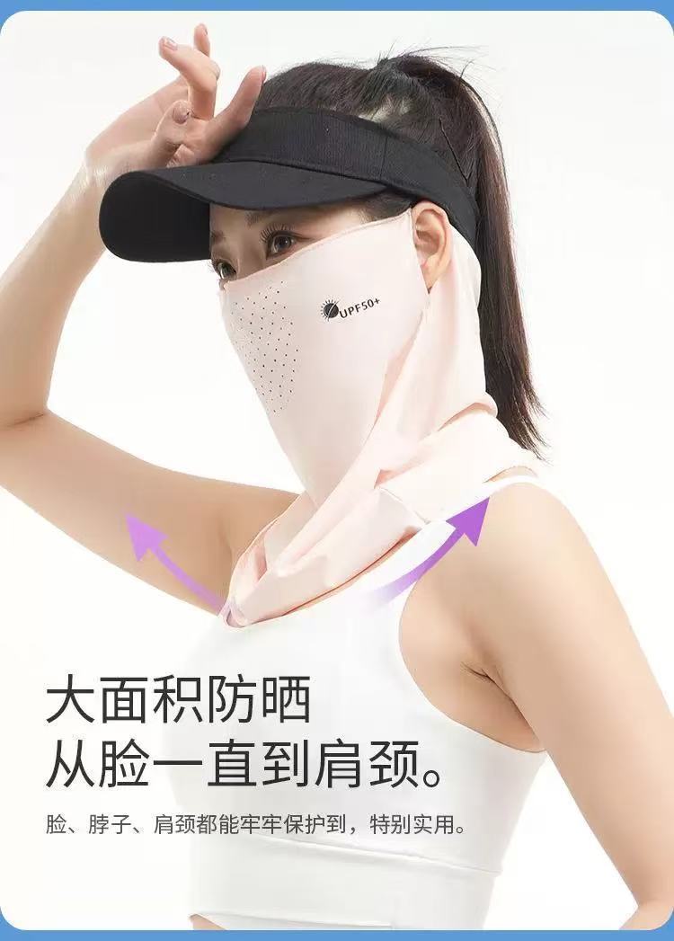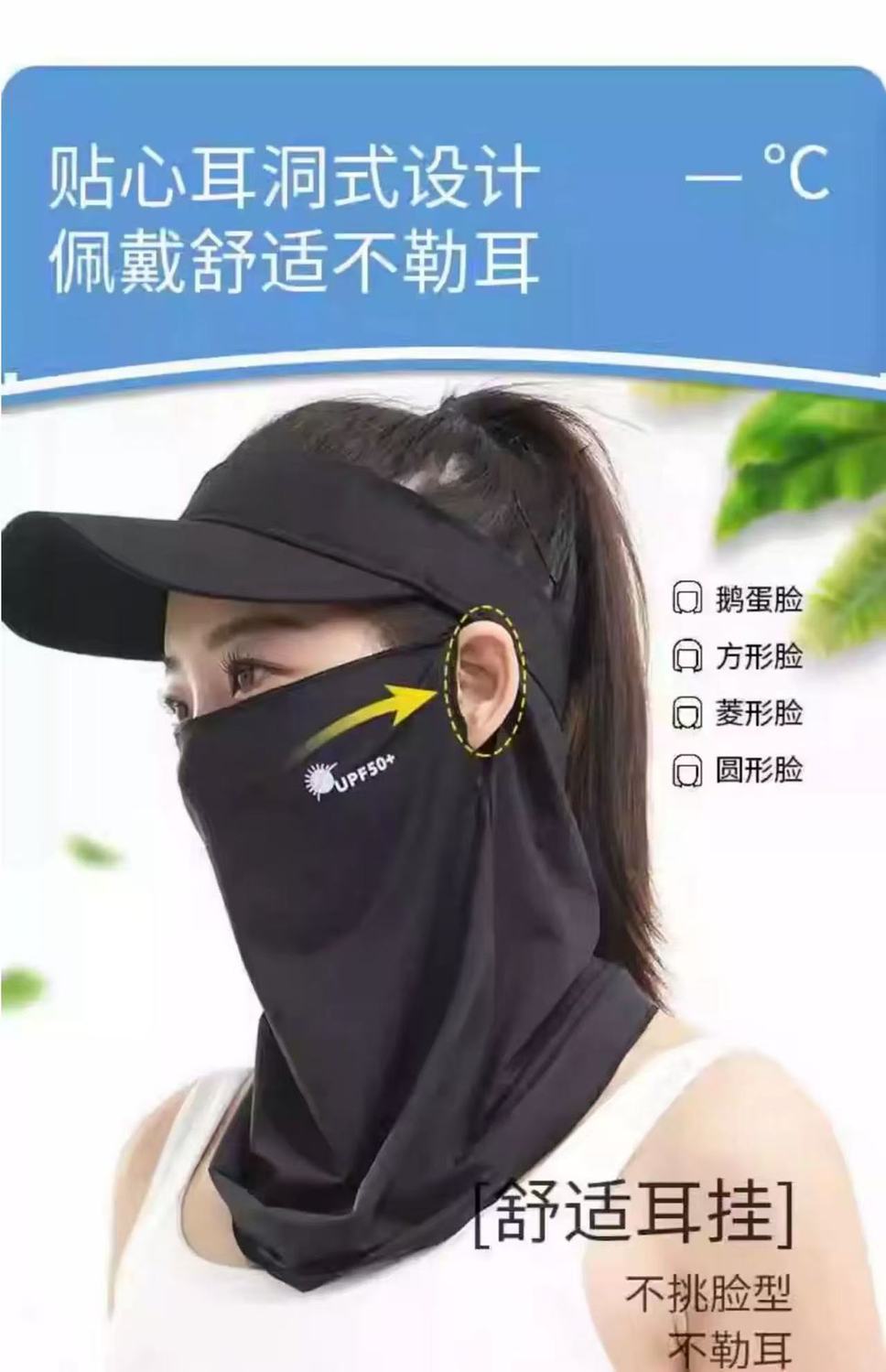 【挂耳便捷】冰丝防晒面罩女挂耳式春夏季口罩护颈一体防紫外线脸