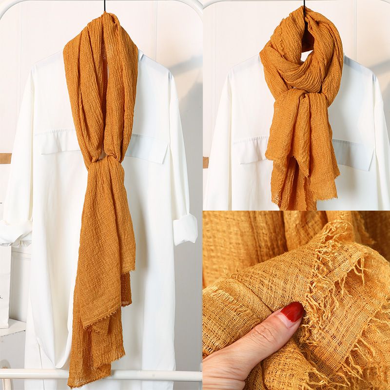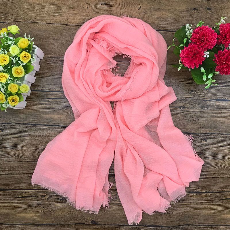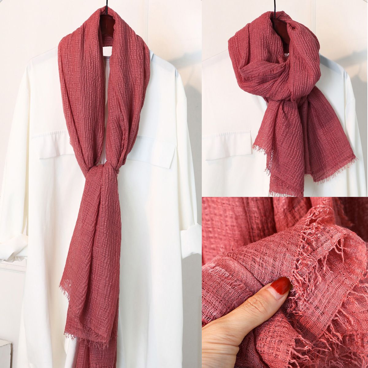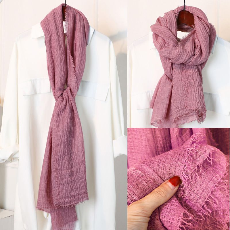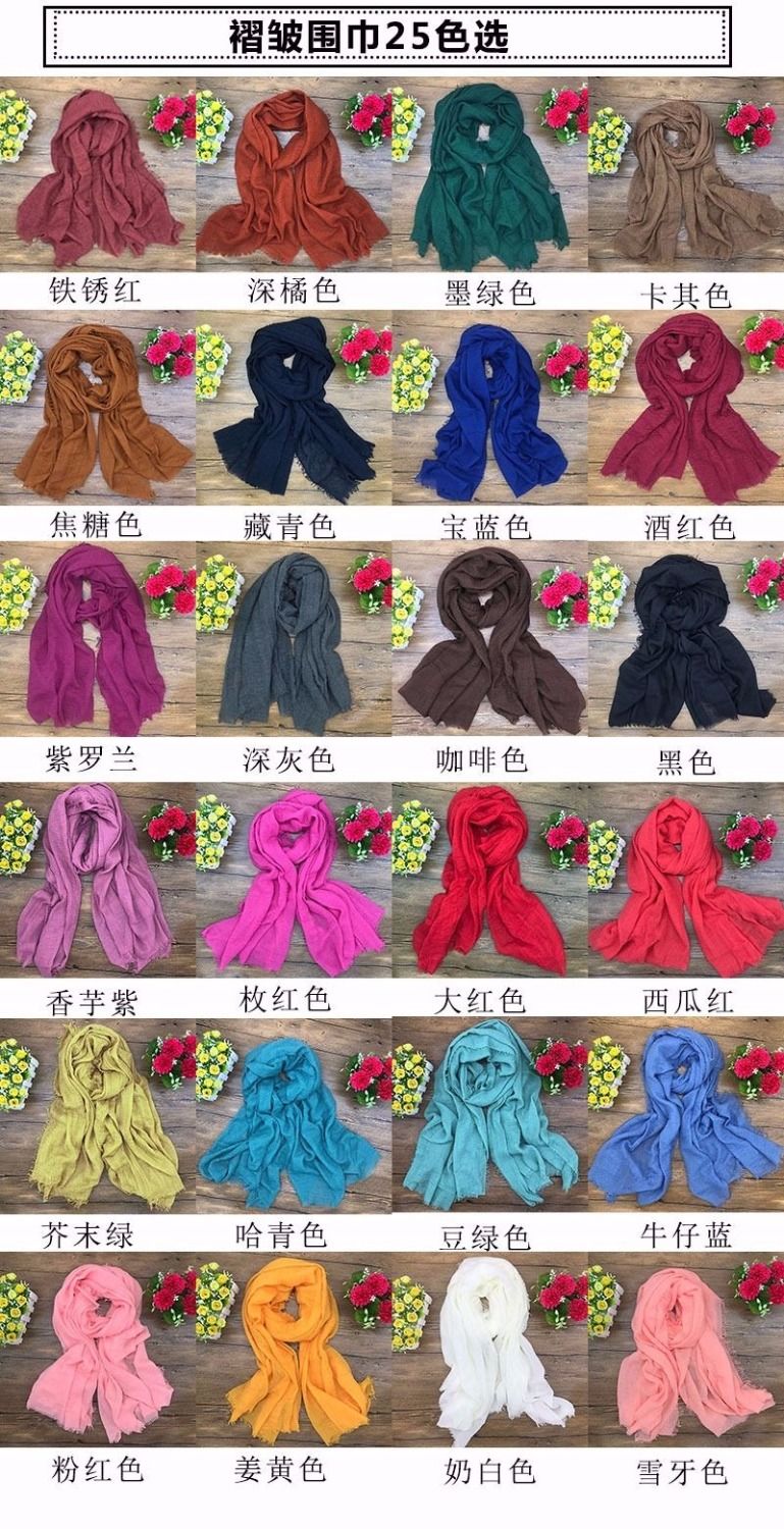 围巾女冬款学生韩版百搭女士丝巾秋季披肩女外搭褶皱棉麻纱巾围脖