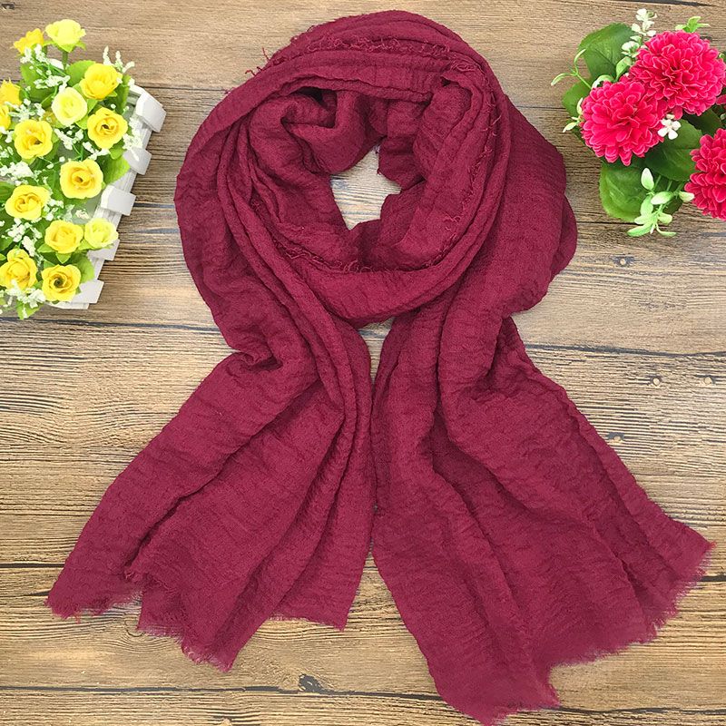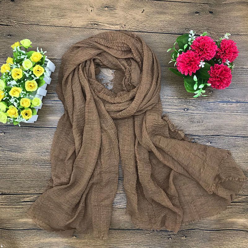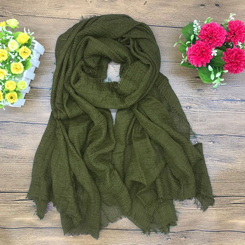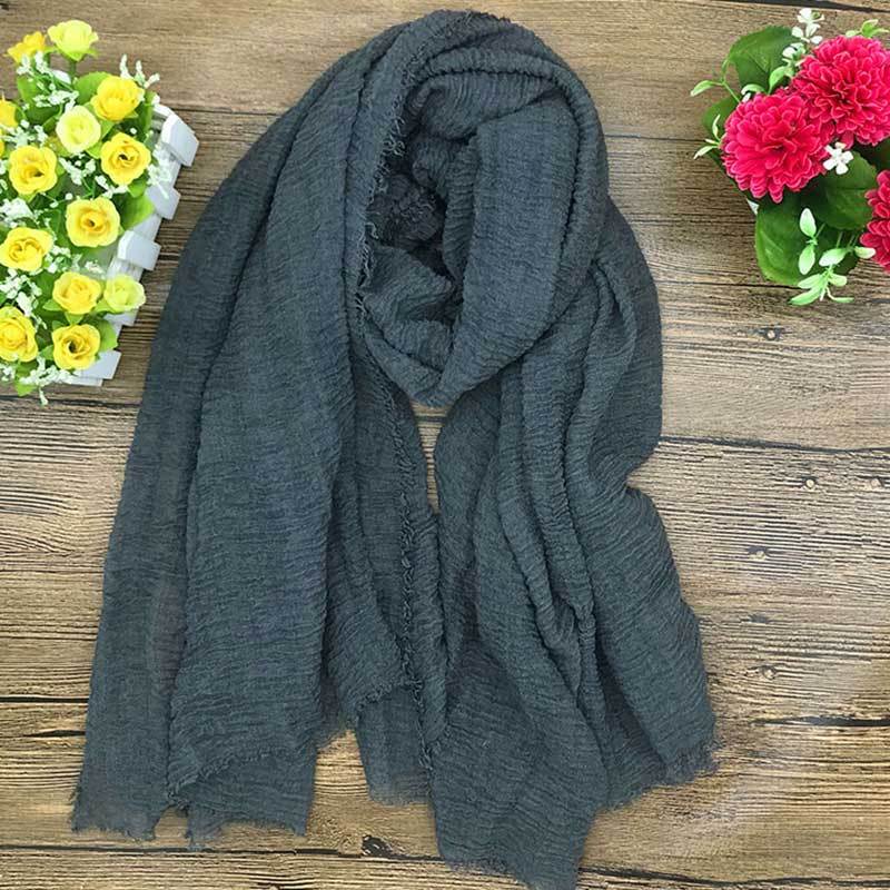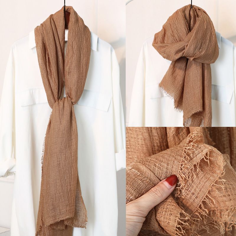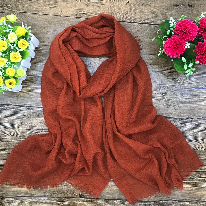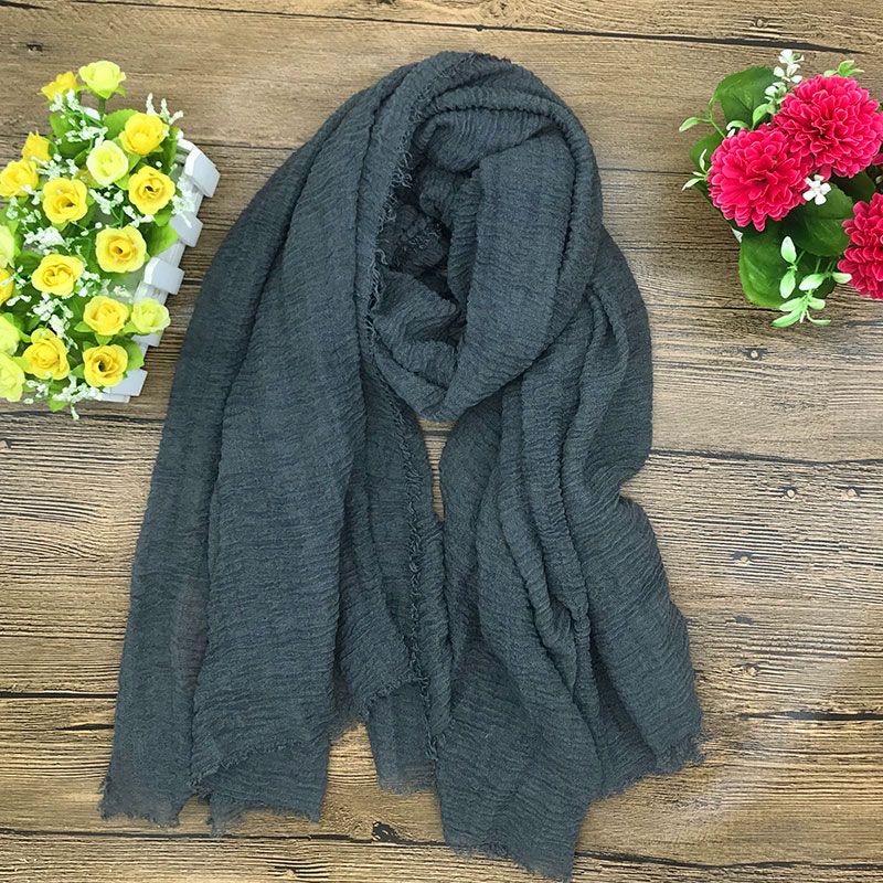 围巾女冬款学生韩版百搭女士丝巾秋季披肩女外搭褶皱棉麻纱巾围脖