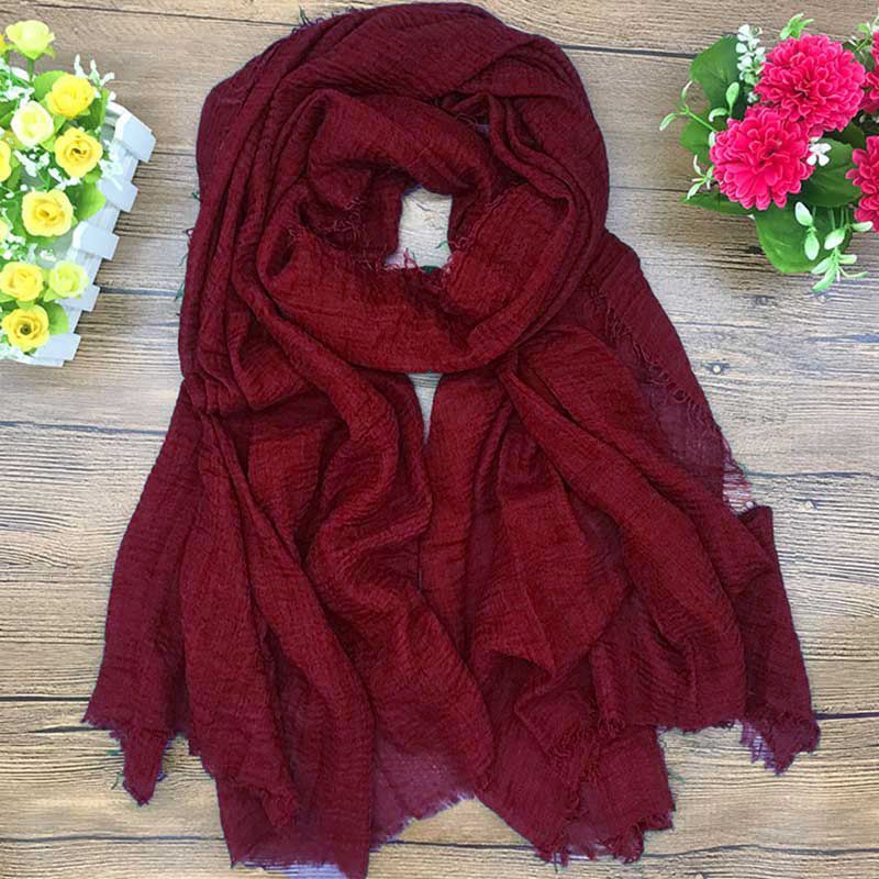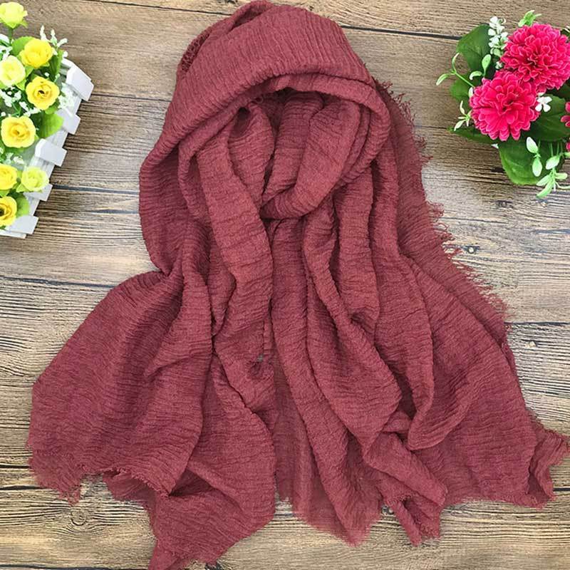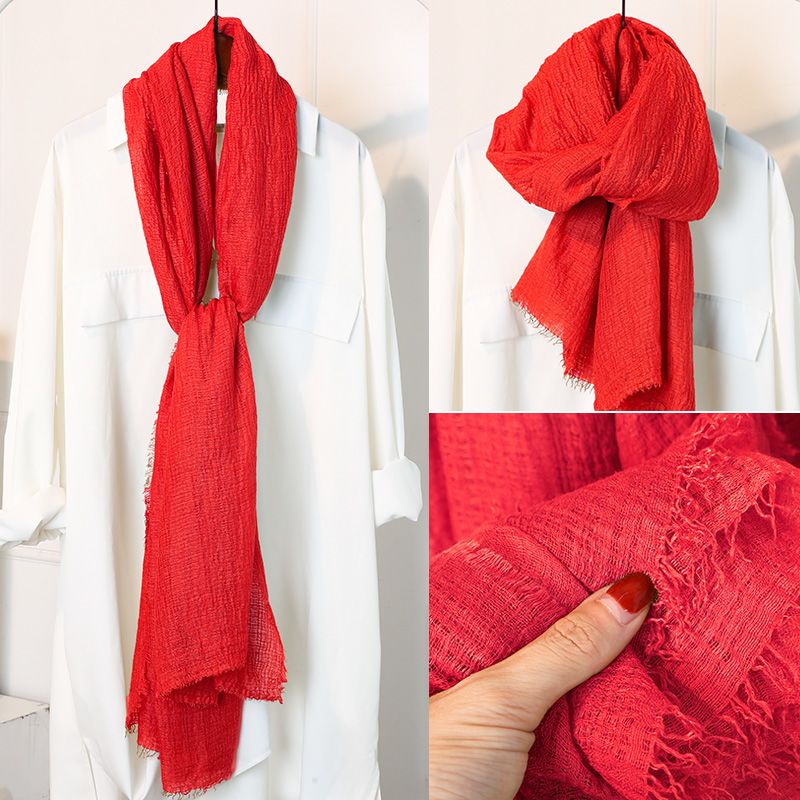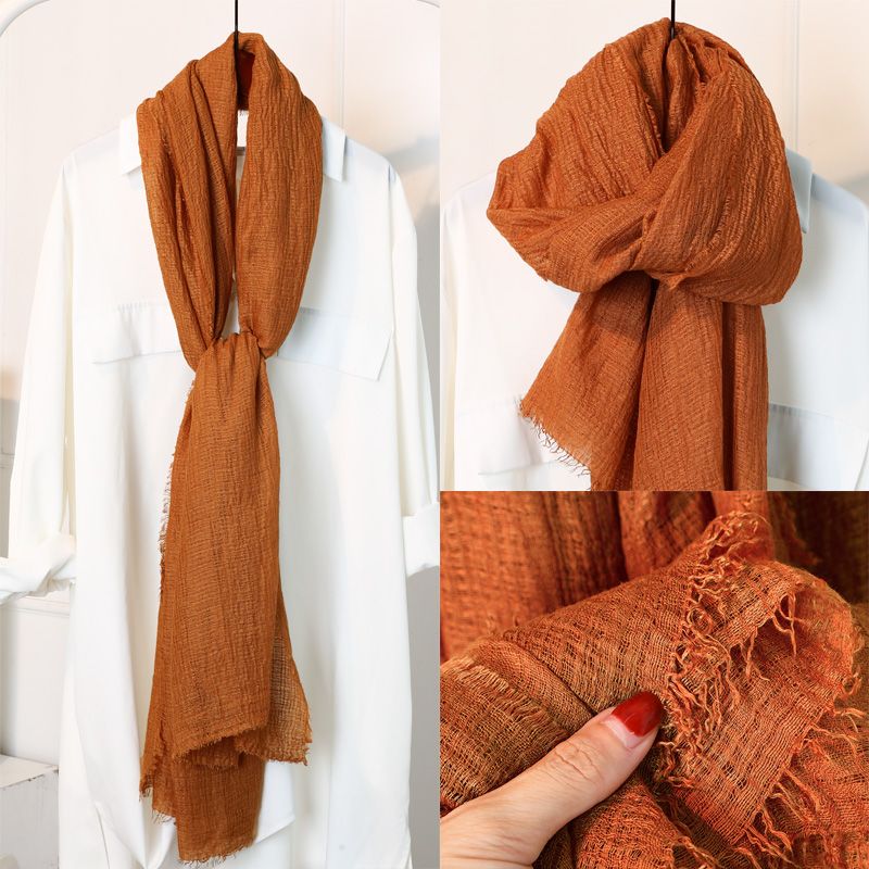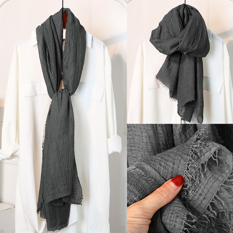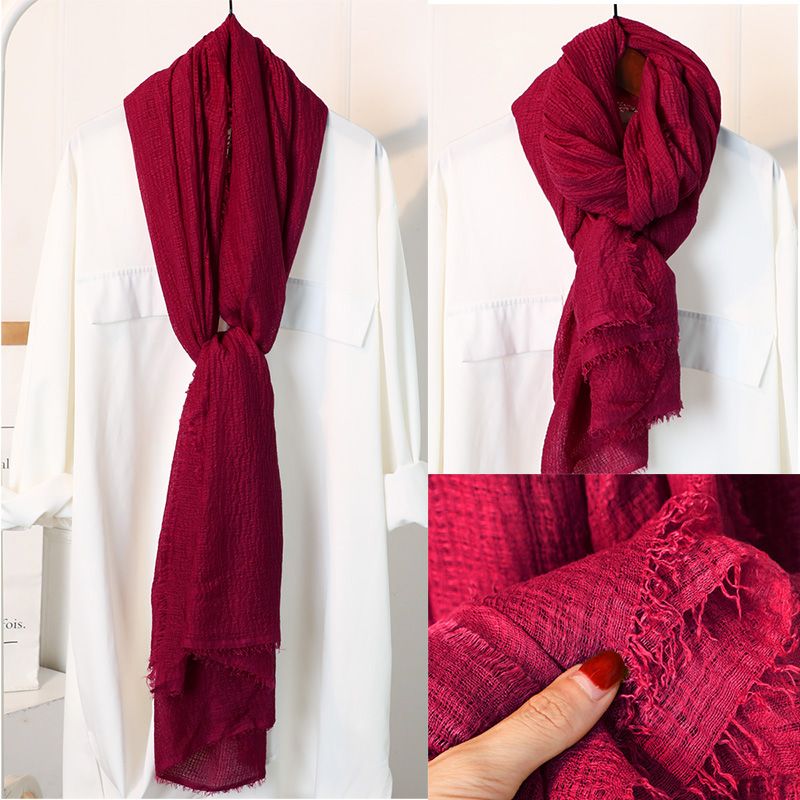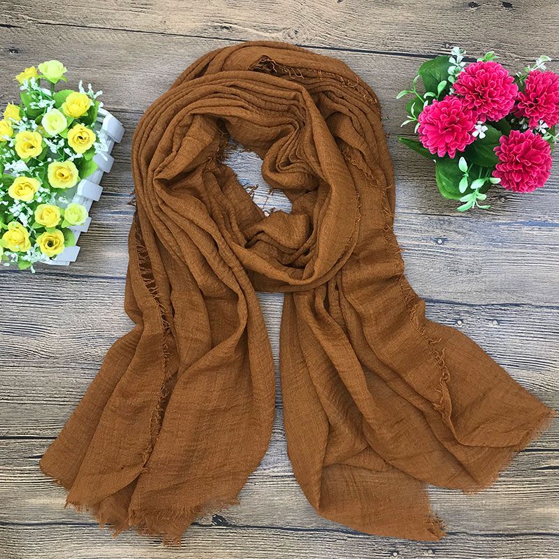 围巾女冬款学生韩版百搭女士丝巾秋季披肩女外搭褶皱棉麻纱巾围脖