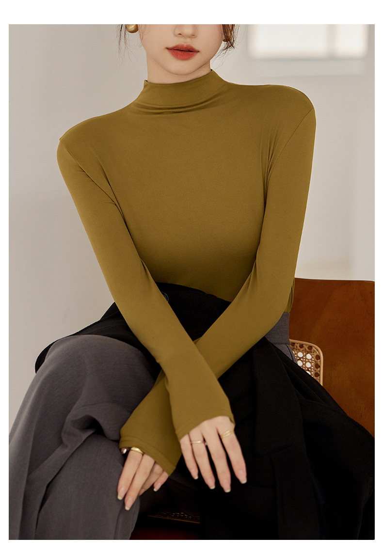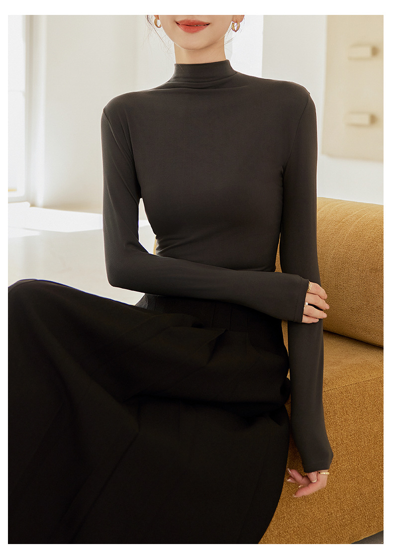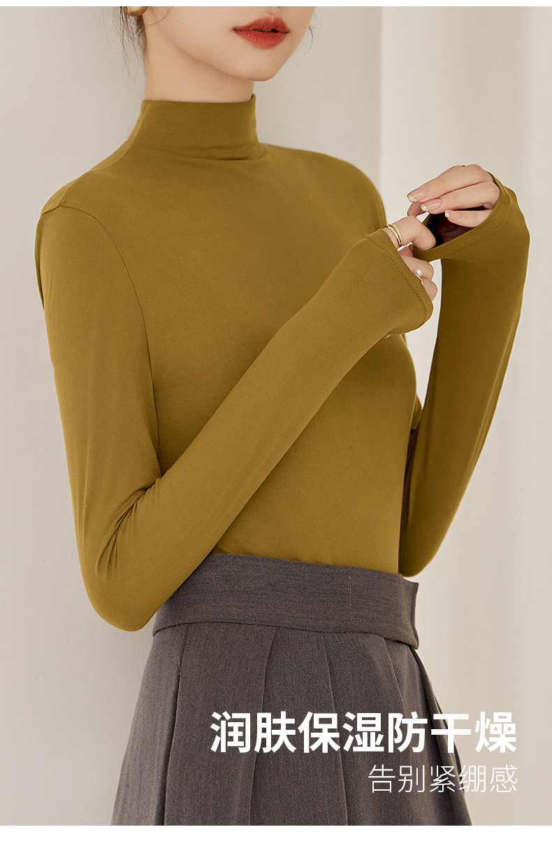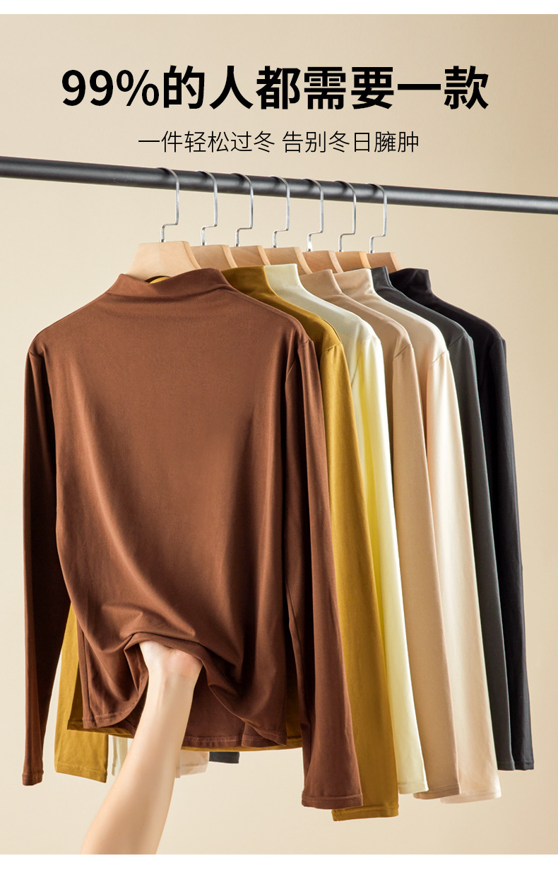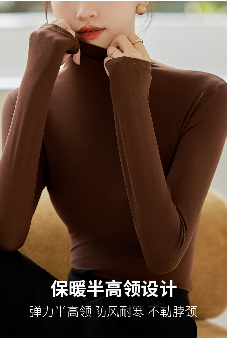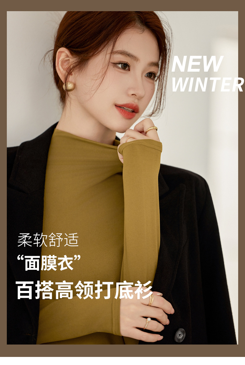 秋冬新款打底衫椰油面膜衣半高领女内搭磨毛长袖修身打底中领上衣