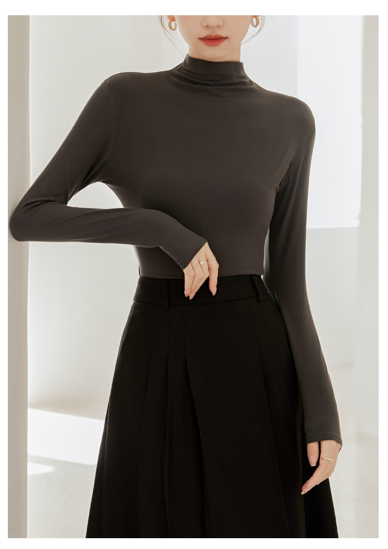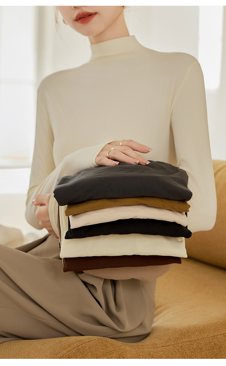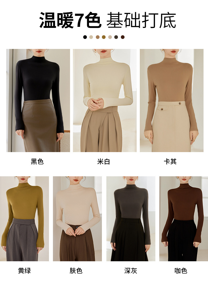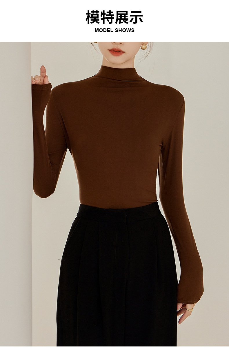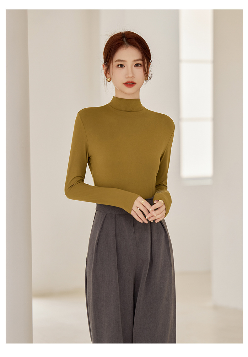 秋冬新款打底衫椰油面膜衣半高领女内搭磨毛长袖修身打底中领上衣