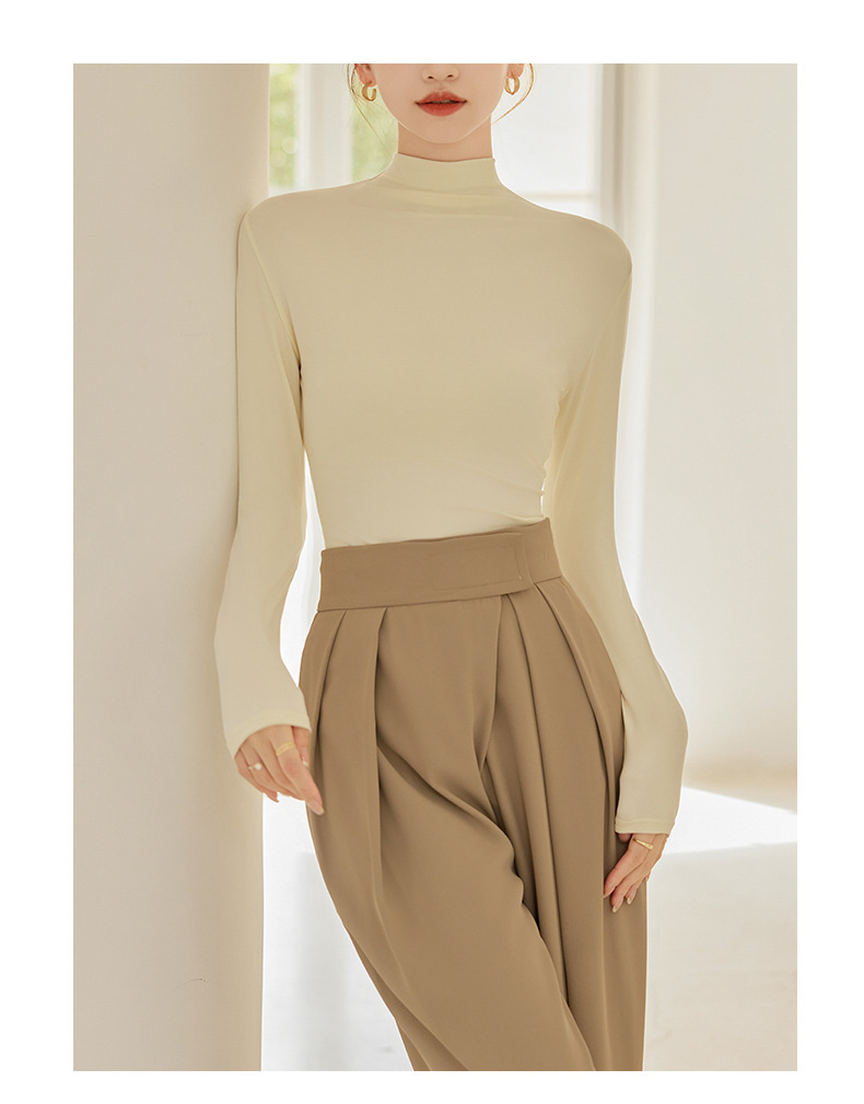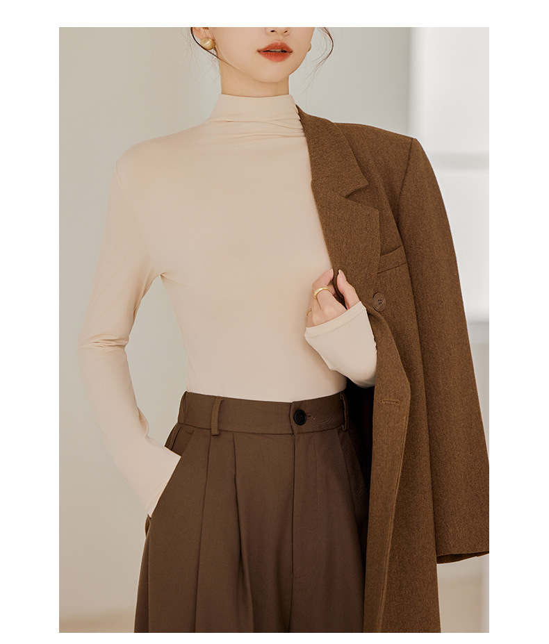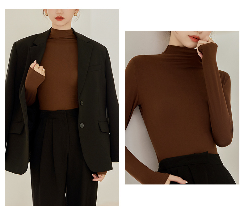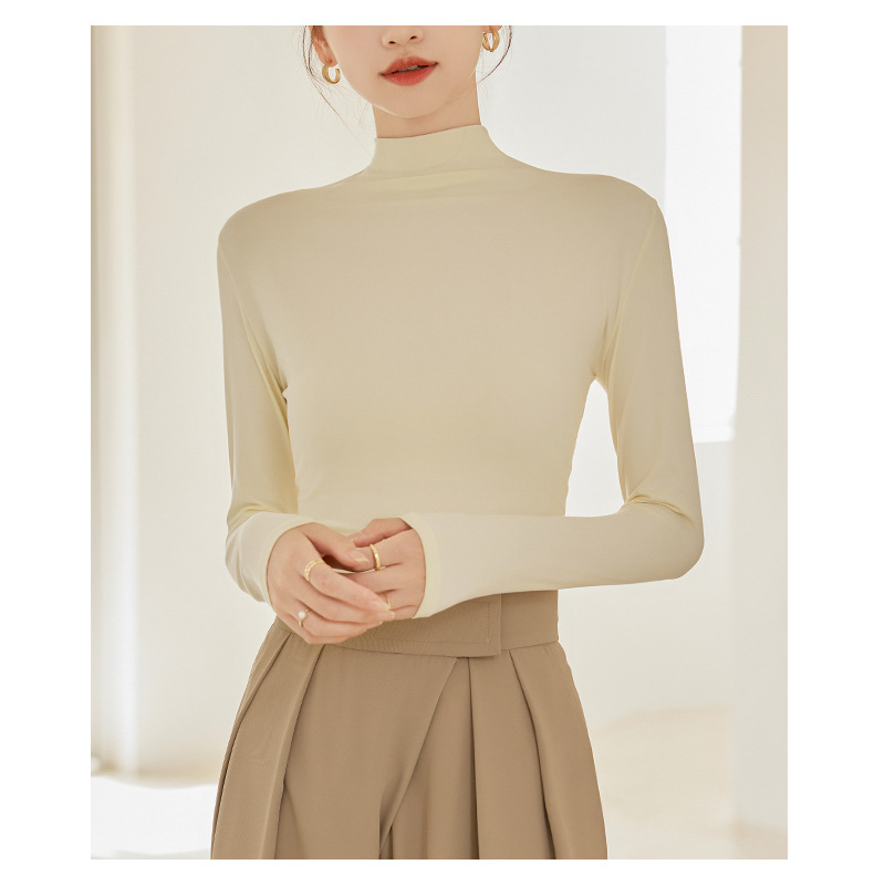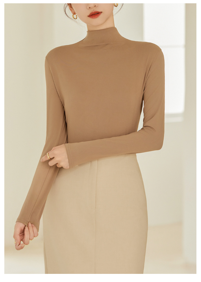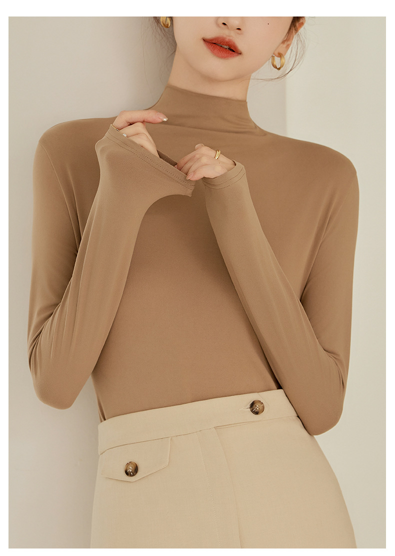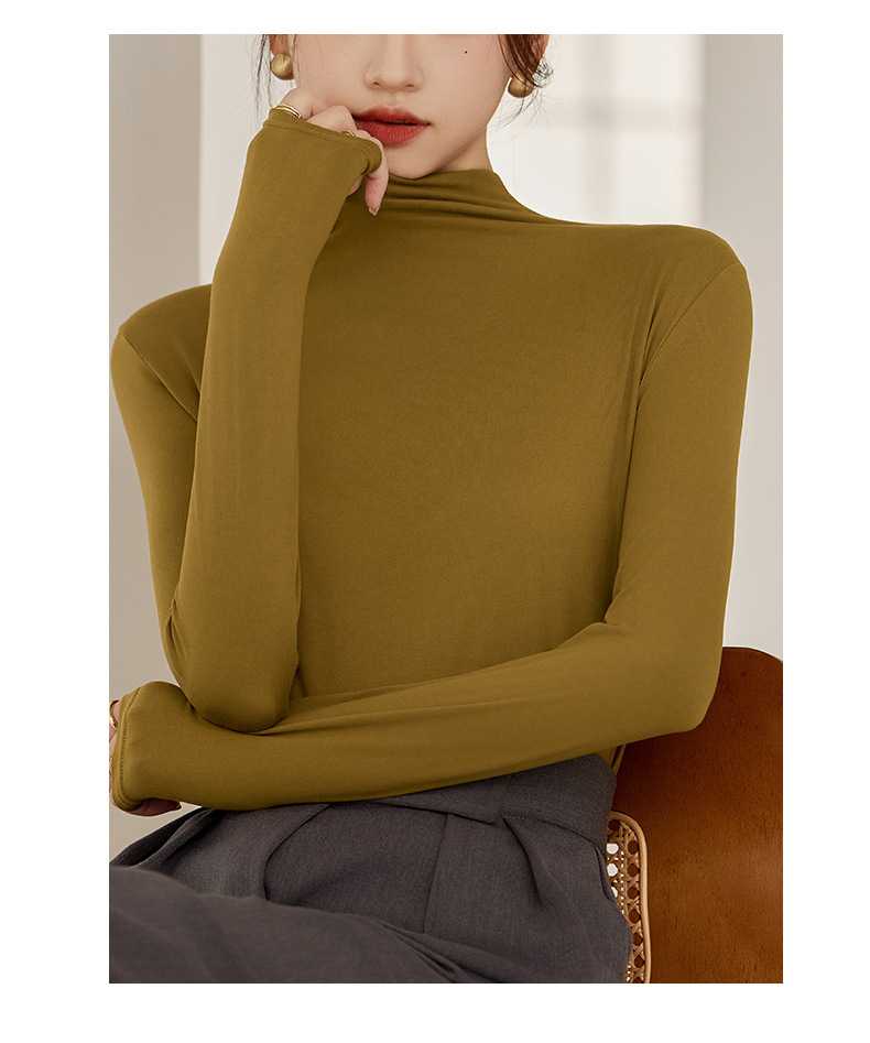 秋冬新款打底衫椰油面膜衣半高领女内搭磨毛长袖修身打底中领上衣