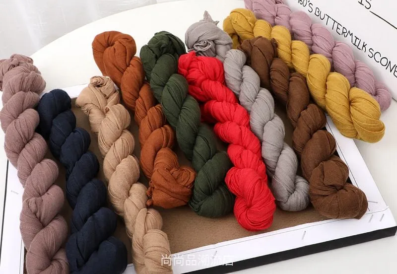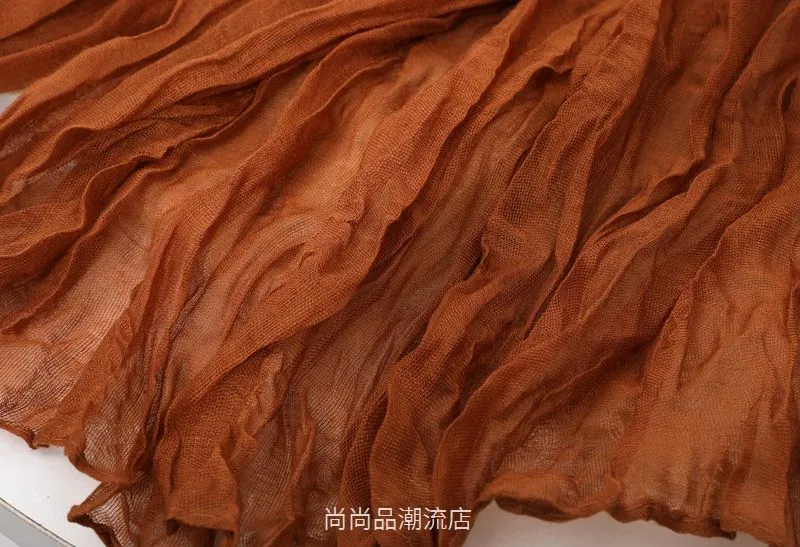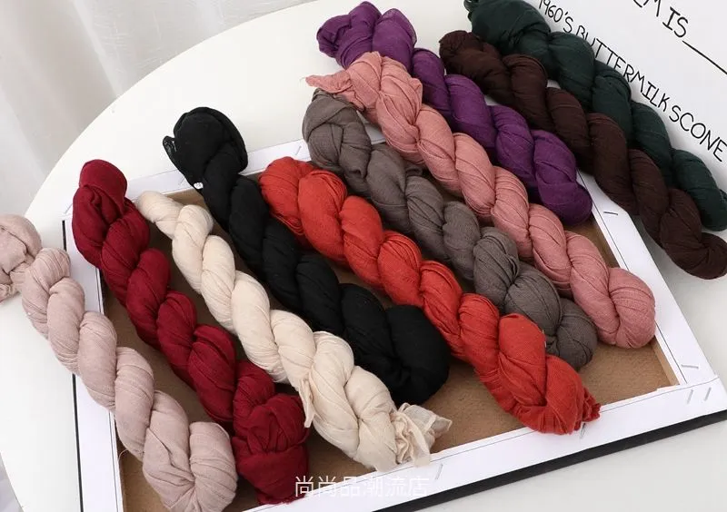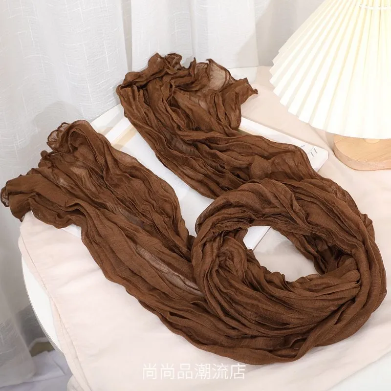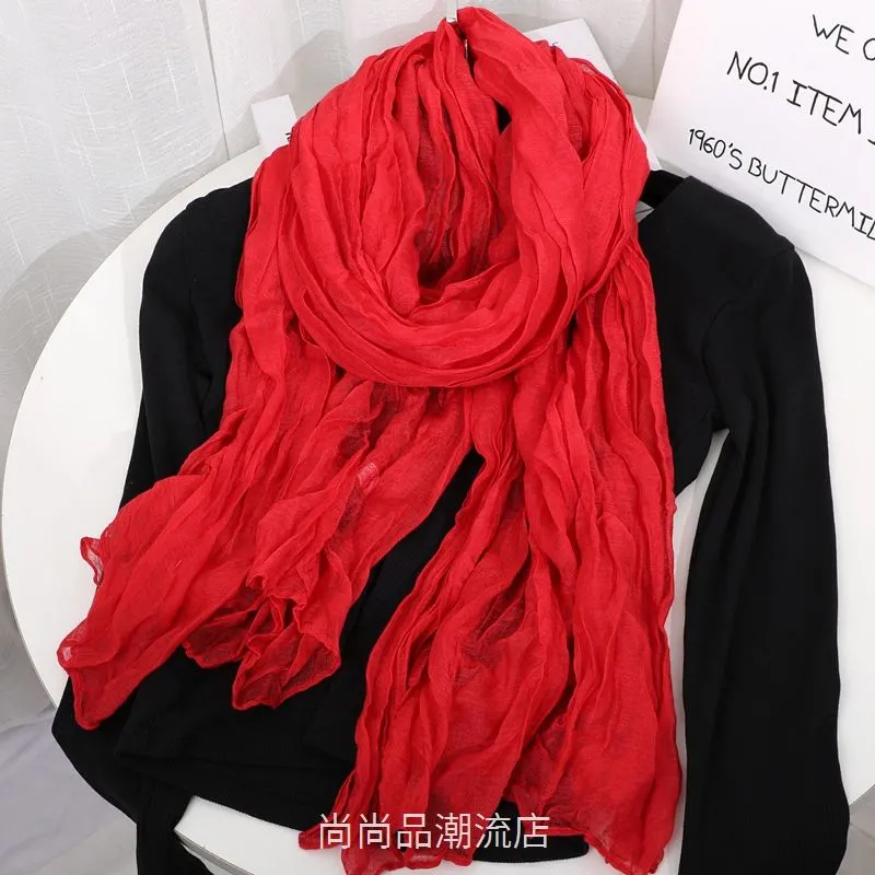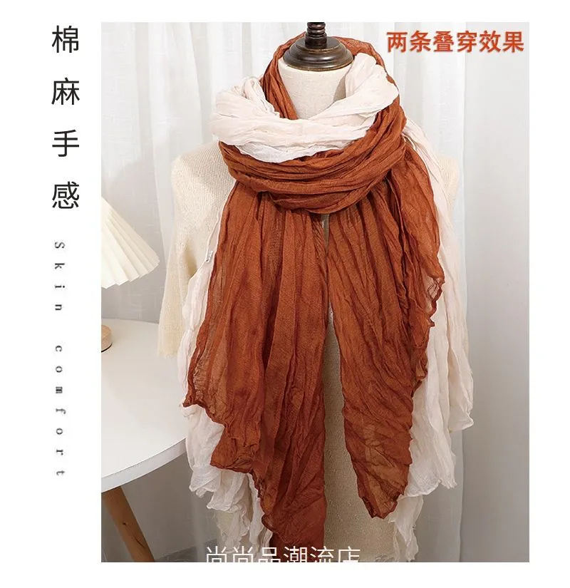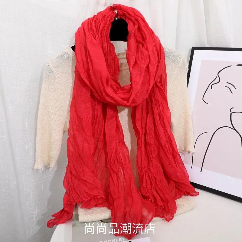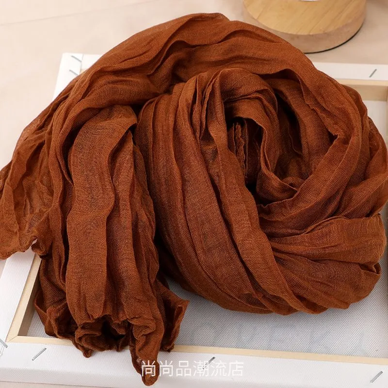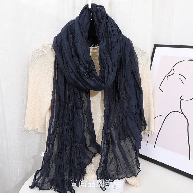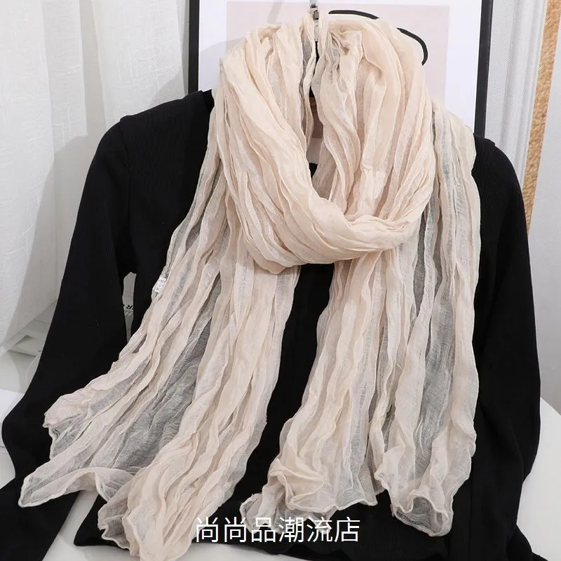 外贸复古秋冬季保暖棉麻围巾女纯色褶皱披肩护颈围脖文艺范丝巾新