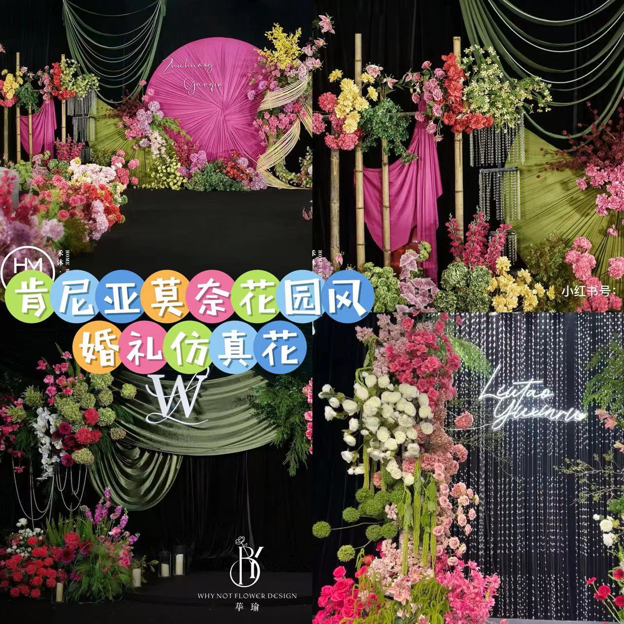 新款肯尼亚莫奈花园风玫红色春季自然风地排花婚庆仿真花材小红书