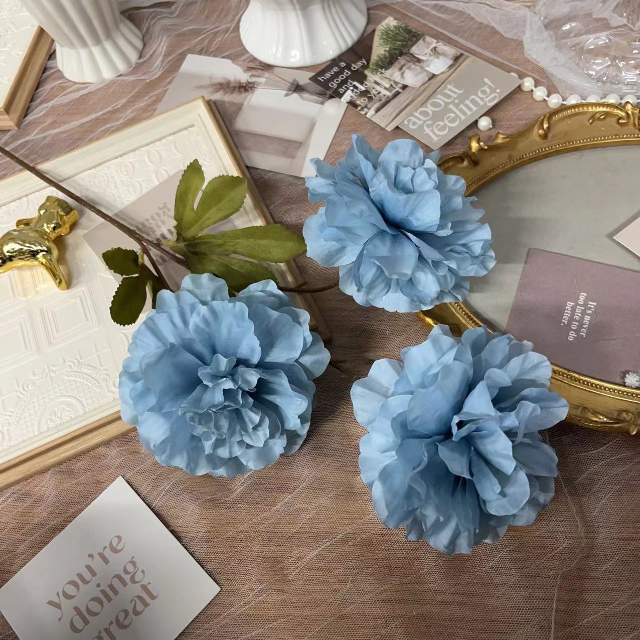 雾霾蓝婚礼仿真花路引花排绣球玫瑰牡丹挑高花吊顶花婚礼堂假花