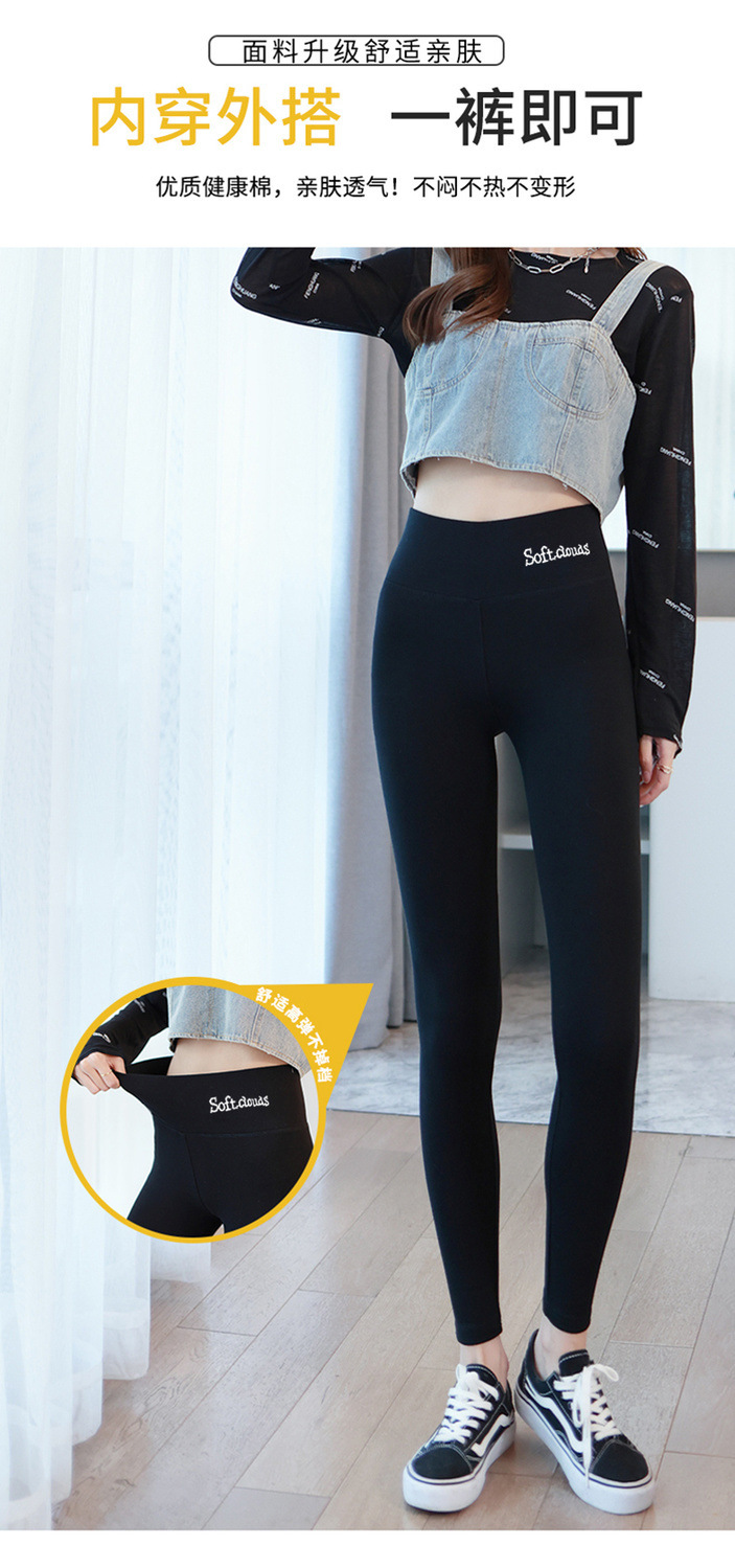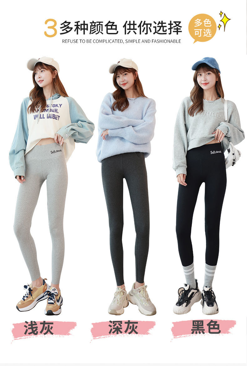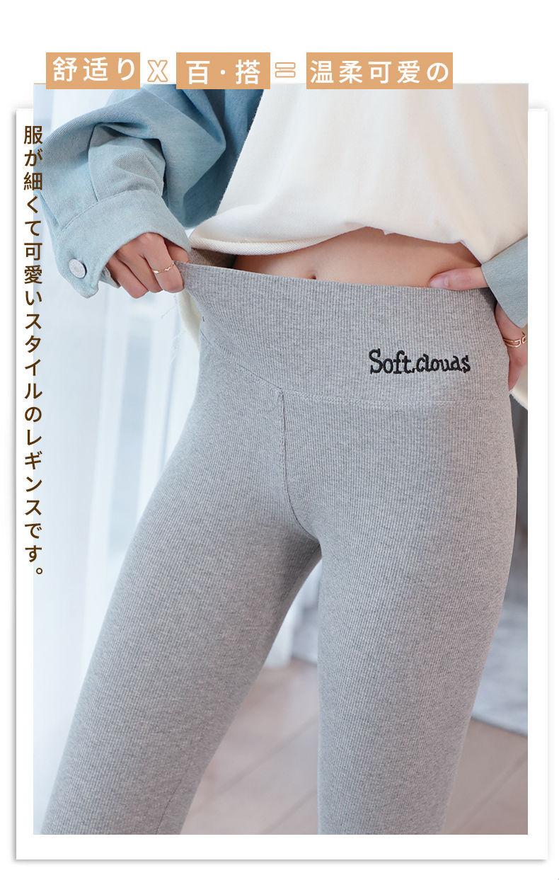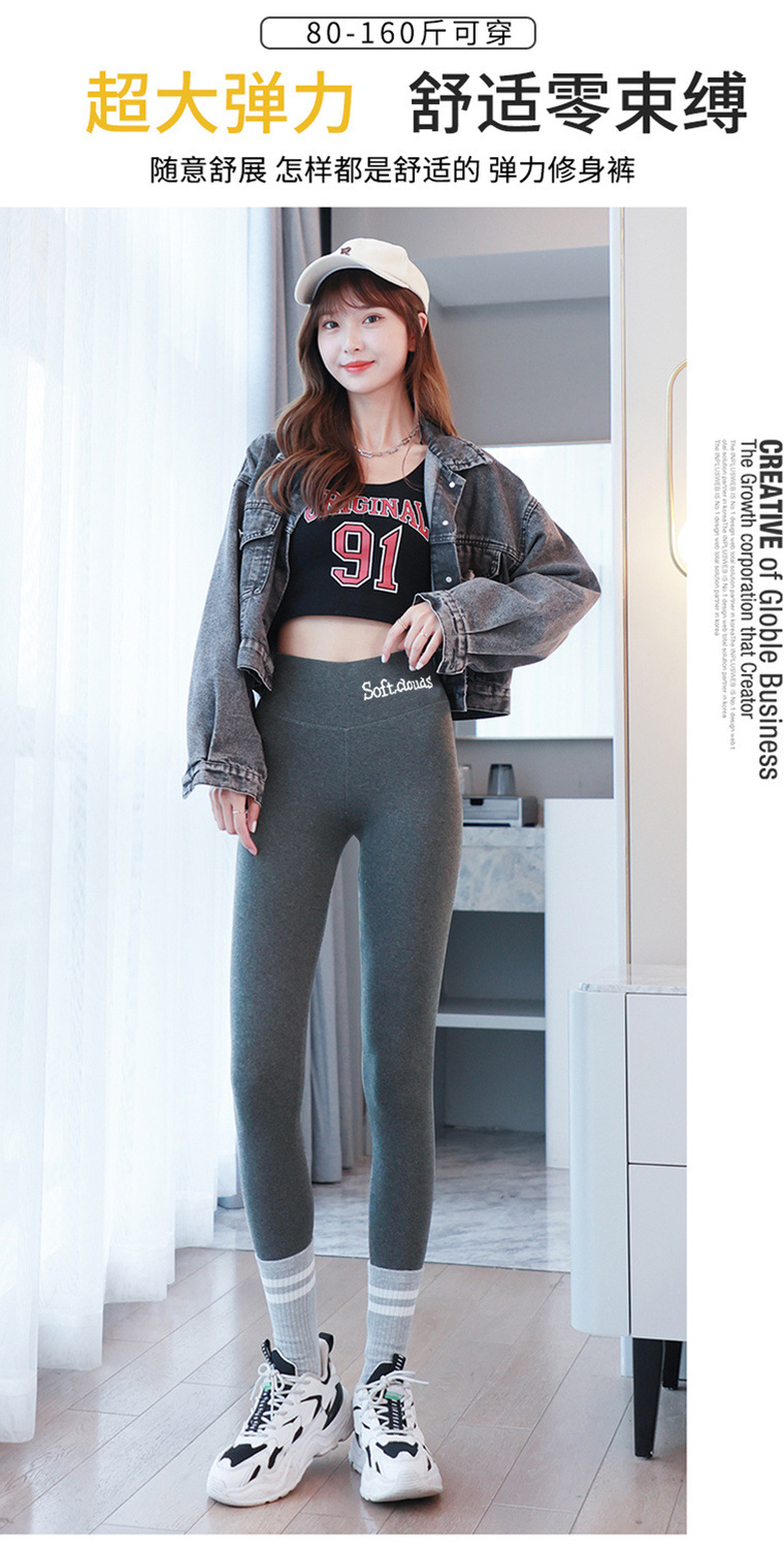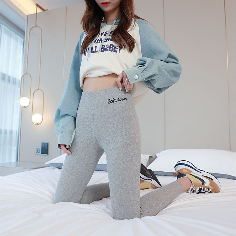 灰色打底裤女外穿春秋薄款螺纹修身显瘦百搭高腰刺绣加大码小脚裤