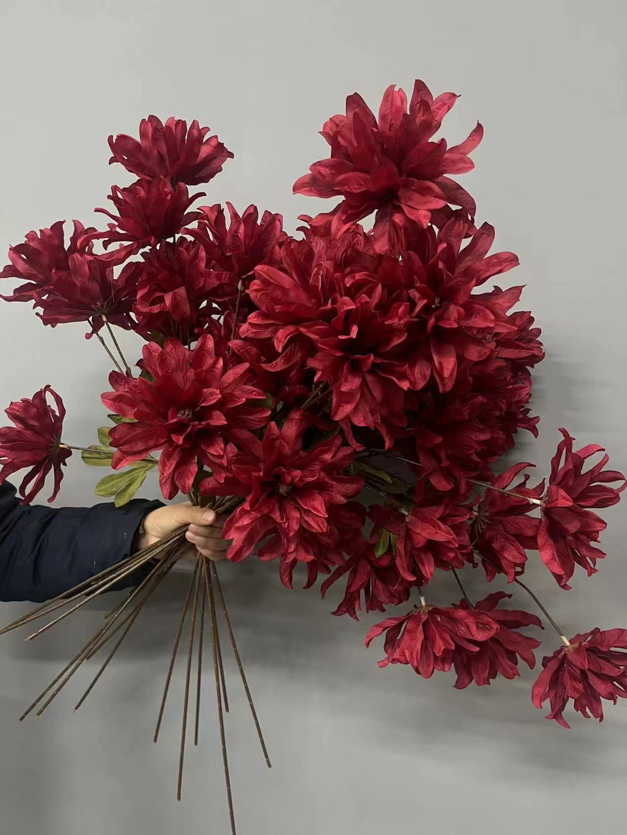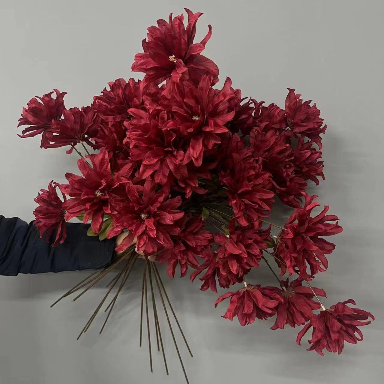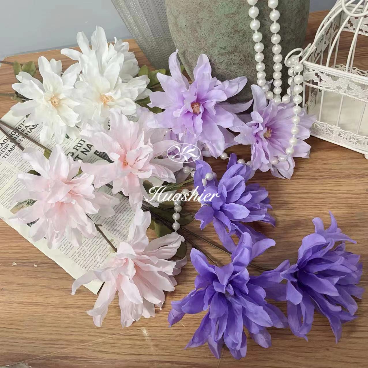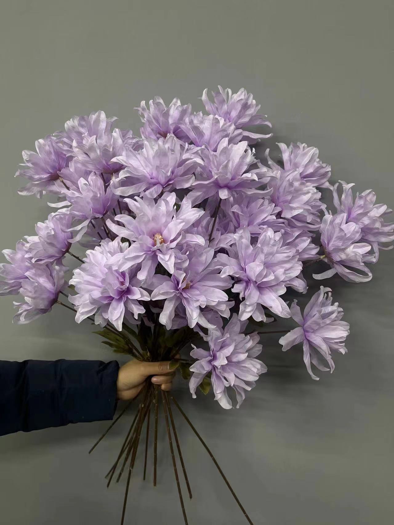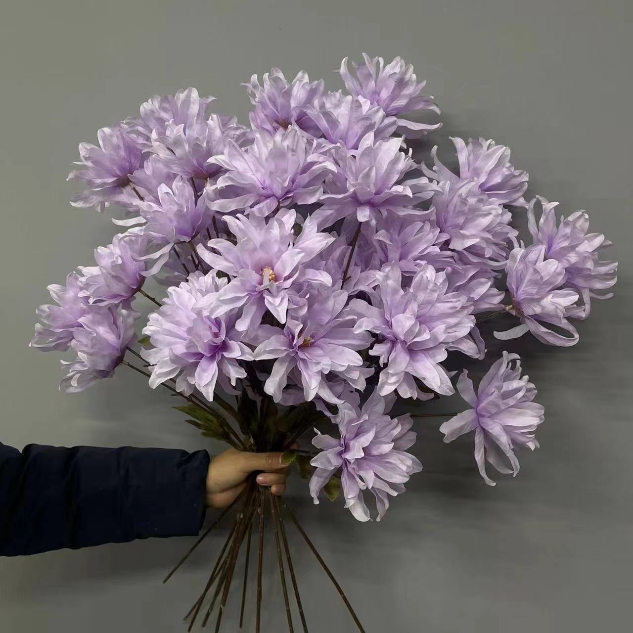 仿真3头挑高婚礼假花绢花蟹爪花深紫色浅紫色婚礼堂路引花材婚庆