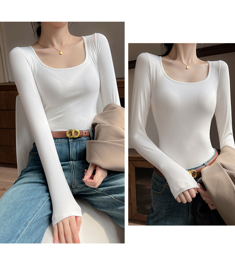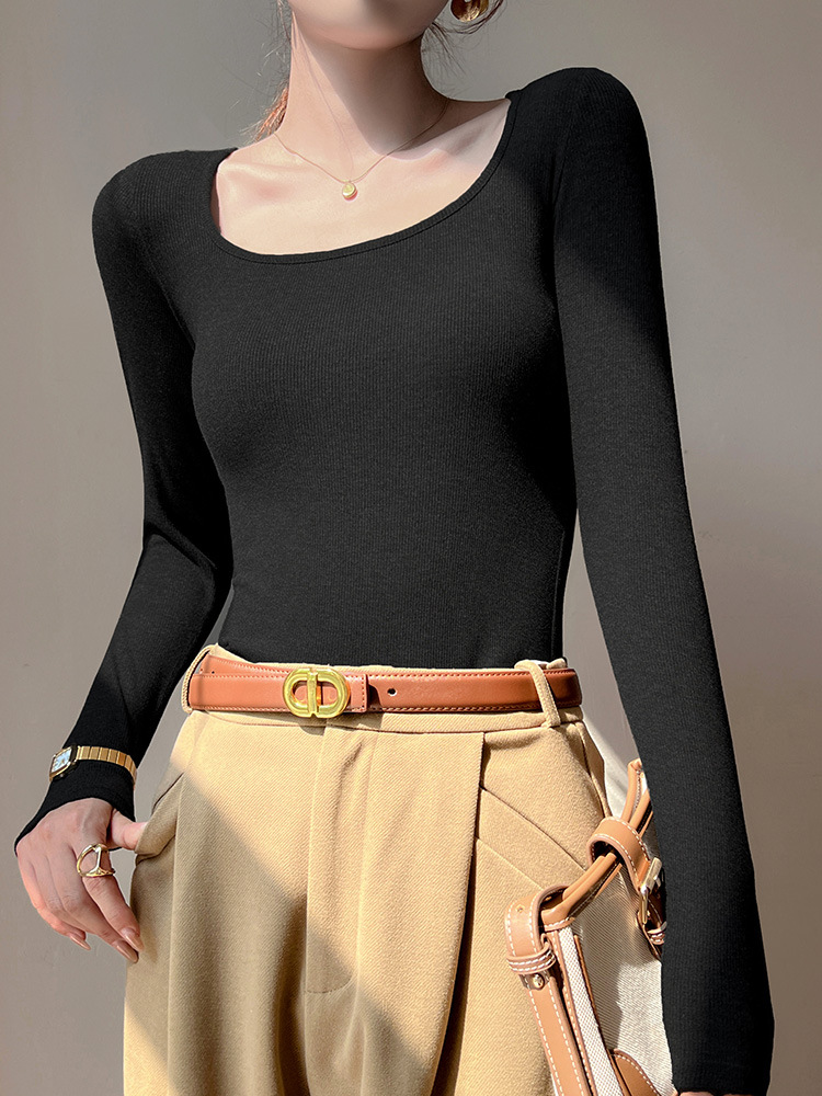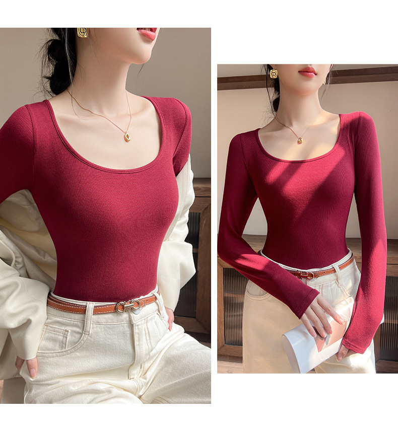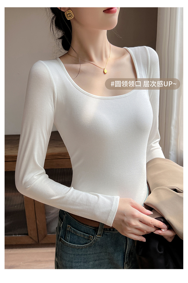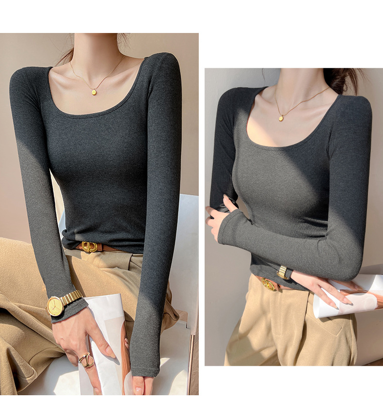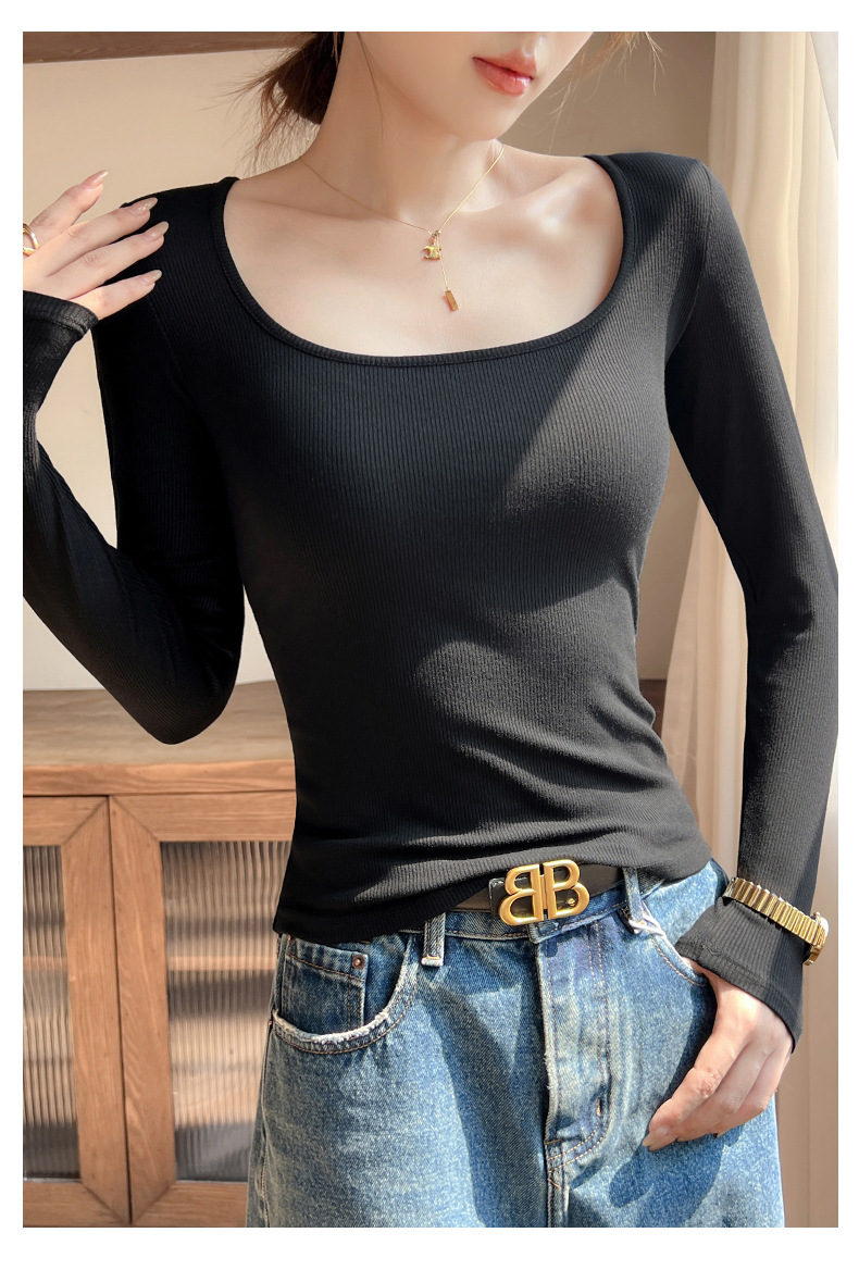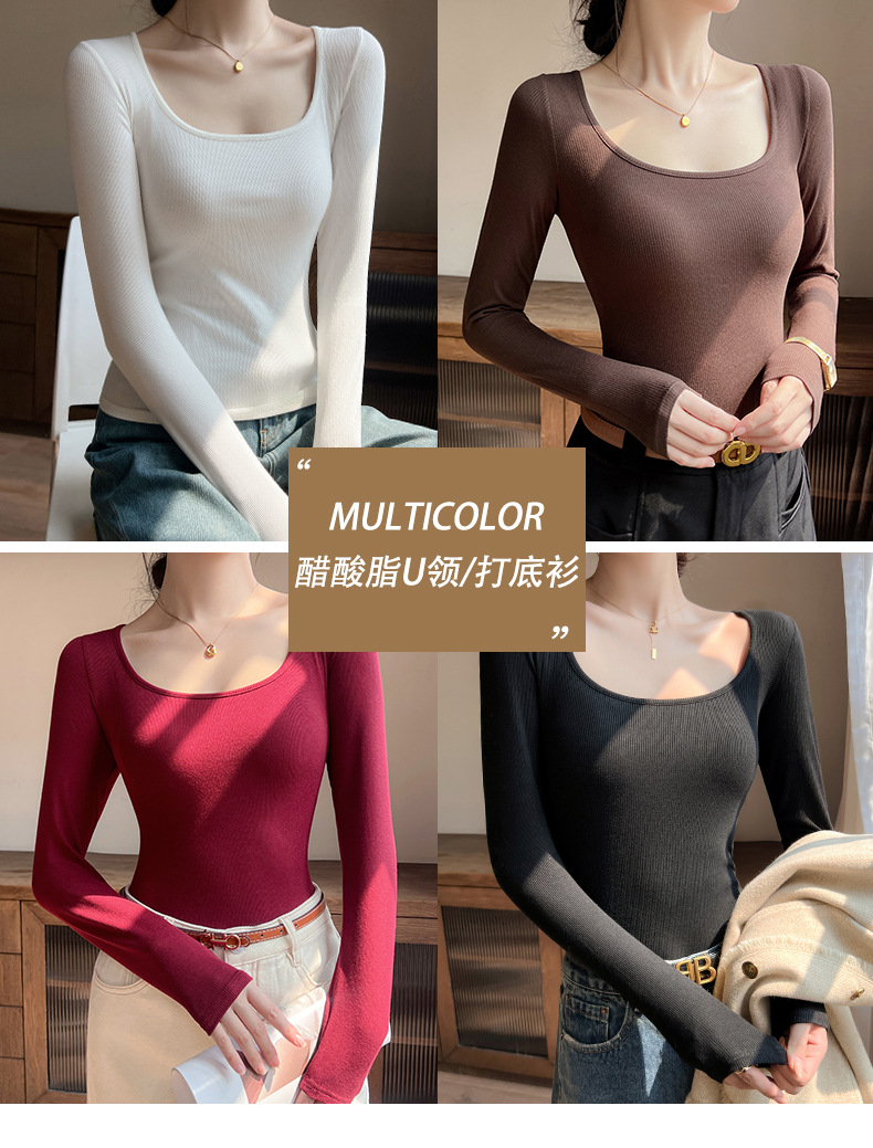 工厂25新款醋酸酯大U领正肩长袖修身百搭打底衫女可外穿秋冬上衣
