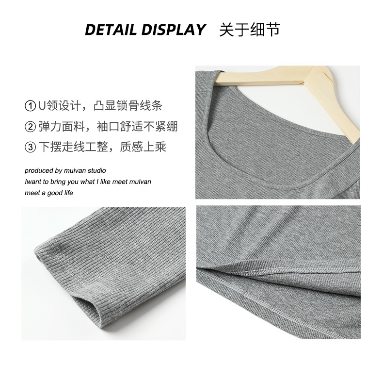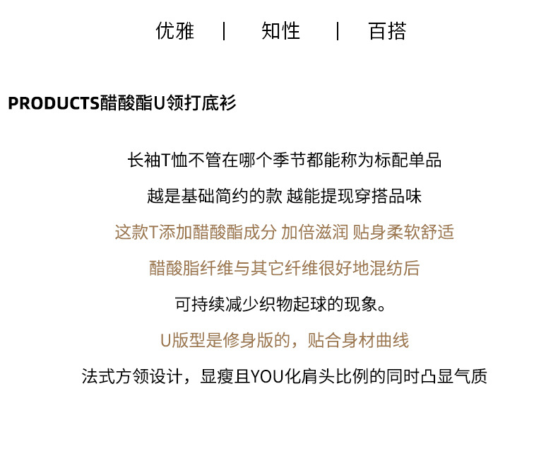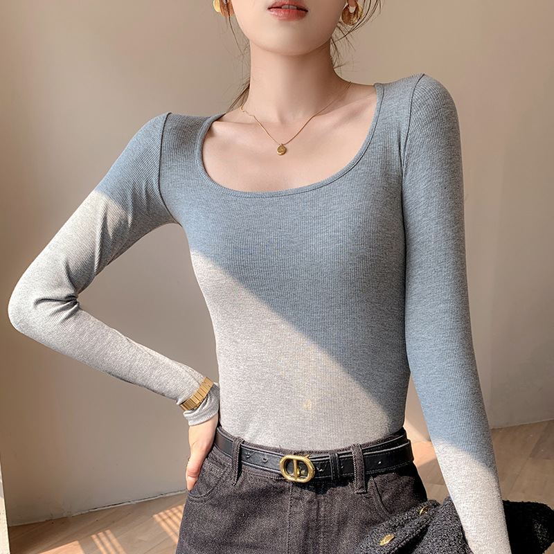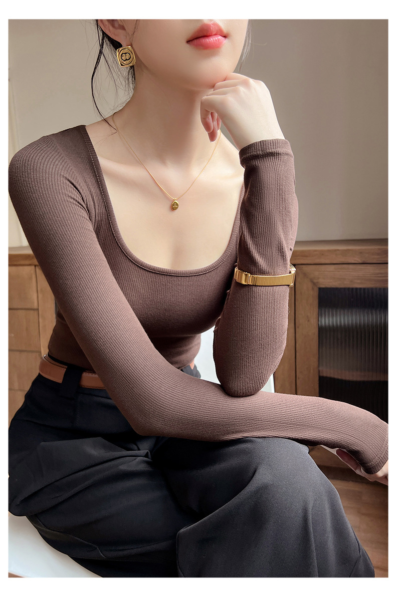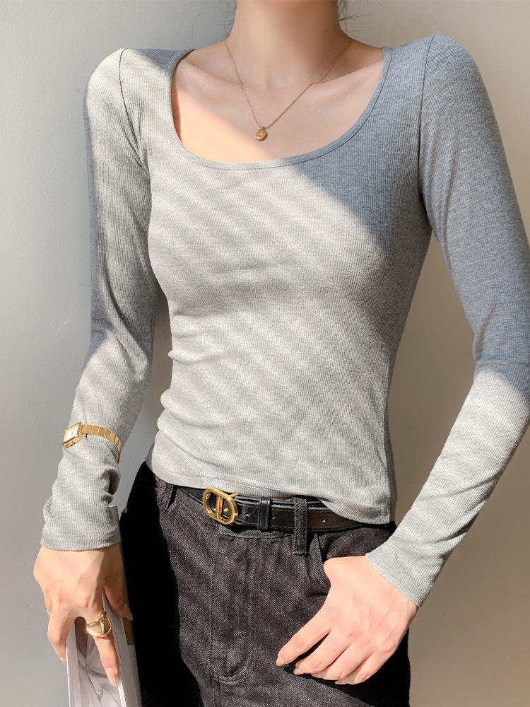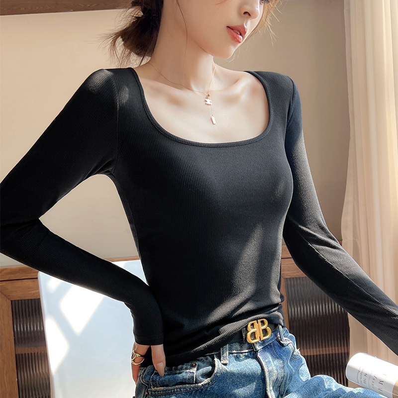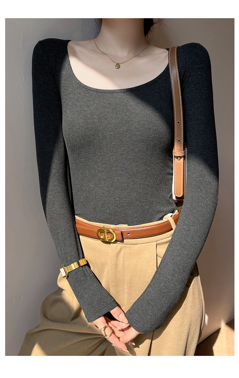 工厂25新款醋酸酯大U领正肩长袖修身百搭打底衫女可外穿秋冬上衣