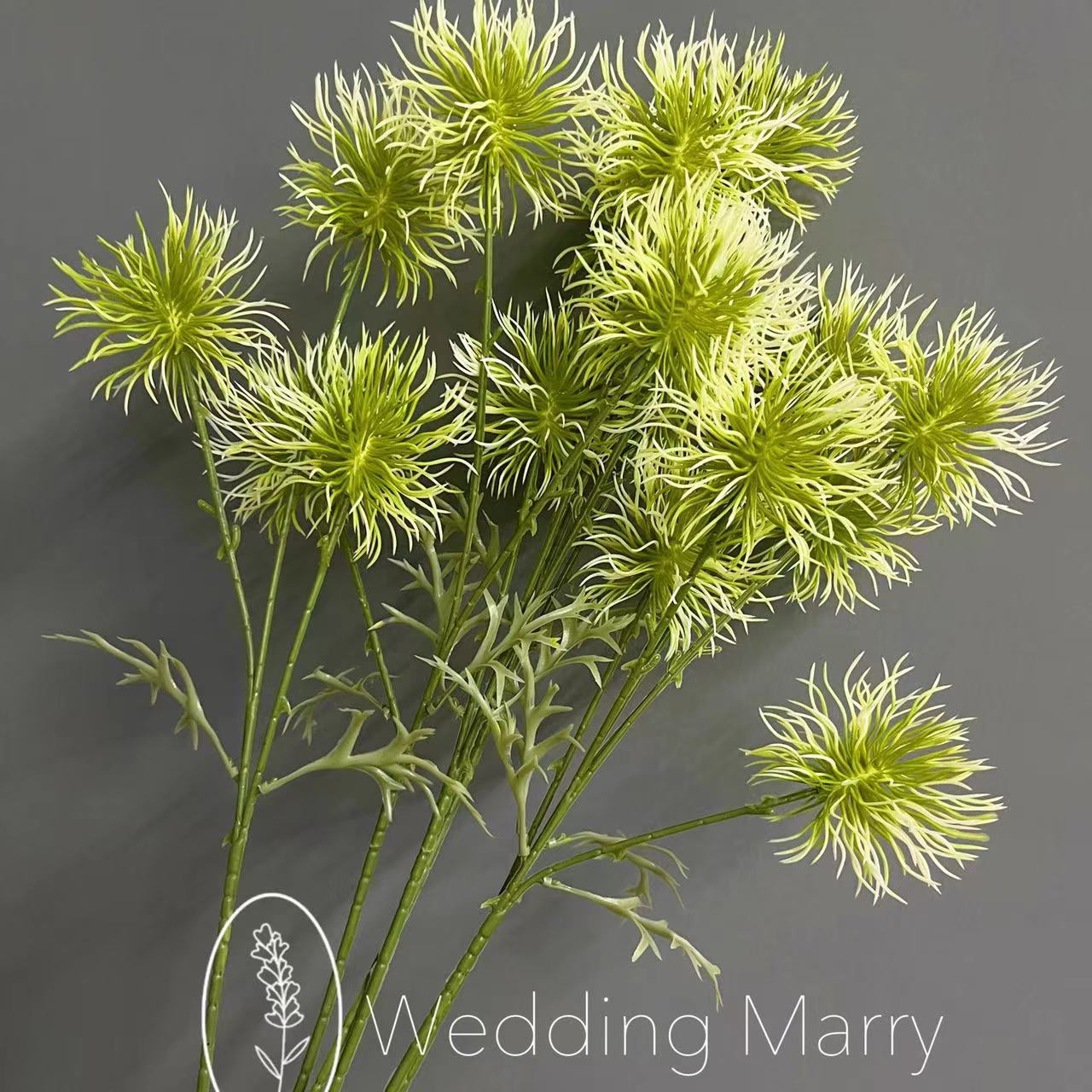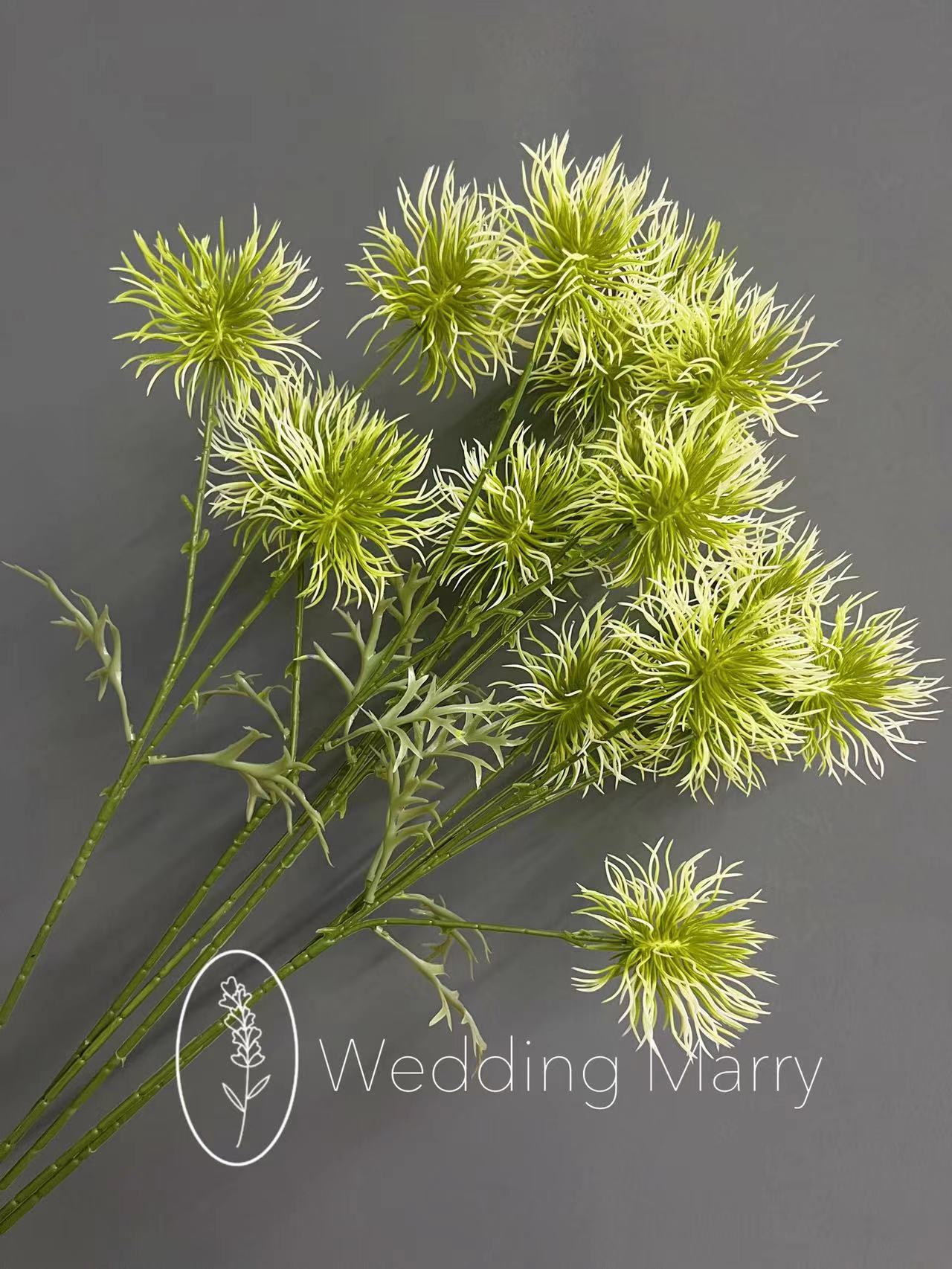 韩式仿真花材绿色海胆花蒲公英针垫花刺球仿真花白绿色婚礼蟹爪菊
