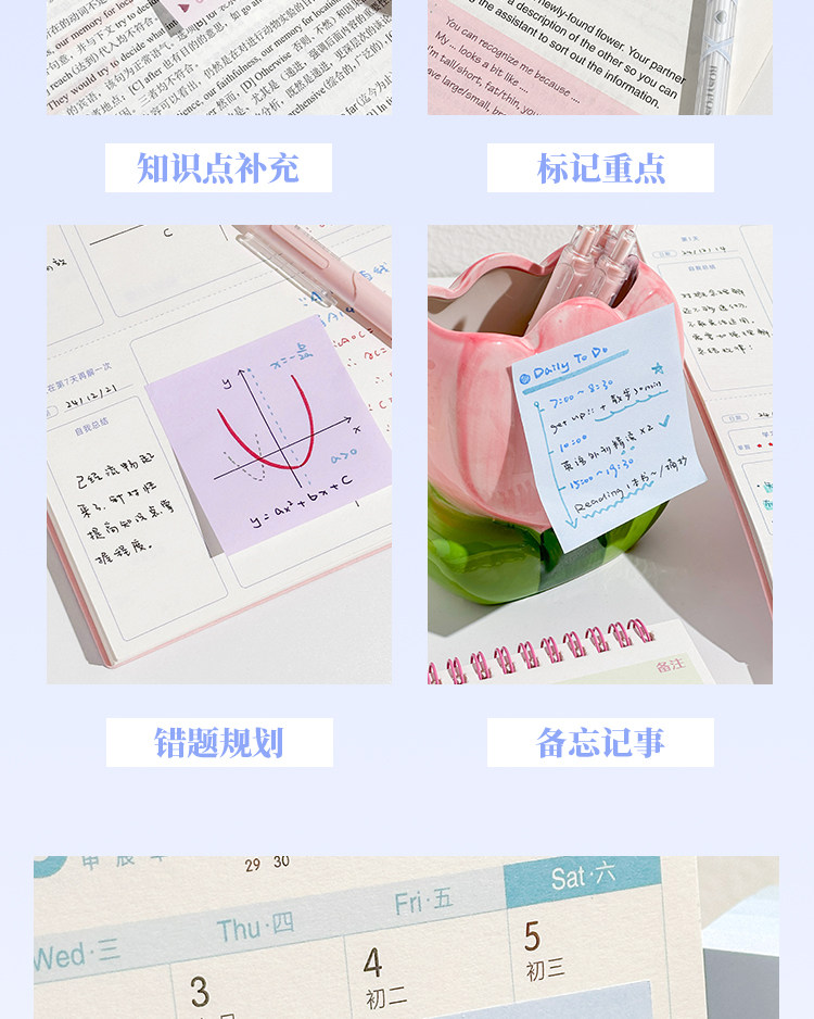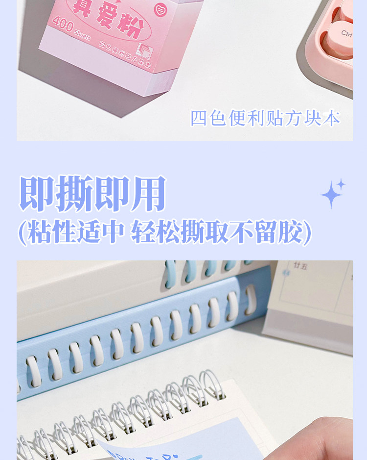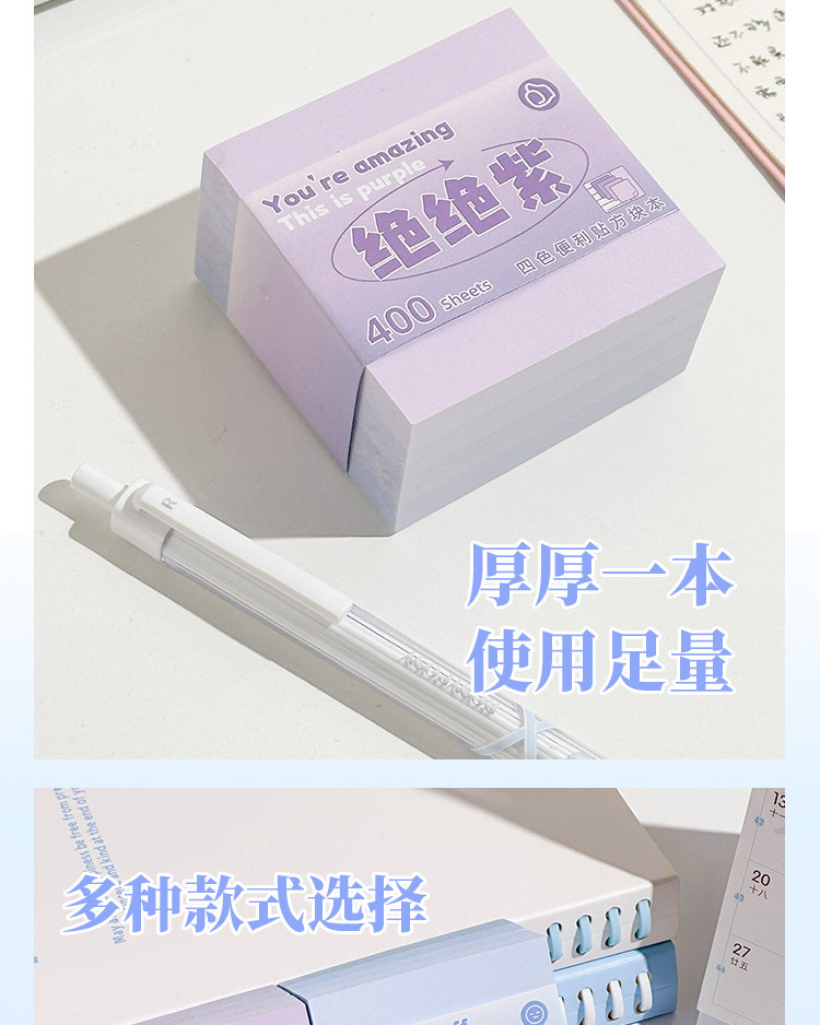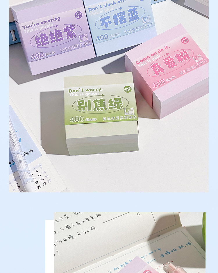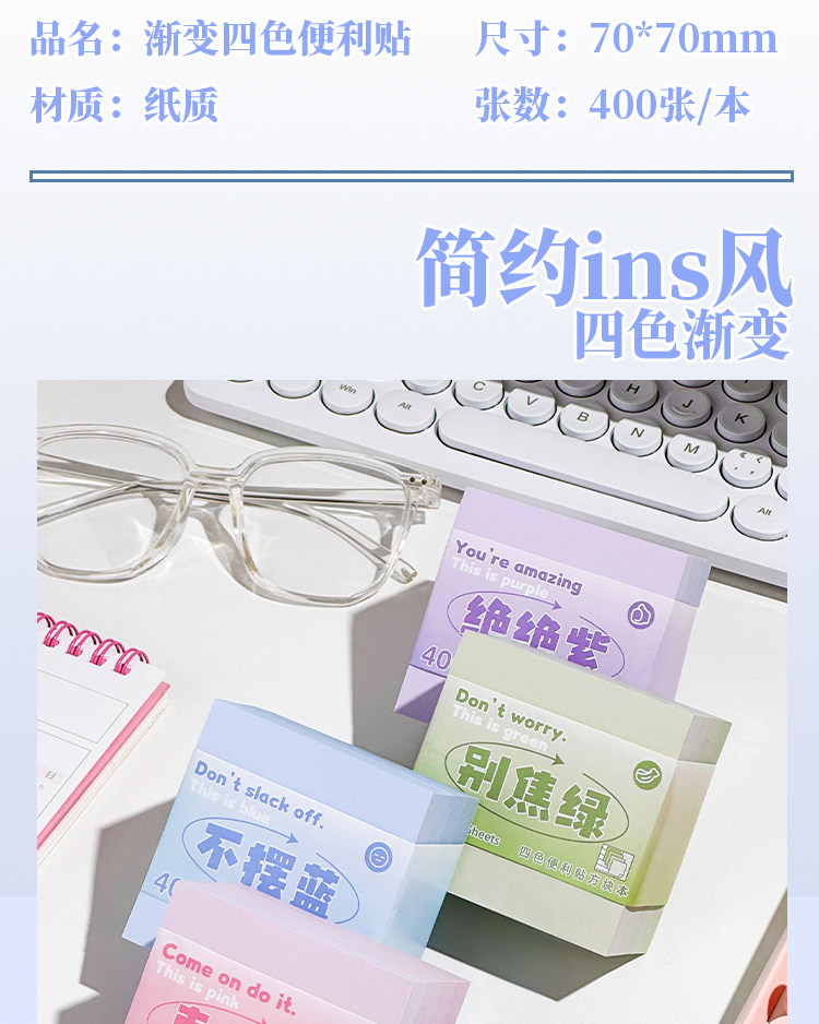 渐变四色便利贴学生用 N次贴高颜值粘性可撕便签本办公备忘录批发