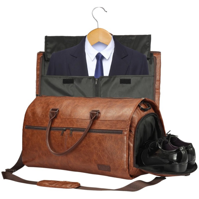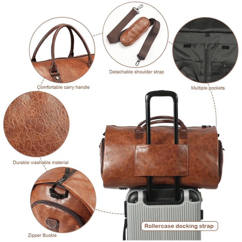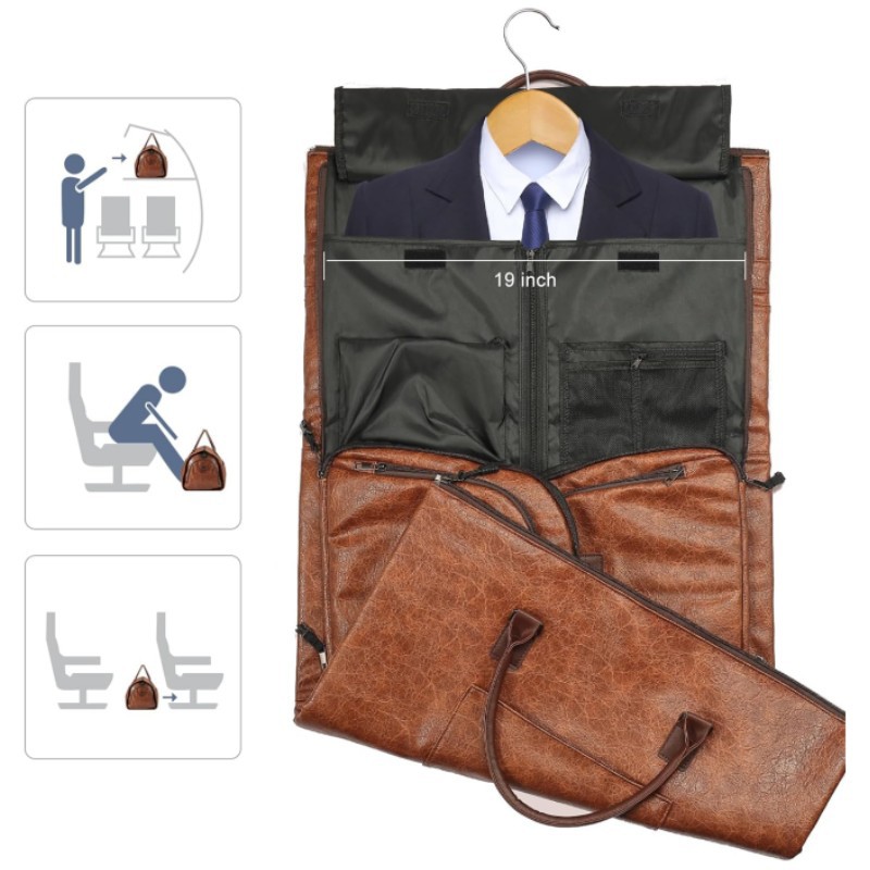 亚马逊新款可转换服装包皮革随身旅行行李袋男女士2合1悬挂西装包