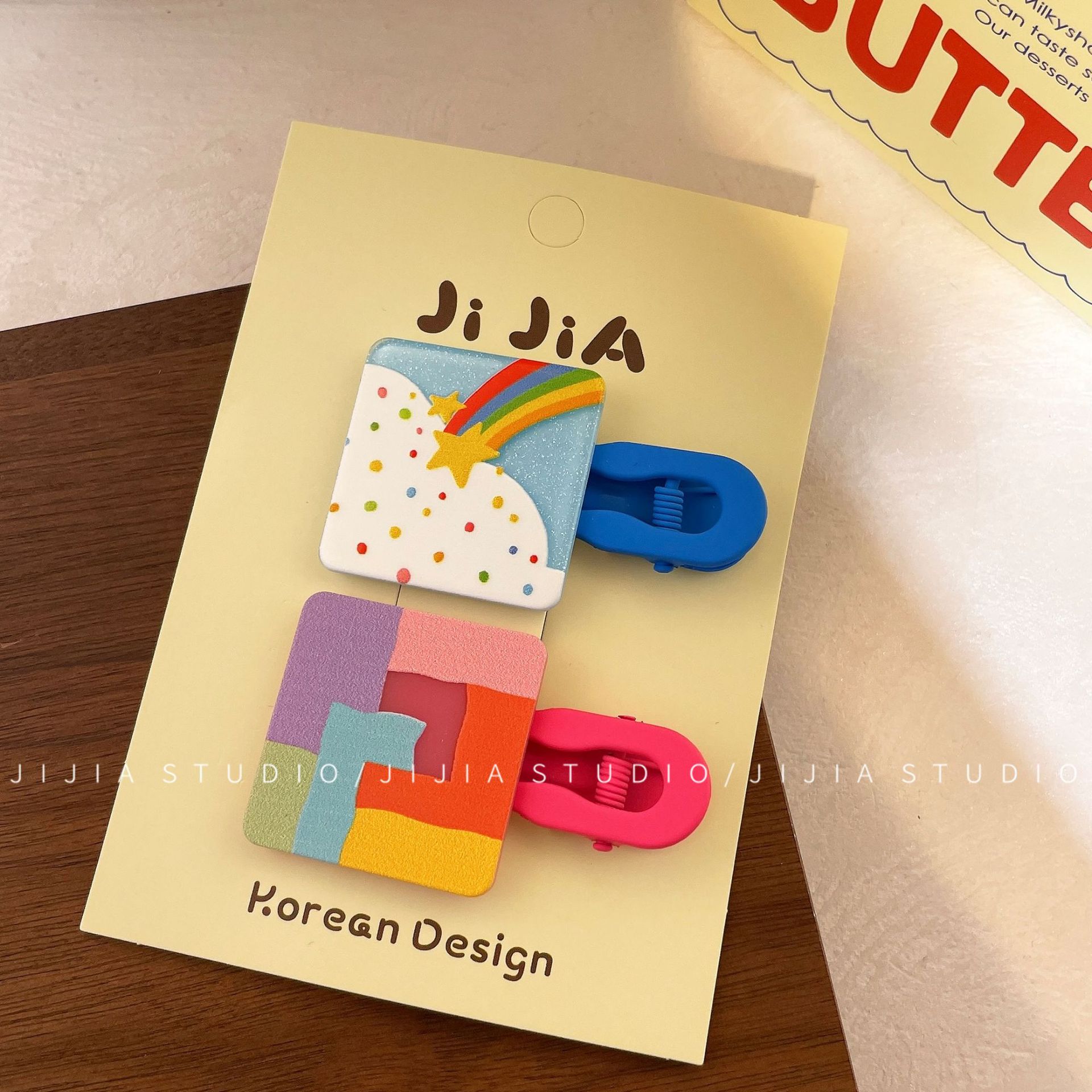 韩国几何彩色发夹儿童涂鸦画板发卡小女孩卡通兔子可爱一字夹发饰