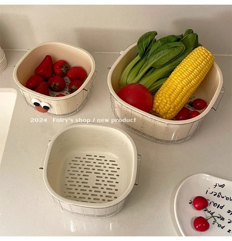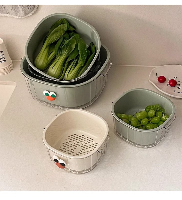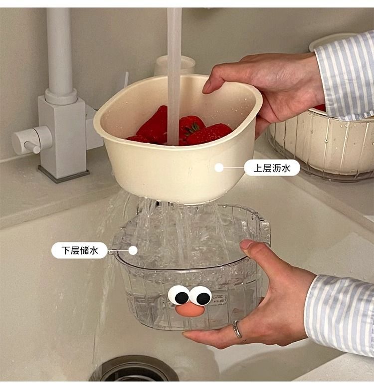 洗菜盆沥水篮多功能厨房双层新款水果盘客厅滤菜篓淘洗菜篮子家用