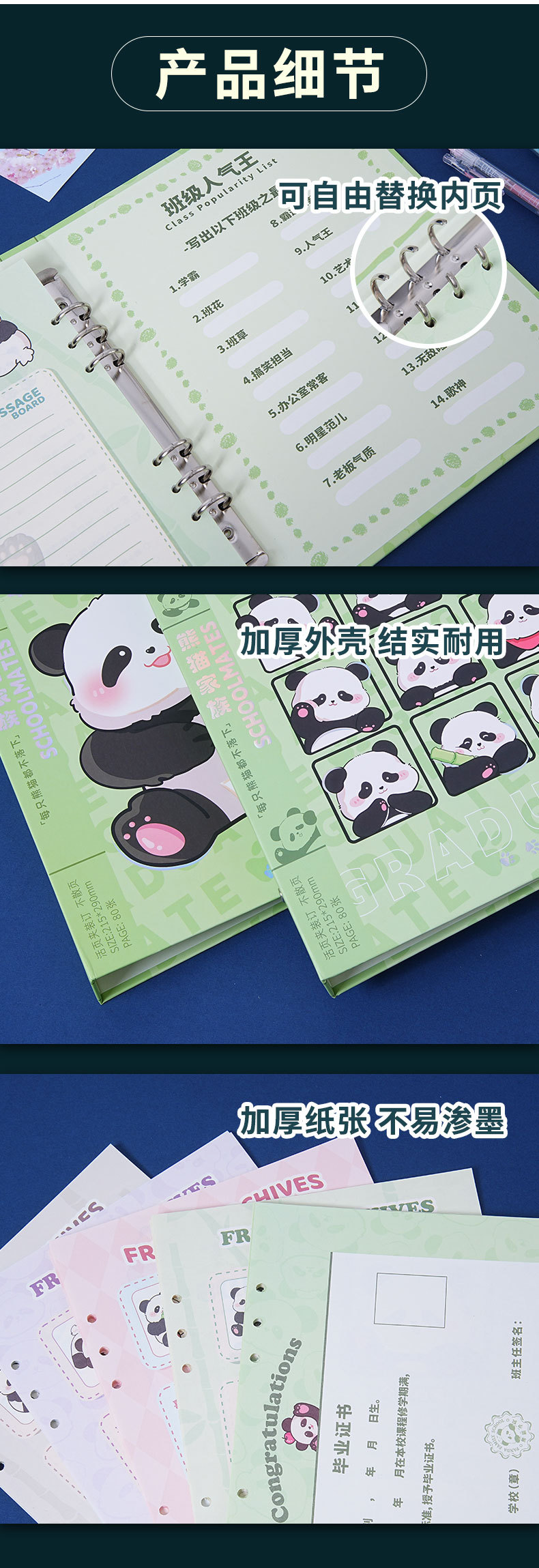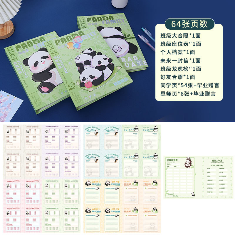 新款国风熊猫同学录定制高颜值毕业纪念册留言本批发学生通讯录