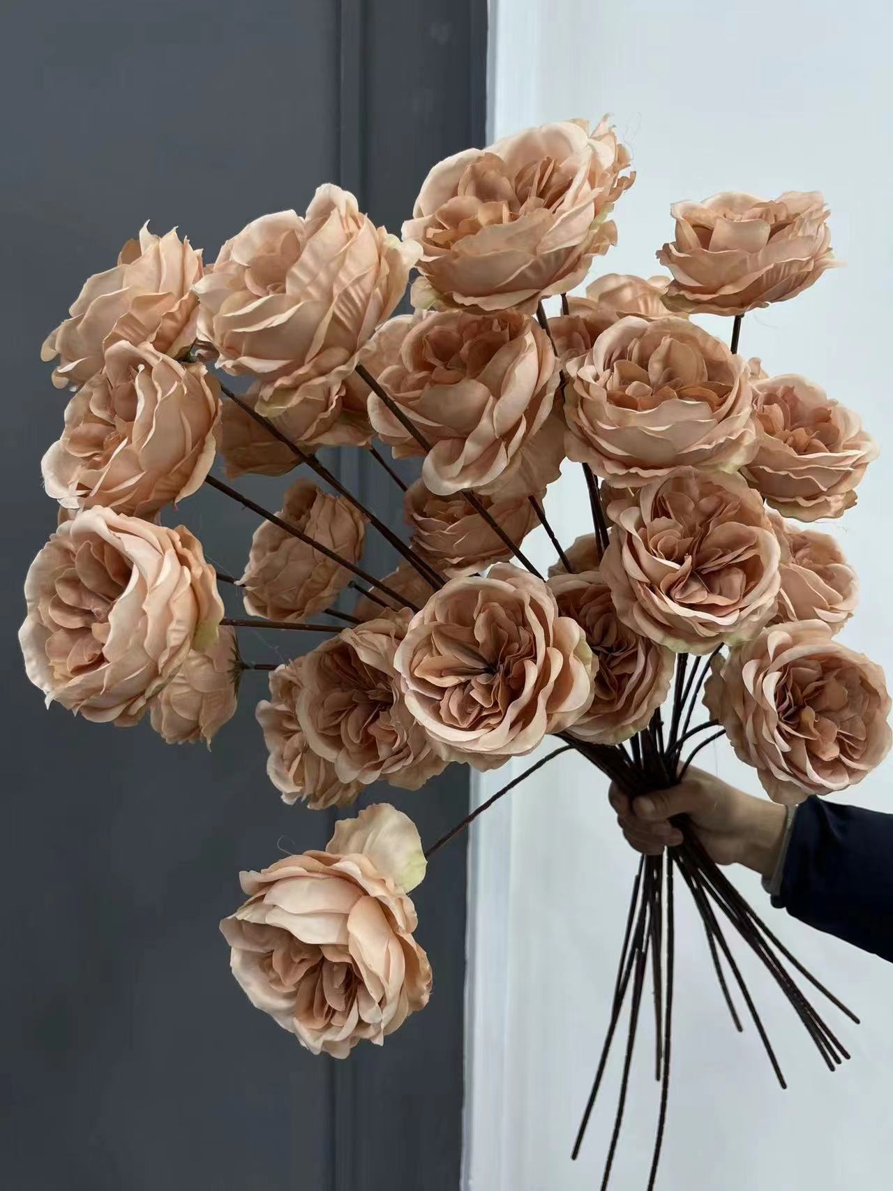 奥斯汀牡丹芍药3头仿真花婚礼堂软装挑高插花路引装饰酒店背景花