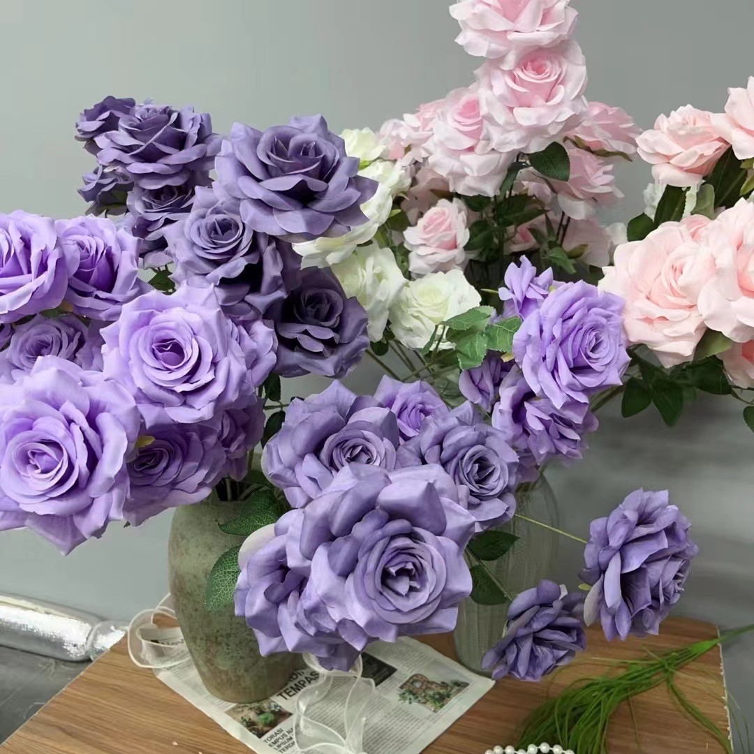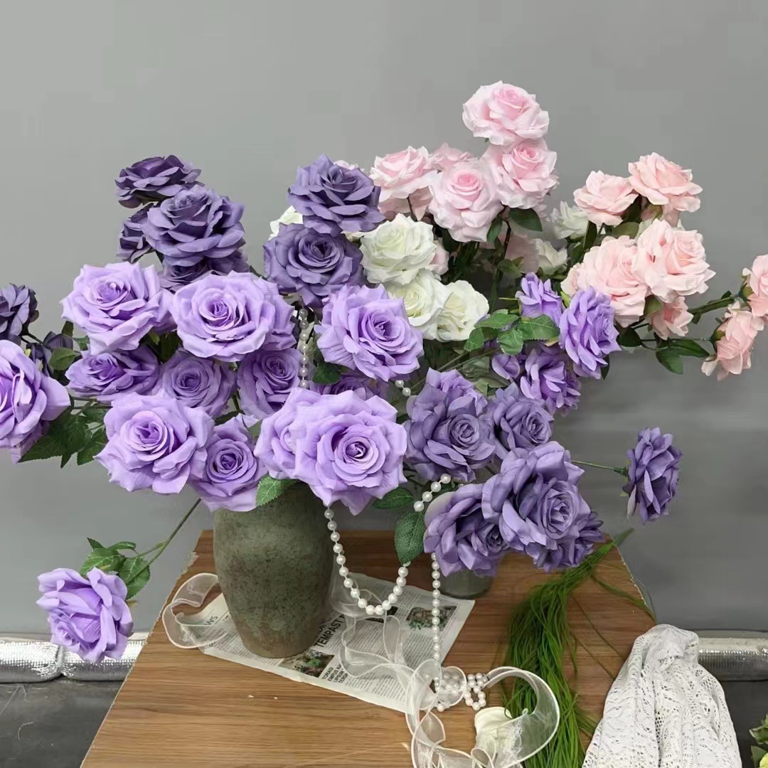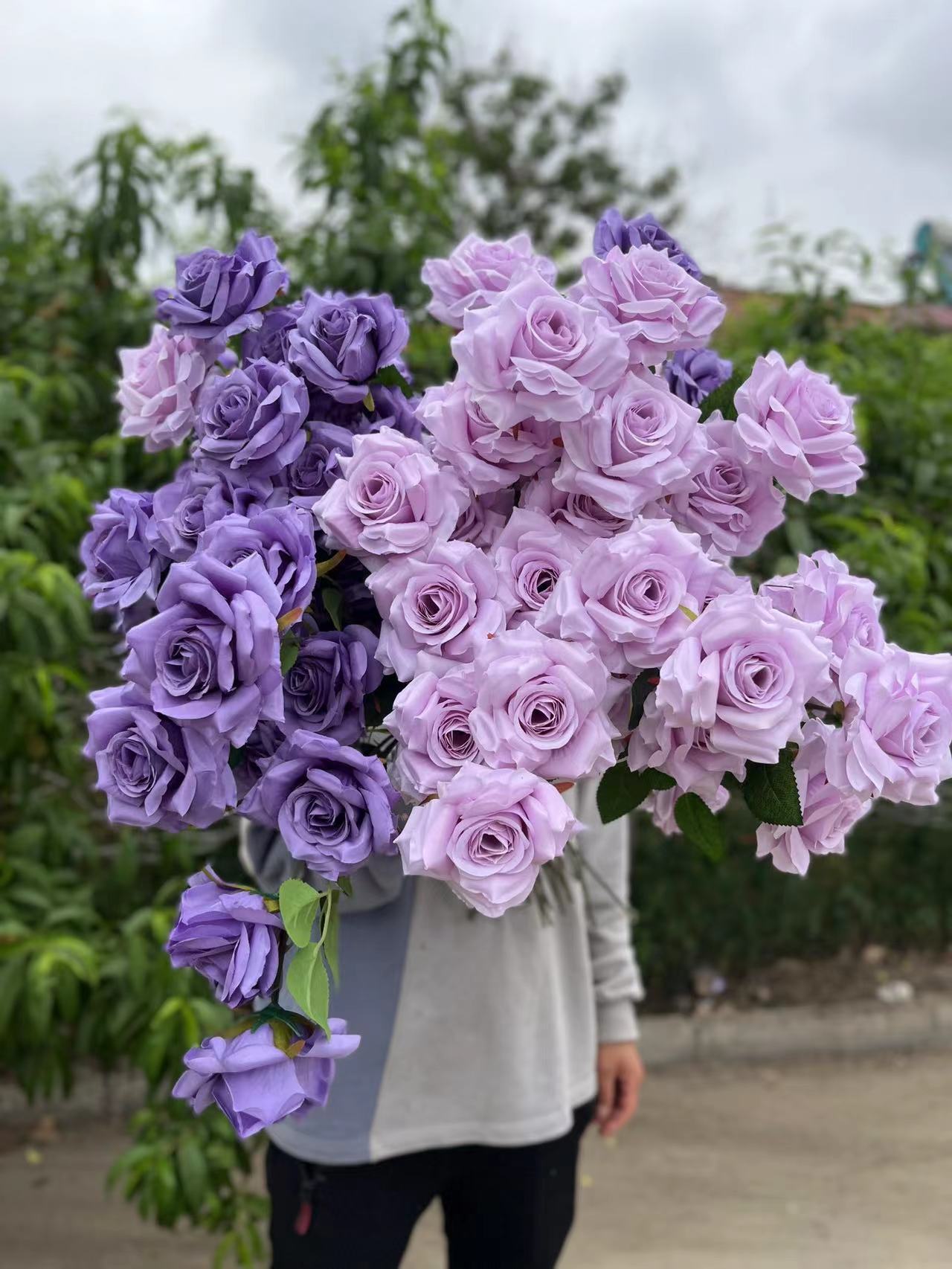 多头玫瑰仿真玫瑰挑高玫瑰紫色玫瑰花深浅紫色新款插花绢布假花