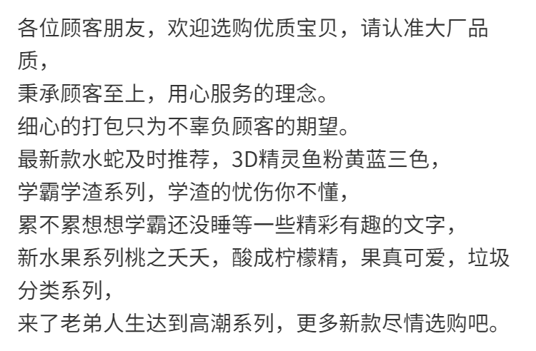 | large size-shouldn't have been sold at the beginning(大号-当初就不该下凡) | USD $1.38 | 999999 piece available |
