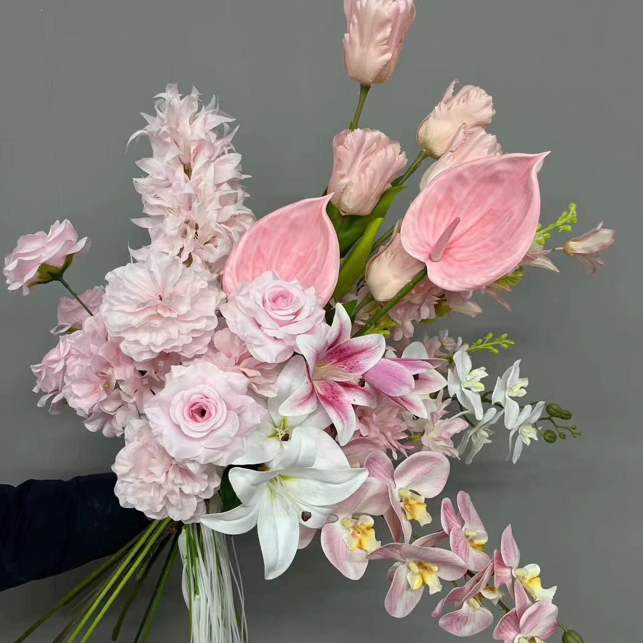 粉色系婚庆仿真蝴蝶兰玫瑰假花婚房布置婚礼排花装饰背景花材绢花