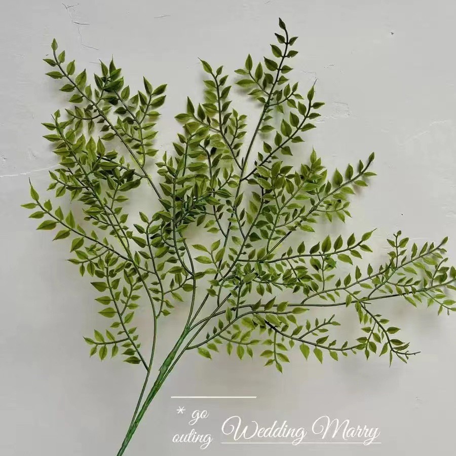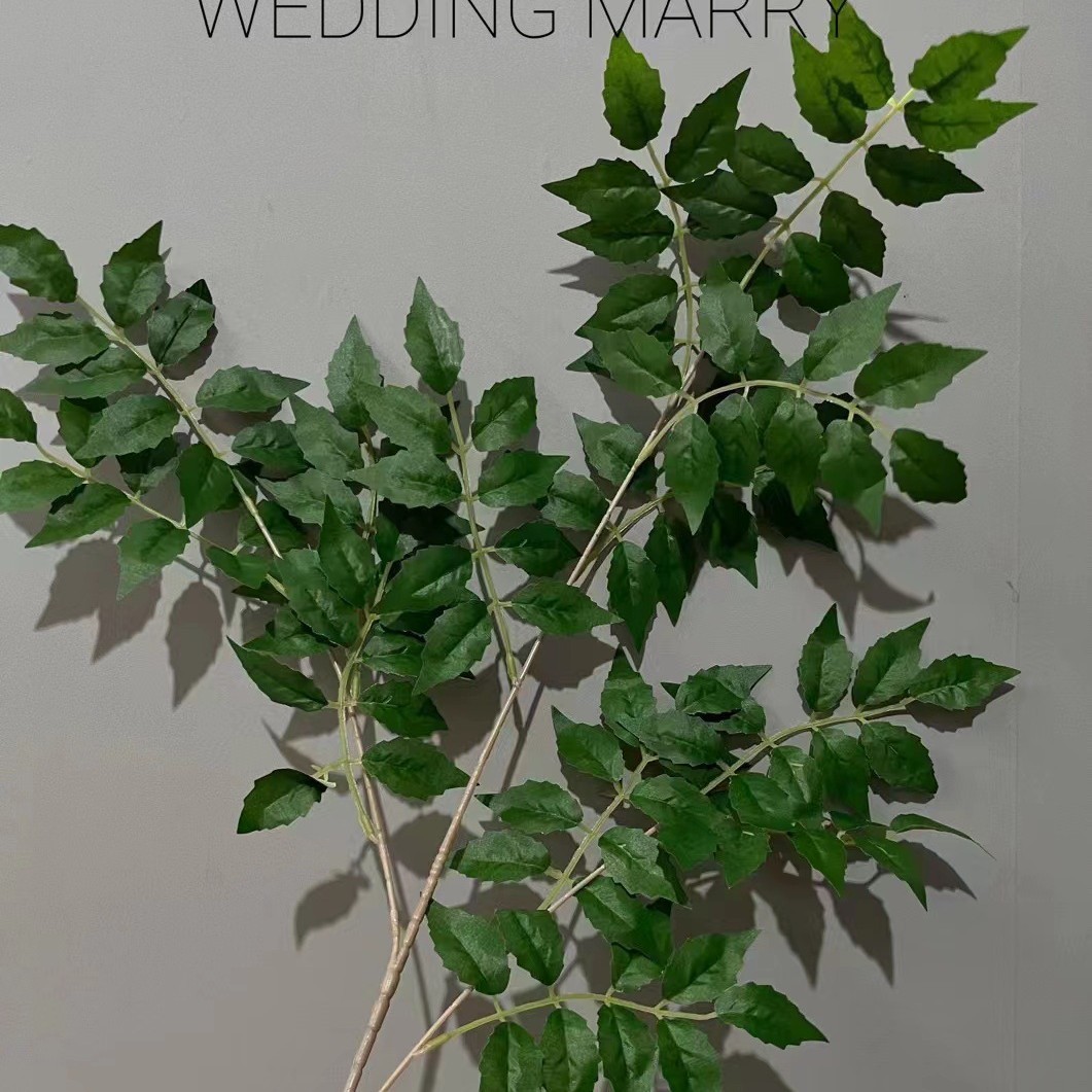 婚礼花艺绿色叶子森系婚礼堂布置叶材小清新插花路引地排挑高吊顶