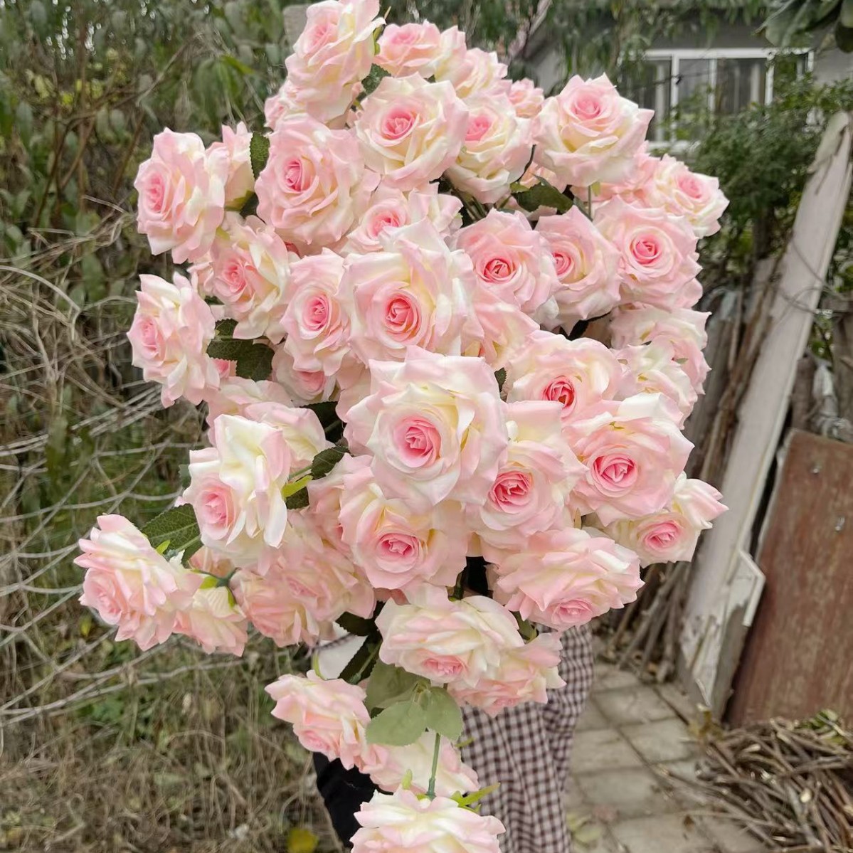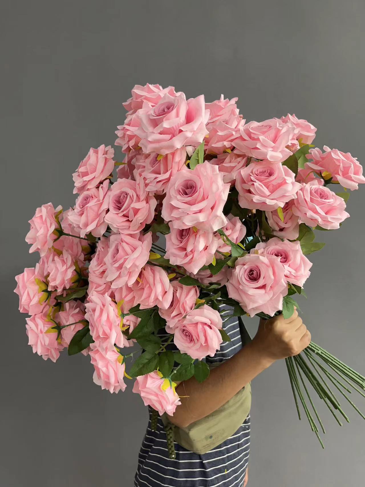 仿真玫瑰花裸粉色玫瑰溏心玫瑰钻石玫瑰粉色婚礼路引装饰假花插花