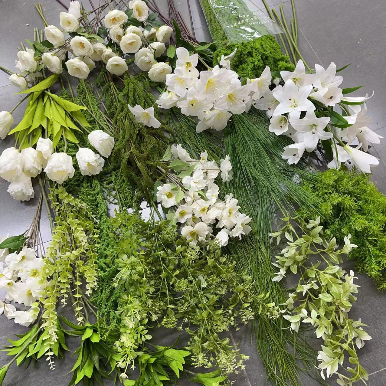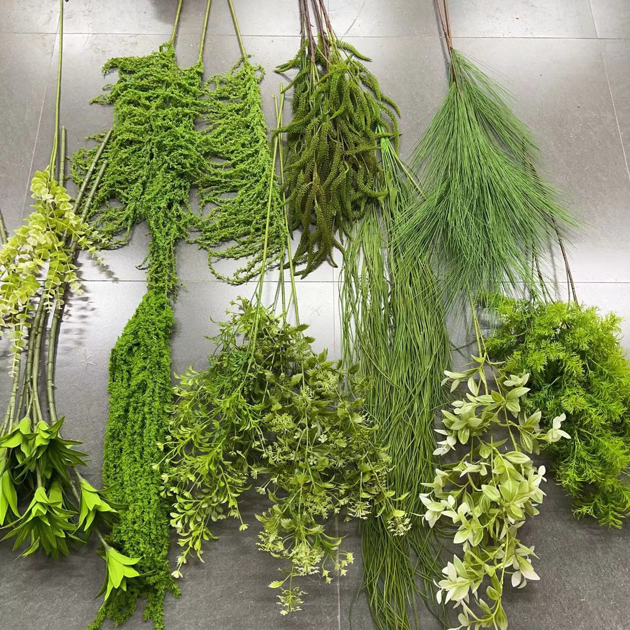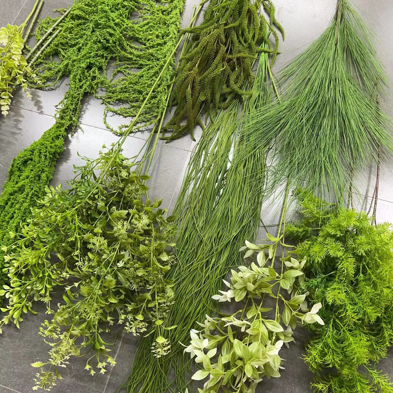 新款婚礼仿真绿植叶材绿色浅绿色果绿色 嫩绿色挑高叶花排婚礼堂