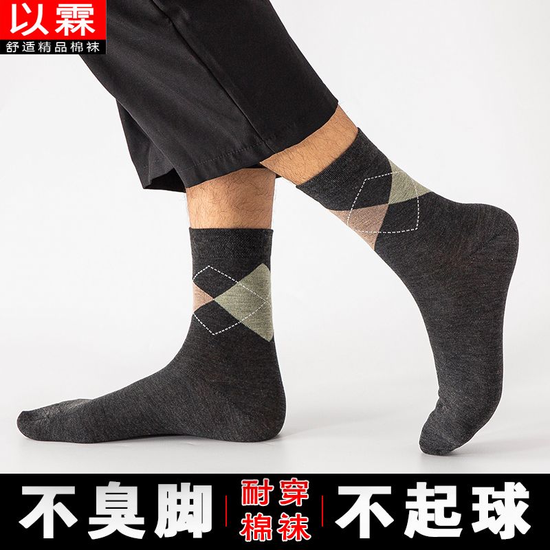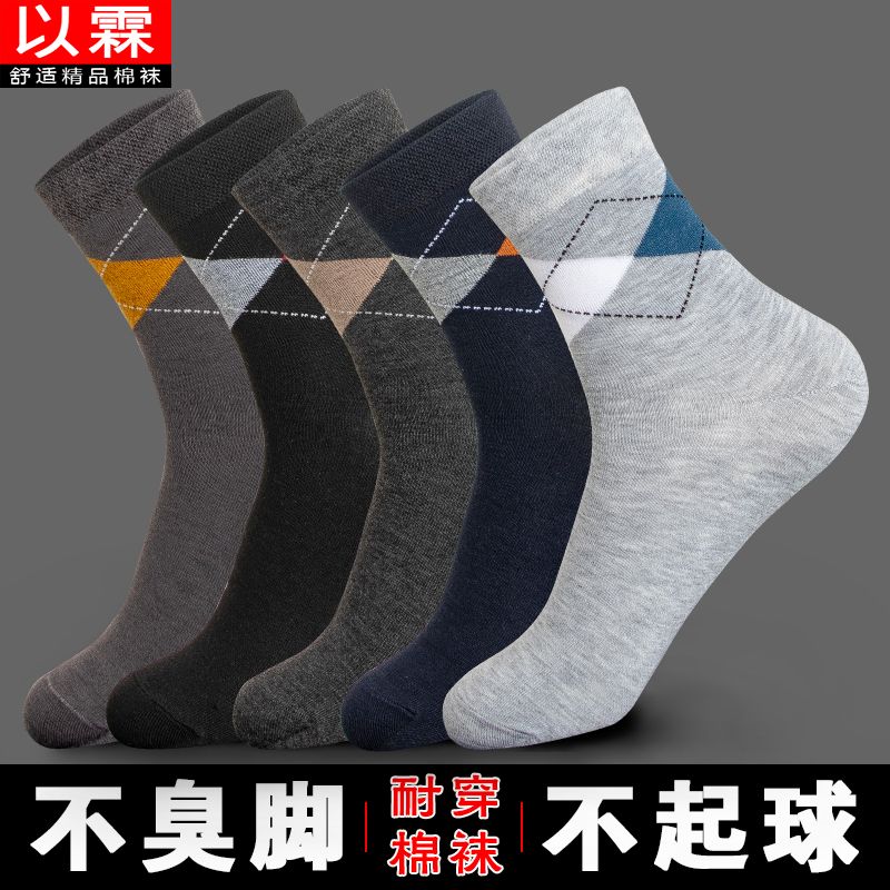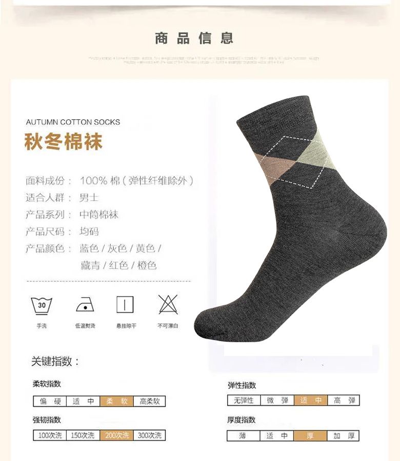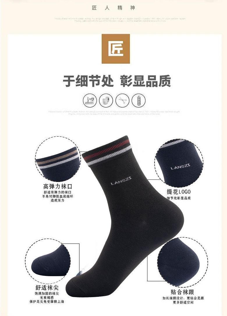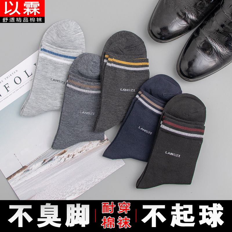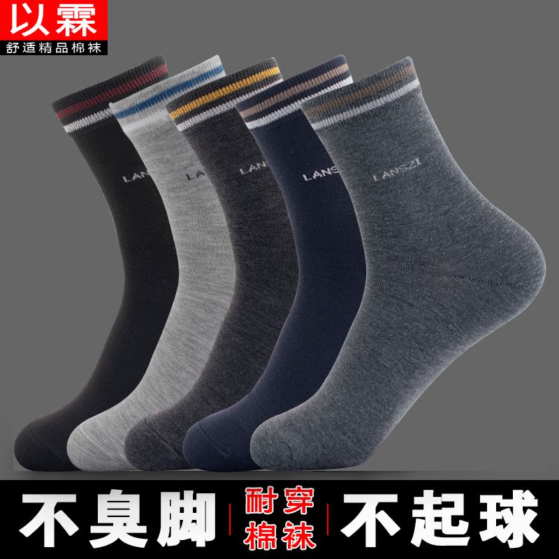 男士袜子秋冬季厚款长筒保暖100全棉防臭袜中筒男款高档商务休闲