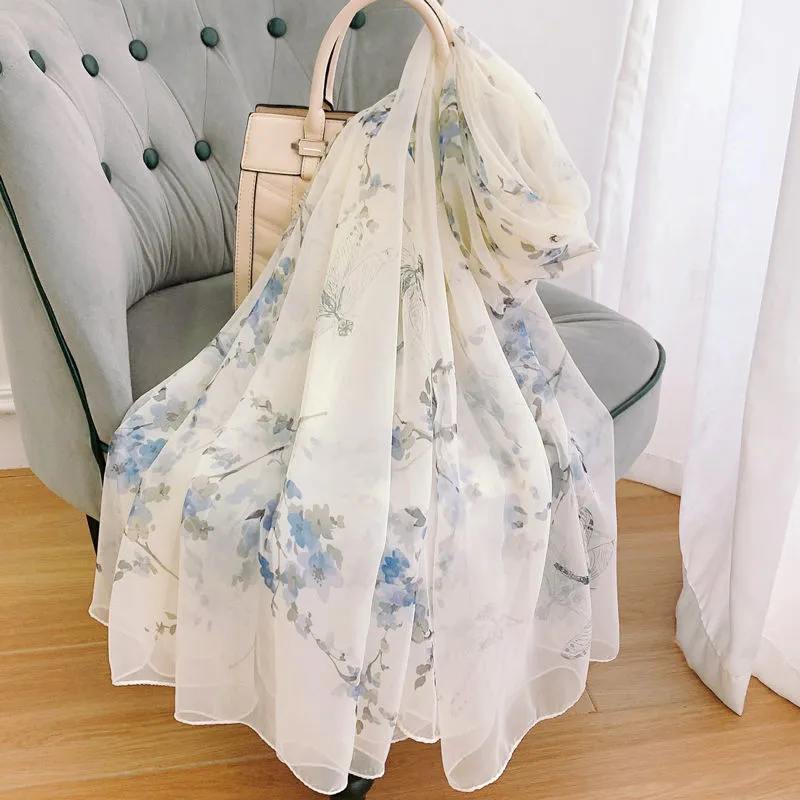 | 蓝梅花蜻蜓米色大丝巾 | USD $3.85 | 999999 piece available |