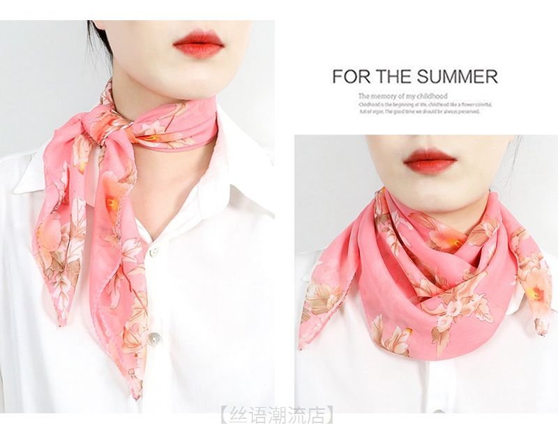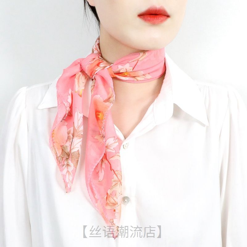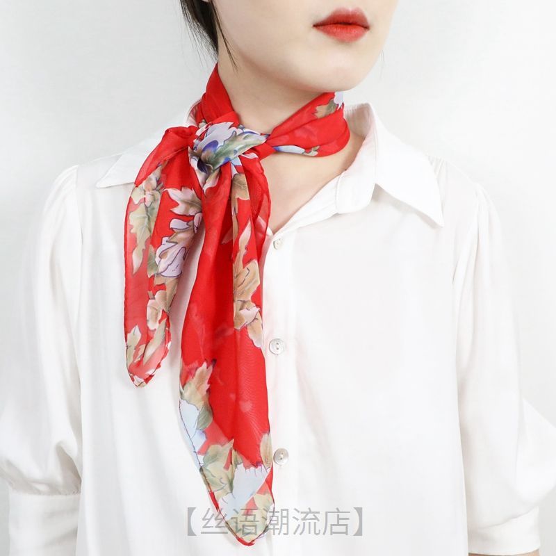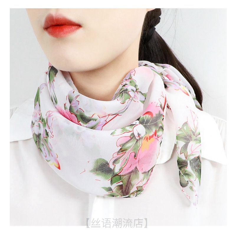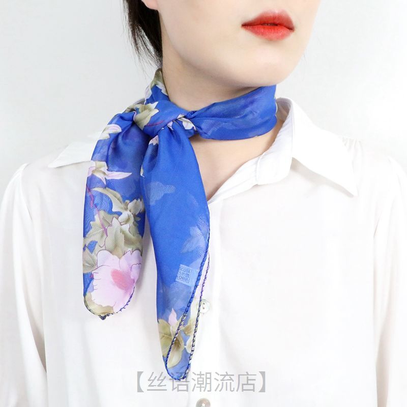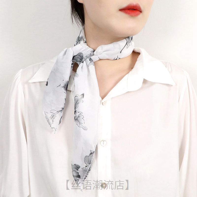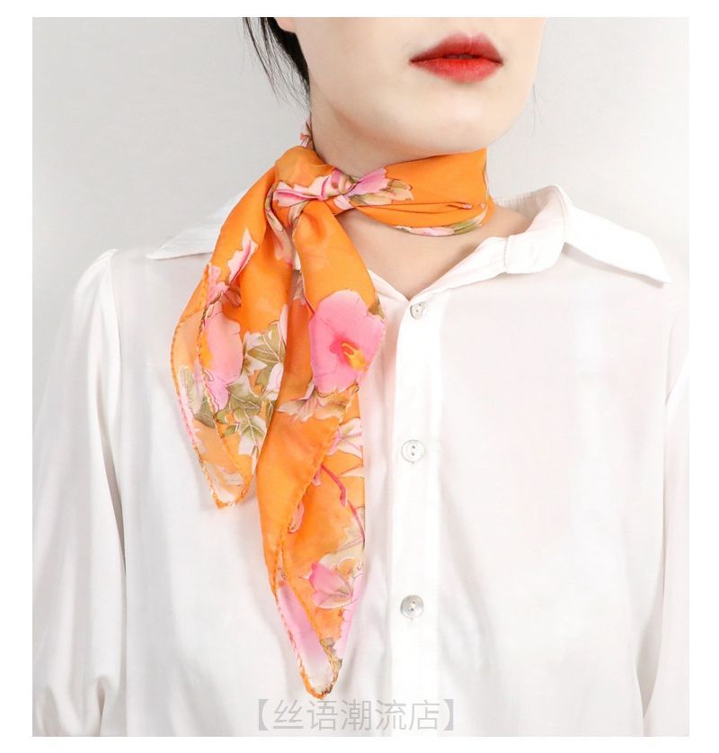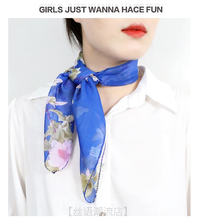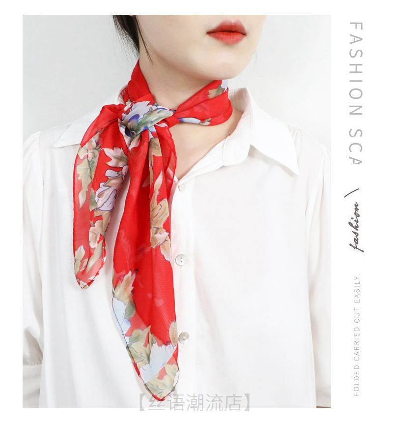 新款国画印花雪纺小方巾春秋冬丝巾女复古百搭小领巾护颈防晒围巾