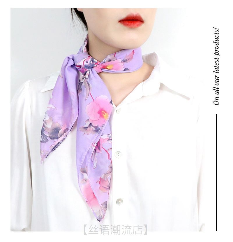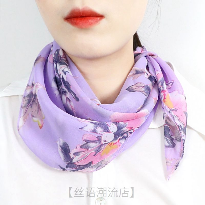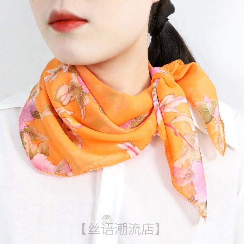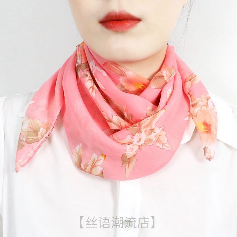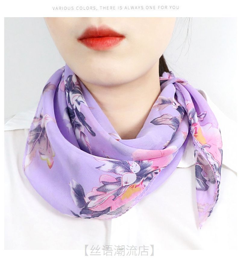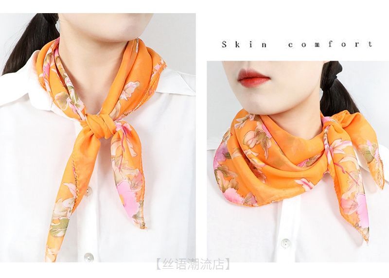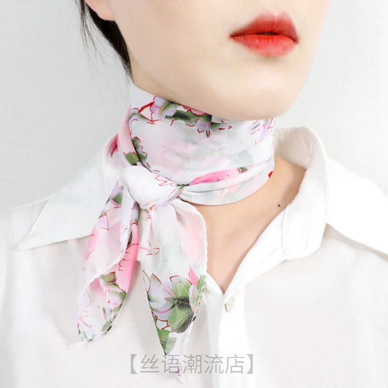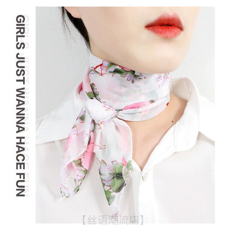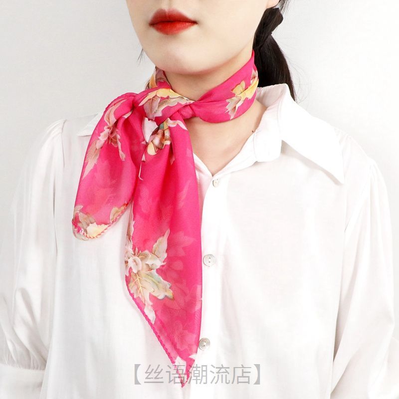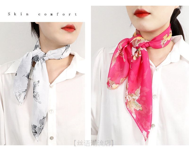 新款国画印花雪纺小方巾春秋冬丝巾女复古百搭小领巾护颈防晒围巾