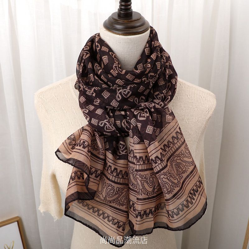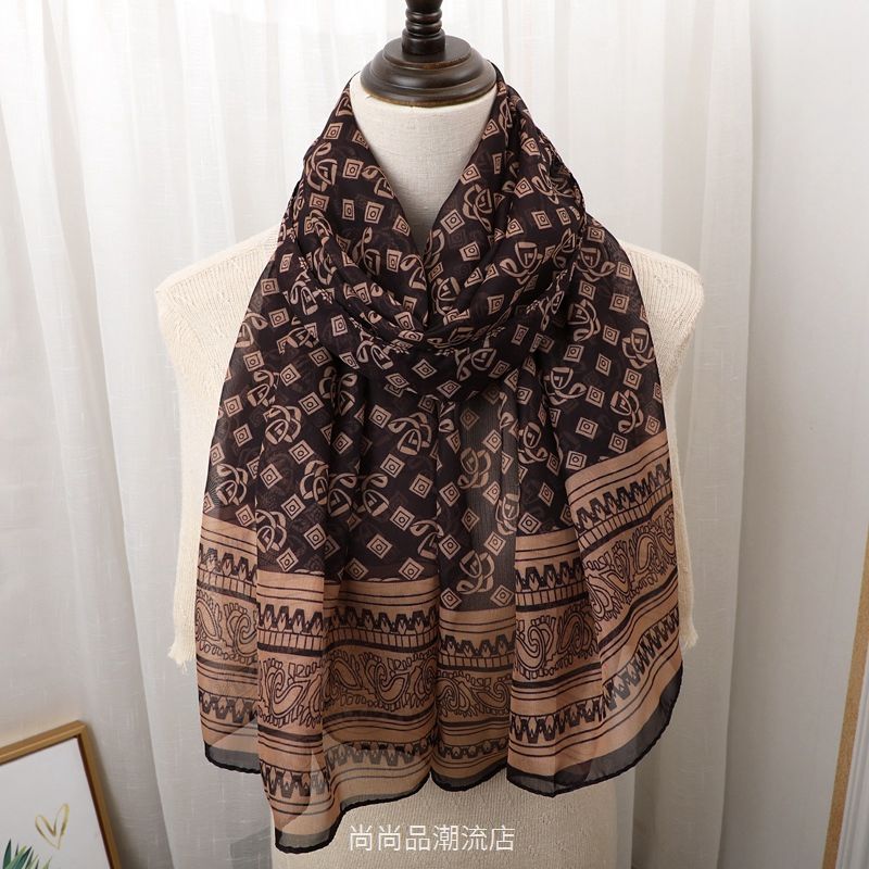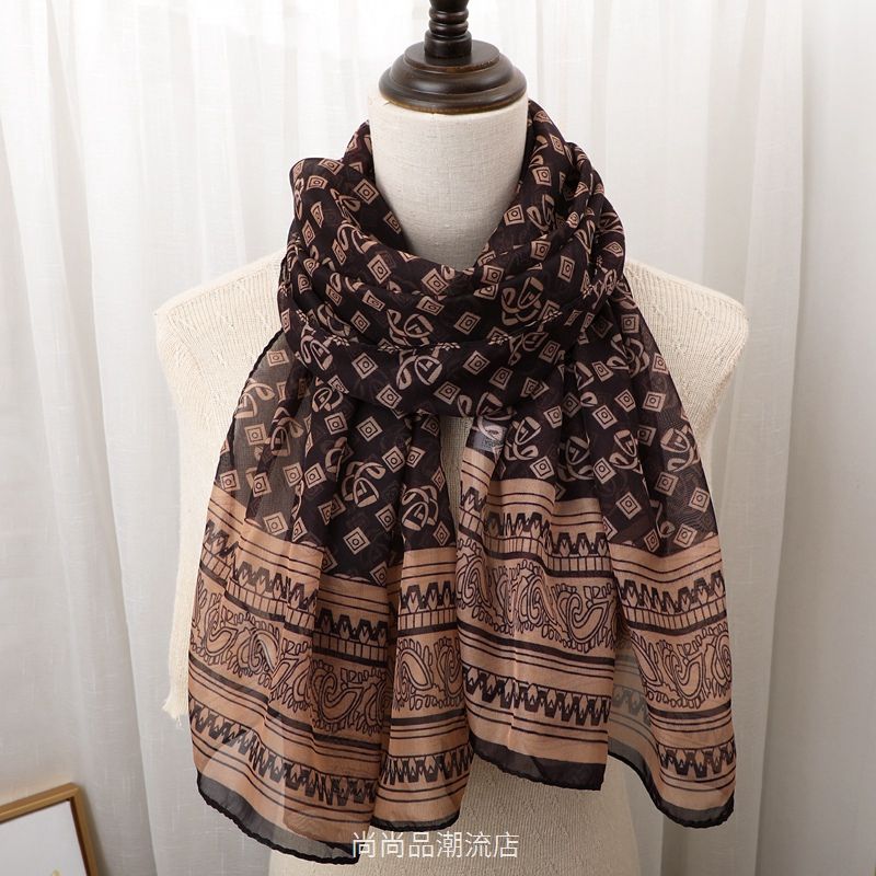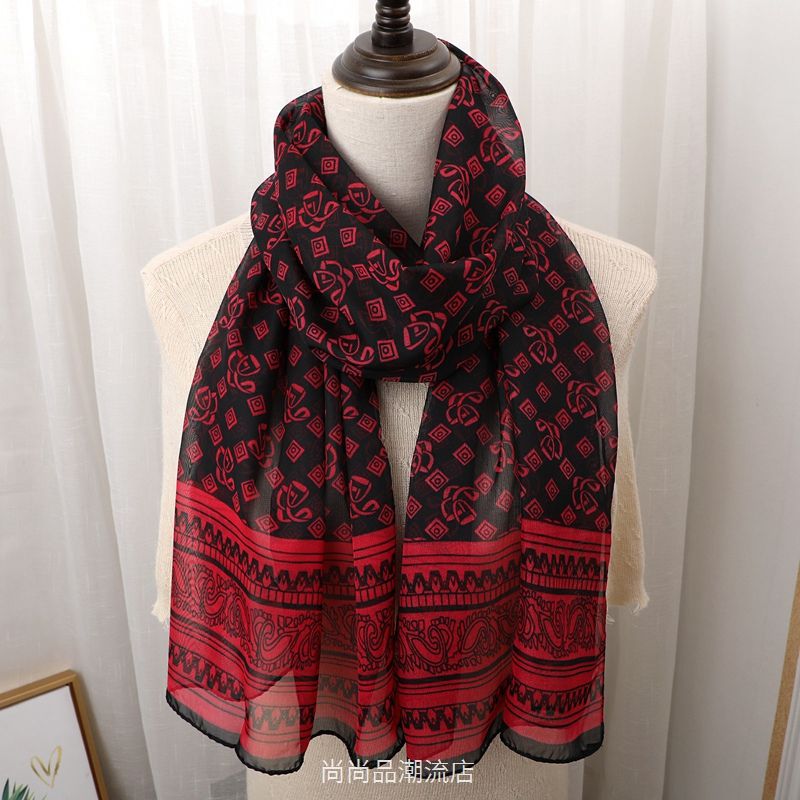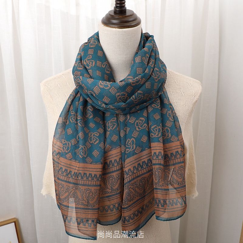 洋气爆款雪纺纱巾时尚老花印花丝巾长方形围巾柔软护颈装饰薄沙巾