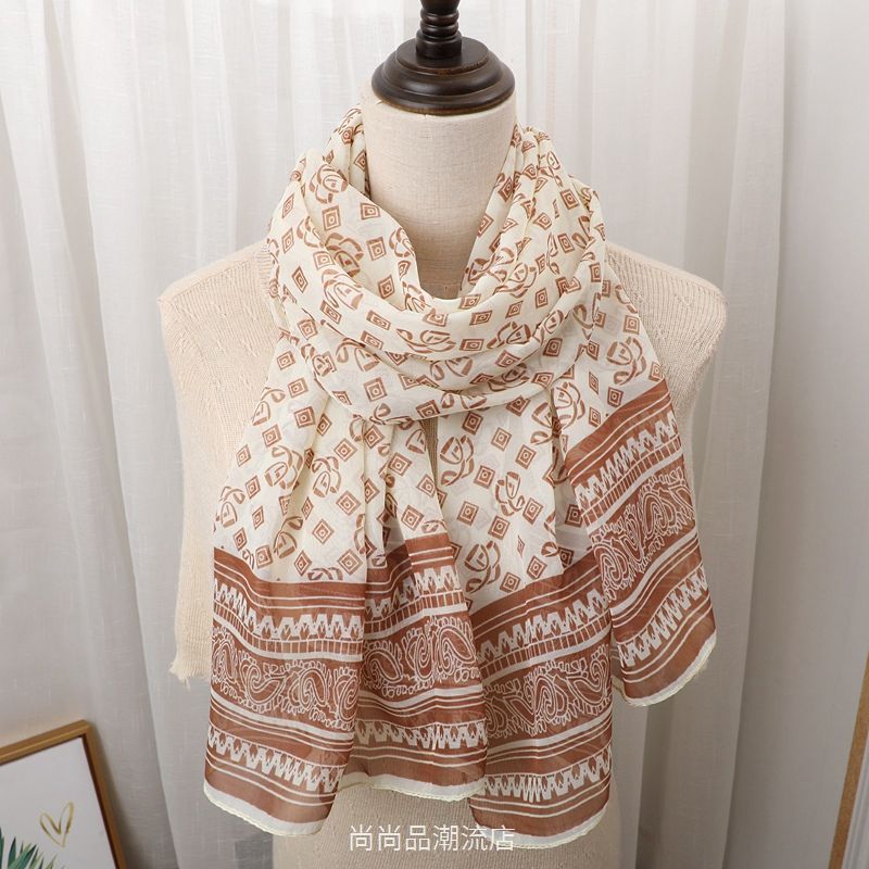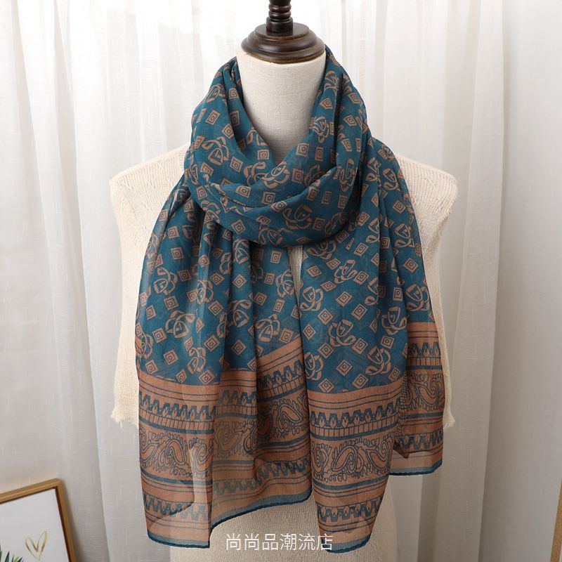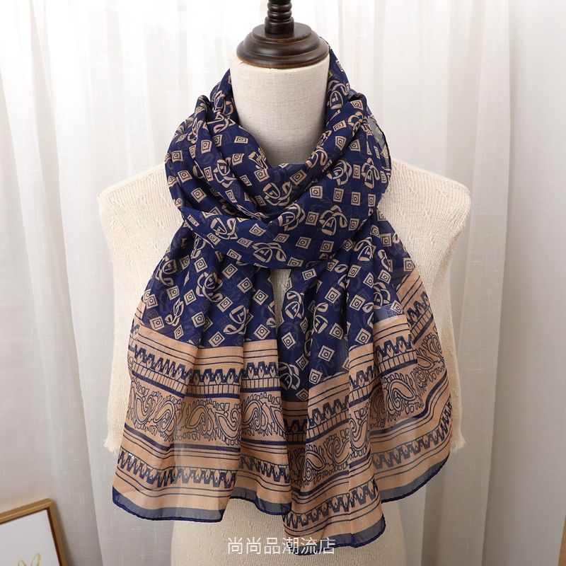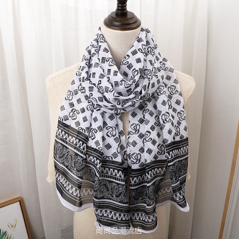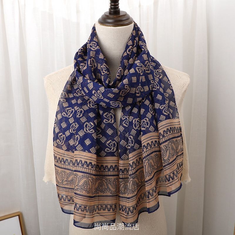 洋气爆款雪纺纱巾时尚老花印花丝巾长方形围巾柔软护颈装饰薄沙巾