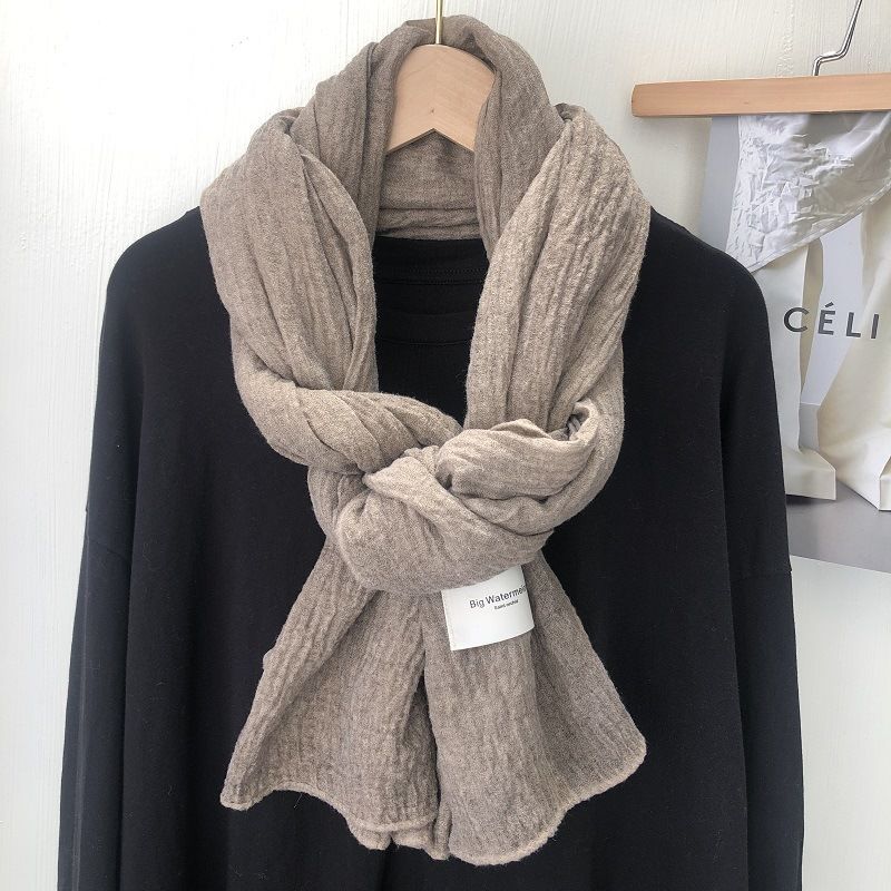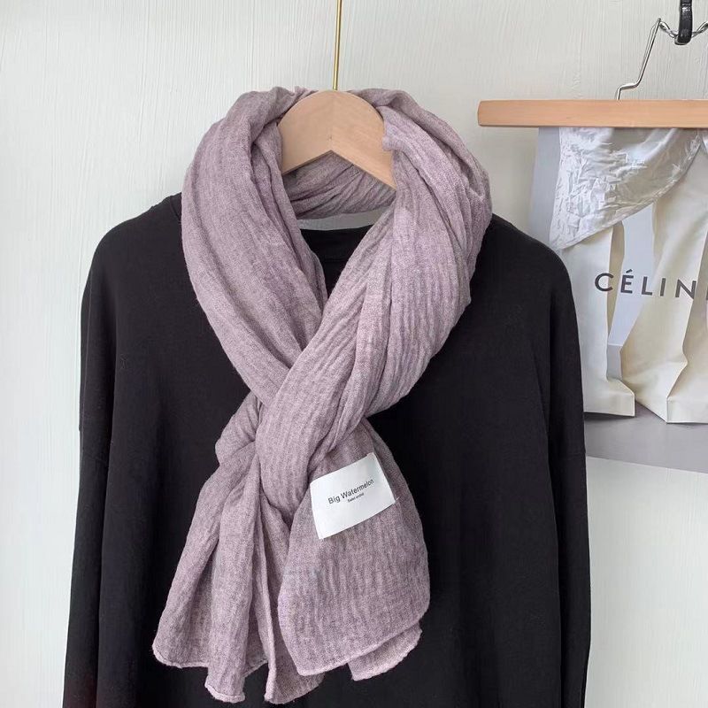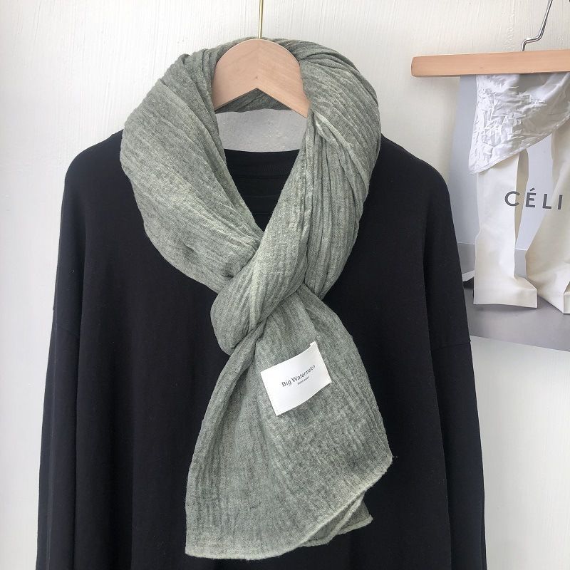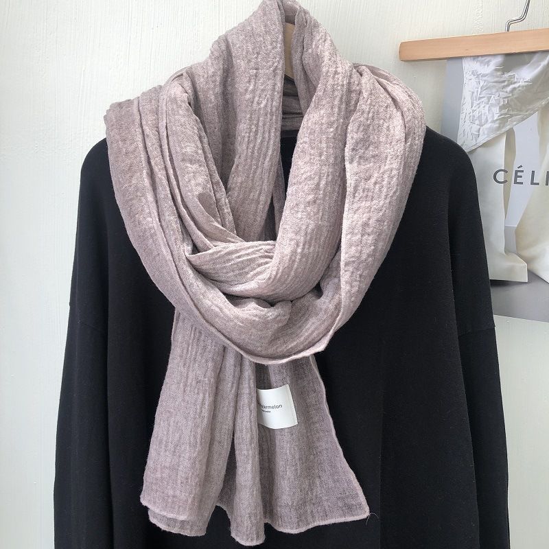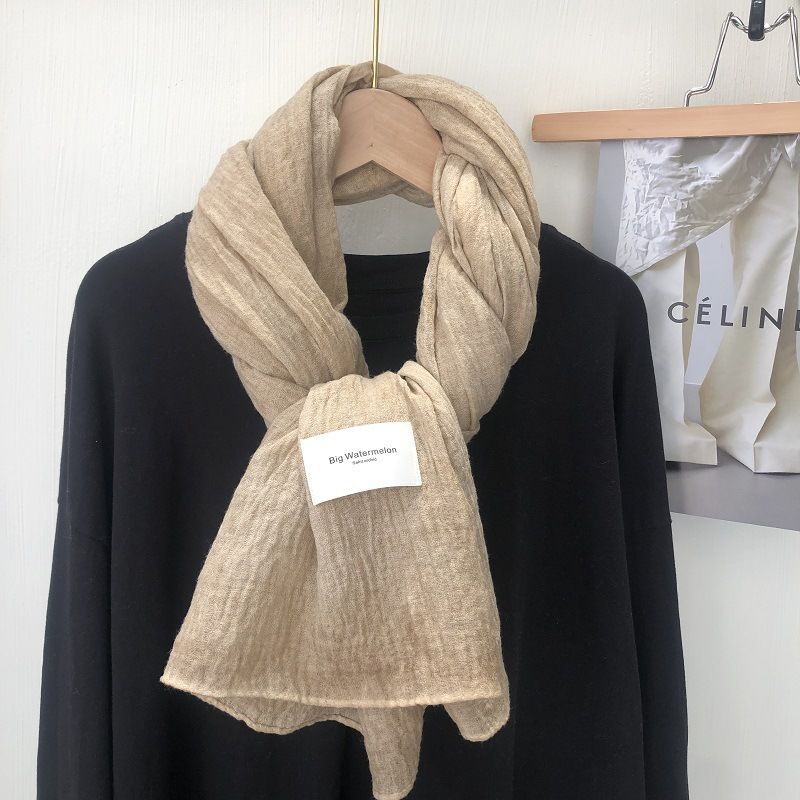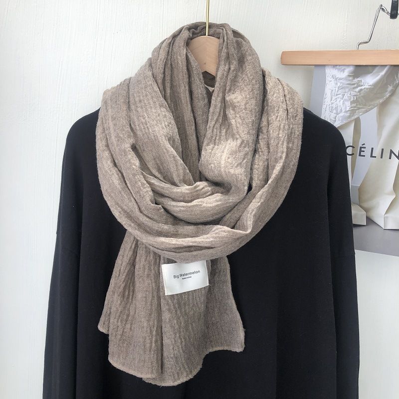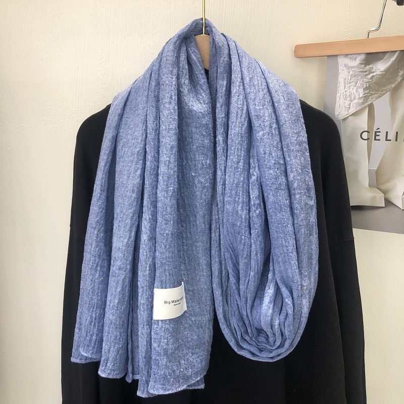 诗迪品牌日系韩版复古潮色棉麻大尺寸长巾披肩冬季百搭纯色围巾