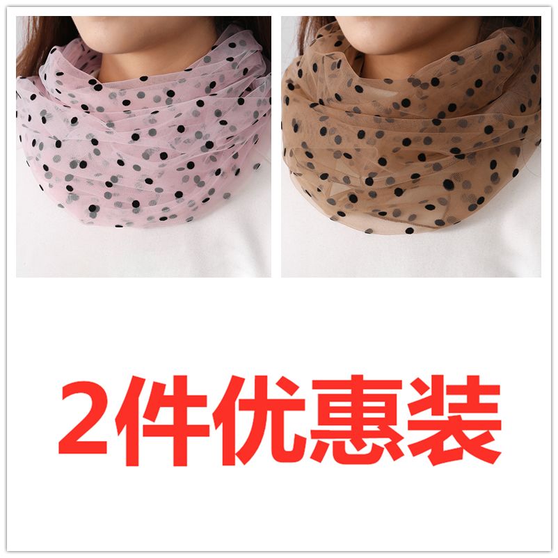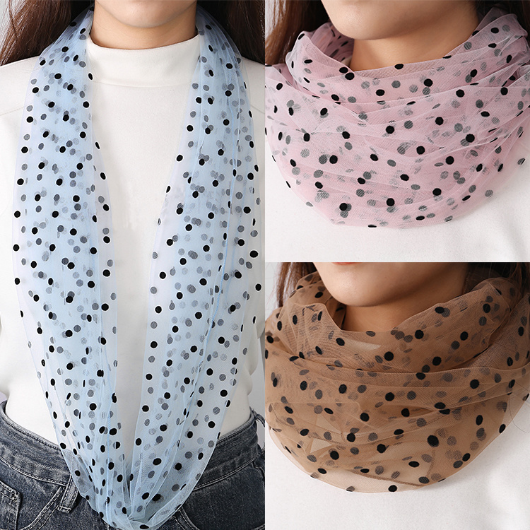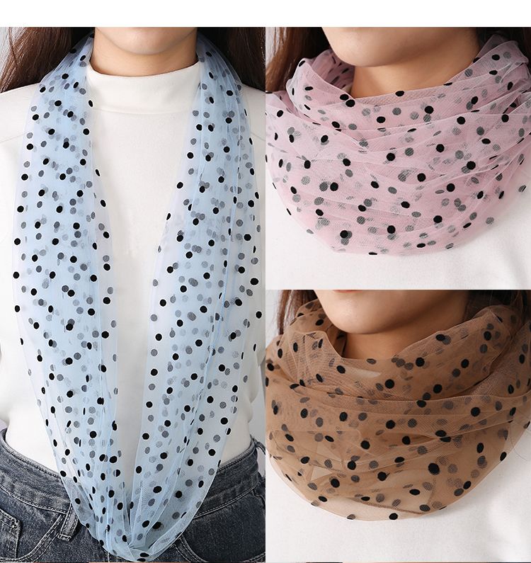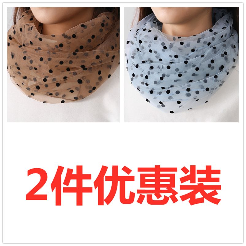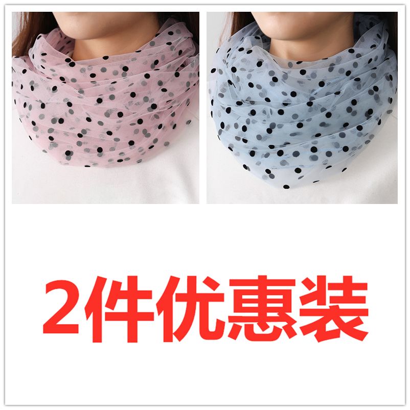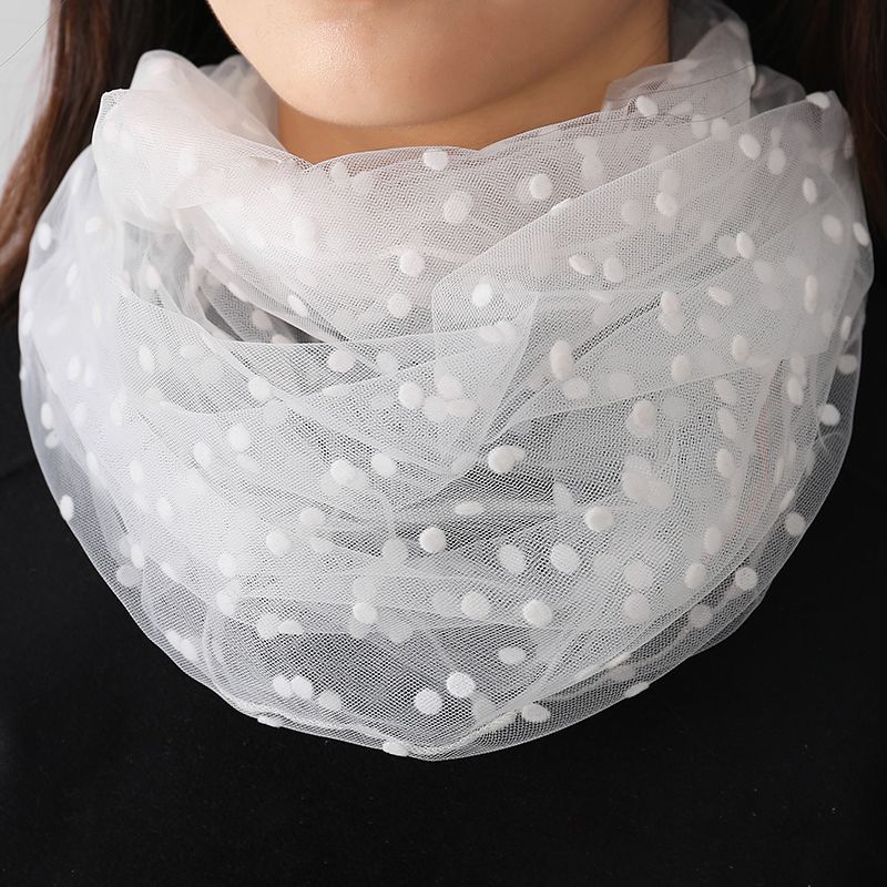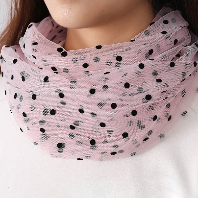 波点丝巾女蕾丝网纱长款围巾两圈套头围脖护颈小圆点百搭时尚脖套